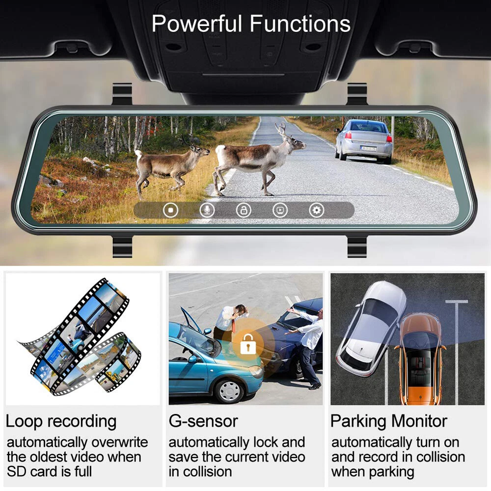 10" HD 1080P Dual Lens Car DVR Dash Cam Video Camera Recorder Rearview Mirror US 100% brand new and high-quality made. This dual lens dash camera is to be mounted to the rear-view mirror of your car for easy operation, it works just like a regular rear-view mirror, and has a HD 1080P camera recording everything in the road ahead. Flexible front lens with 170 degree wide angle allows you to adjust the camera angle easily in real-time, and 10" inch IPS touch screen can be turned off while driving to avoid distraction while its recording. 170 degree Ultra High-definition wide angle lens, flexible front lens can adjust to any direction, backup camera can shooting the car’s rear without blind spots. 10.0" HD IPS touch screen for easy operation, it is super convenient and efficient when it comes to recording and operating. The front lens is Full HD 1080P resolution and the back lens is 640 x 480 resolution. Support reversing video camera, simply connect the red line of the rear view camera to the anode of reversing lights Support 24 hours Parking monitoring, connect car battery with parking monitoring cable (is not included), Even though the car was turn off, the machine can still record video to achieve 24-hour surveillance. Support G-sensor, impact sensitivity adjustment automatically lock fileSupport loop-cycle recording. Motion detection automatic recording. Support video date and time stamp. Specifications: Loop Recording: Off / 1 Min / 2 Min / 3 Min / 5 Min Exposure: +-2,+-1,0 Motion Detection: Off / On Record Audio: Off / On Date Stamp: On / Off G-sensor: High / Medium / Low / Off Park Mode: High / Medium / Low / Off Night Vision: On / Off Auto Power Off: Off / 1 Min / 3 Min Screen Saver: Off/ 3 Min / 5 Min / 10 Min Beep Sound: On / Off Frequency: 50HZ / 60HZ Volume: Low / Medium / High Burst Shooting: On / Off Package Includes: 1x Car DVR (not include SD card) 1x Car Charger 1x Rearview camera 1x Rearview camera line 2x Screws 1x User Manual Model CAM10 Lens Double Cameras / 180 Degree Rotation Video Format AVI (H.264) Custom Bundle No View Angle 170 Degree Wide Angle Application Dash DVR Modified Item No Motion Detection & Loop Recording Support Resolution 1920*720 (2CH Record) 1280*720(1CH Record) Type DVR (Digital Video Recorder) MPN Does Not Apply Brand Unbranded Features Time Lapse, Real-Time Recording, Motion Activated/Detection, Microphone, Dual Lens, Audio Recording, Night Vision Memory Card Micro Card(up to 32GB, Only support class 10 Card Screen 10'' HD IPS Touch Screen