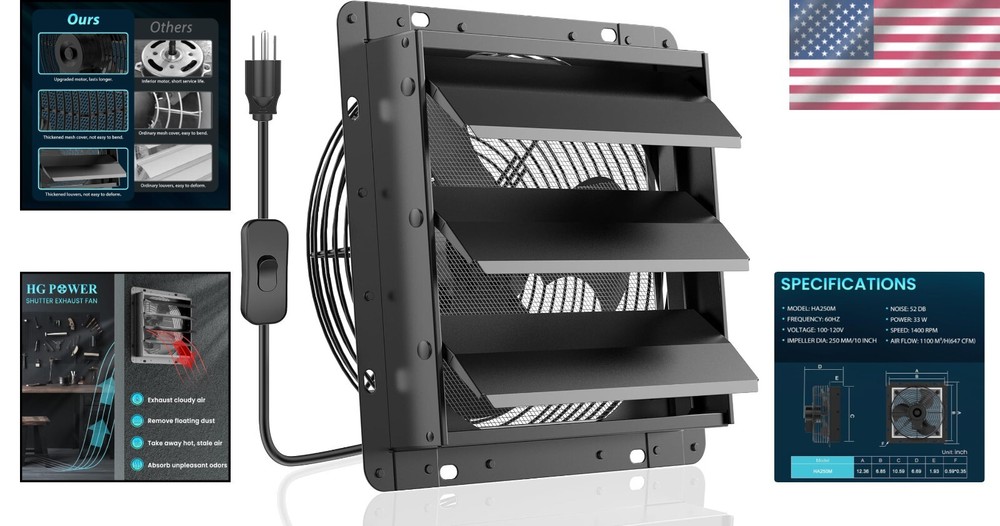 This fan is a game-changer for shed ventilation! The upgraded motor runs super quiet while pushing an impressive 647CFM, keeping the space fresh without the annoying hum. The thicker construction feels sturdy, and the low power draw is a nice bonus. Installation was straightforward, and after a few weeks, it’s still performing flawlessly—no overheating, just steady airflow. Perfect for anyone needing reliable, low-noise ventilation. Highly recommend!