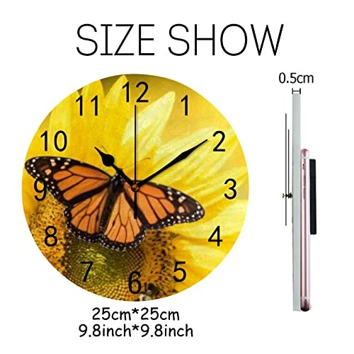 Menu 1. We require immediate payment. 2. We currently accept payment via eBay managed payments only. 3. Once payment is cleared, we will dispatch your shipment within 1-3 business days. Please refer to the "Shipping" tab for more information regarding shipping speed to your destination. Monarch Butterfly on Bright Yellow Sunflowers 10 Inch Round Wall Clock Battery Operated Silent Non Ticking Easy to Read Wall Decor for Living Room Bedroom Kitchen Office Product description [SILENT WALL CLOCK]- Quiet wall clock, no"TICK TOCK",no loud ticking,no noise,this silent wall clock won't bother you when you reading,working,thinking, conversing or sleeping. [ENVIRONMENTAL MATERIAL]- Made of environmental-friendly pvc material, covered by superior oil painting, durable and vivid color, clear to read, no glass cover and no frame for the clock,with practical and beautiful combination. [BATTERY OPERATE]- Complicated with 1pc AA battery (not included),a good battery can be used for more than one year, energy saved; Easy to stand on the desk and with hook to hanging on the wall. [PERFECT DECORATION]- Keep time with fashion and stylish retro style, ideal for living room,bedroom,kitchen,bathroom,classroom,guest room,office,dining room,cafe room,library or any wall of any color. [BEST GIFT]- A perfect choice for housewarming gifts,christmas/Xmas gift,children's day gift,bridal gift, anniversary gift, mothers day gift,fathers day gift, birthday present, holiday gift etc.Share this beautiful wall clock with the ones you love. PLEASE MESSAGE US IF YOU HAVE ANY OTHER QUESTIONS, AND MANY THANKS FOR READING ALL OF THIS. Copyright ©#. All Rights Reserved.
