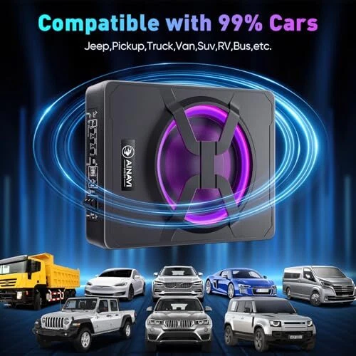 Return Policy Fast Delivery Trusted seller 10 Inch Under Seat Car Subwoofer Bass Active Stereo with Multi Colors Ambient Lighting,Built-in Amplifier 800 Watts Max, Remote Control and Enclosure Product Description CX-80 thin type 10" Active Car Subwoofer in sealed aluminum enclosure. Fashion multi-colors ambient lighting, controlled via smart phone app or remote controller. Built-in Amplifier. 800 Watts peak power output, 220 Watts RMS. With high speed MOSFET power supply, improved switching speeds, lower thermal impedance for higher switching frequencies. Amp Features: (1) Variable Low-Pass Filter, frequency 50Hz-250Hz; (2) Low-Level Inputs (RCA)- High Level Inputs, for options; (3) Variable Bass Boost & GAIN Input, adjust the low bass within the boost range to just the way you like it. Dimensions: 343mm*260mm* 82mm / 13.5”x10.2”x3.2" ; Unit Weight: 8 Lbs. The combination of amplifier and subwoofer all into one, make it is easy to be installed under the passenger’s seat. Complete Wiring Kit & high to low level inputs adapter in the package, make the installation more easy. For the safety, we strongly encourage professional installation of this active car subwoofer. We provide a one-year product warranty and professional technical support. Please do not hesitate to contact us via email, we will reply ASAP! Shipping Returns Payment Shipping Shipping is FREE to all addresses other than APO/PO boxes in the lower 48 states. All our stock ships from US-based warehouses. Shipped via USPS or UPS (depending on location and package weight) Unless stated otherwise, all orders will ship within 24-72 hours of your payment being processed. Check our feedback to see the great reviews of FAST shipping we offer. Returns Seller does not accept returns Payment We currently accept payment via eBay managed payments only. Once payment is cleared, we will dispatch your shipment within 1-3 business days. Please refer to the "Shipping" tab for more information regarding shipping speed to your destination.