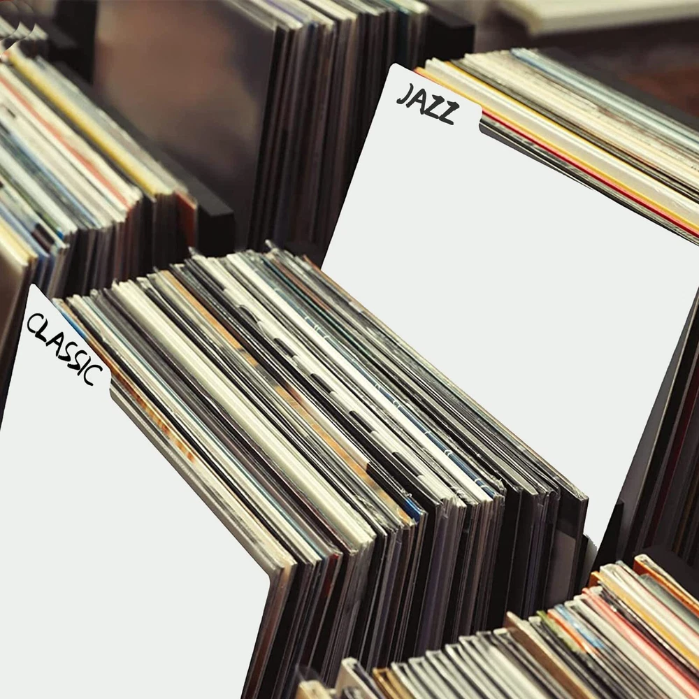 Tab your LP collection by music genres and artist names Suitable for personal use and commercial use, for home and shops. Handy tool for serious LP collectors. Package: 30 pieces of vinyl record dividers with 1 PCS of alphabet label. Size:10.2x11.2 (10.2 + 1 inch tab) inches, letters of an alphabet is 1 inch tall. Write-on index tab 10" Vinyl Record Dividers: you will get 30 pieces of record dividers with 1 PCS of alphabet label. size 10.2 x 11.2 inches. Vinyl Alphabet Sticker: Come with alphabet decals, letters of an alphabet is 1 inch tall. A 30 pack would be far more useful than a 25 If you want to organize the LPs alphabetically. If you want to organize them by genres, you can simply write the genre name or use a label maker to DIY the label. One Inch Tall Tab: The record divider have a 1 inch tall tab which is taller than other products. You can write bigger letters on the tab. Easier to find and organize the numerous vinyl records. In addition, it is easy to find 1 inch alphabet sticker on sell. Thick Cardboard: Extra thick 400gsm cardboard. Nicely rounded corners. Easy to Write On: Simple paper white, cardboard material, easy to write on compare to the plastic ones. Proper Size: our record dividers measures 10.2x11.2 (10.2 + 1 inch tab) inches, suitable for records in the size of 10 inches. Good for single LP and double gatefold.