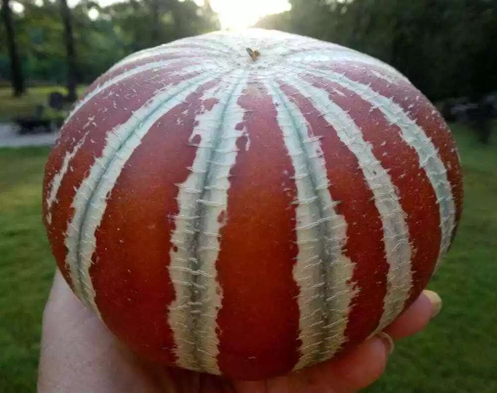 Prepare the seed by soaking in water overnight or longer. Seeds may be clipped on the edges next to the point. These two steps hasten the germination time. Gourds are slow to germinate, taking anywhere from one to six weeks. 2 to 3 pounds Kajari is a small heirloom melon grown in the Punjab region of India. The fruit weigh 2 to 3 pounds and are delightfully fragrant. They taste like a ripe honeydew, and they look like beach balls! A sure hit at farmer's markets.