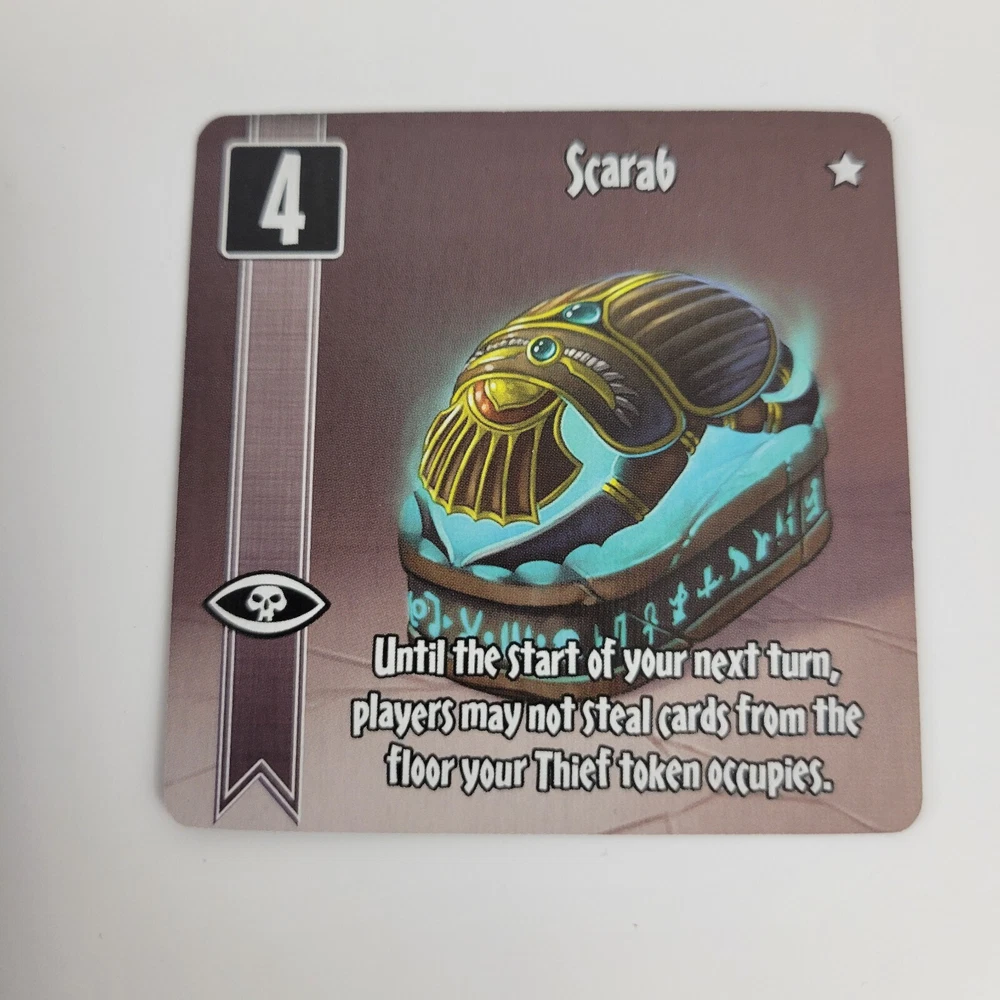 This is a very gently played complete game and includes an additional promo card of a Scarab. The game pieces are all in excellent condition. The game seems to have been played maybe once or twice.