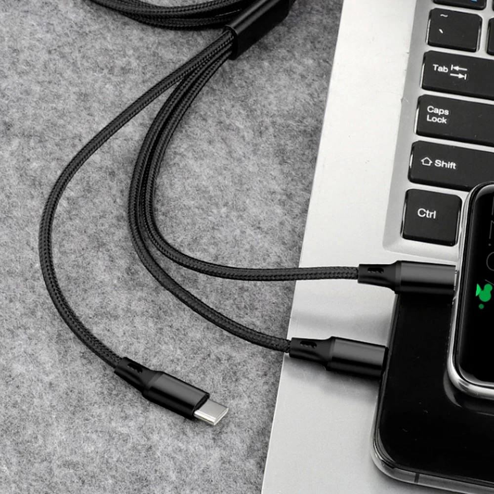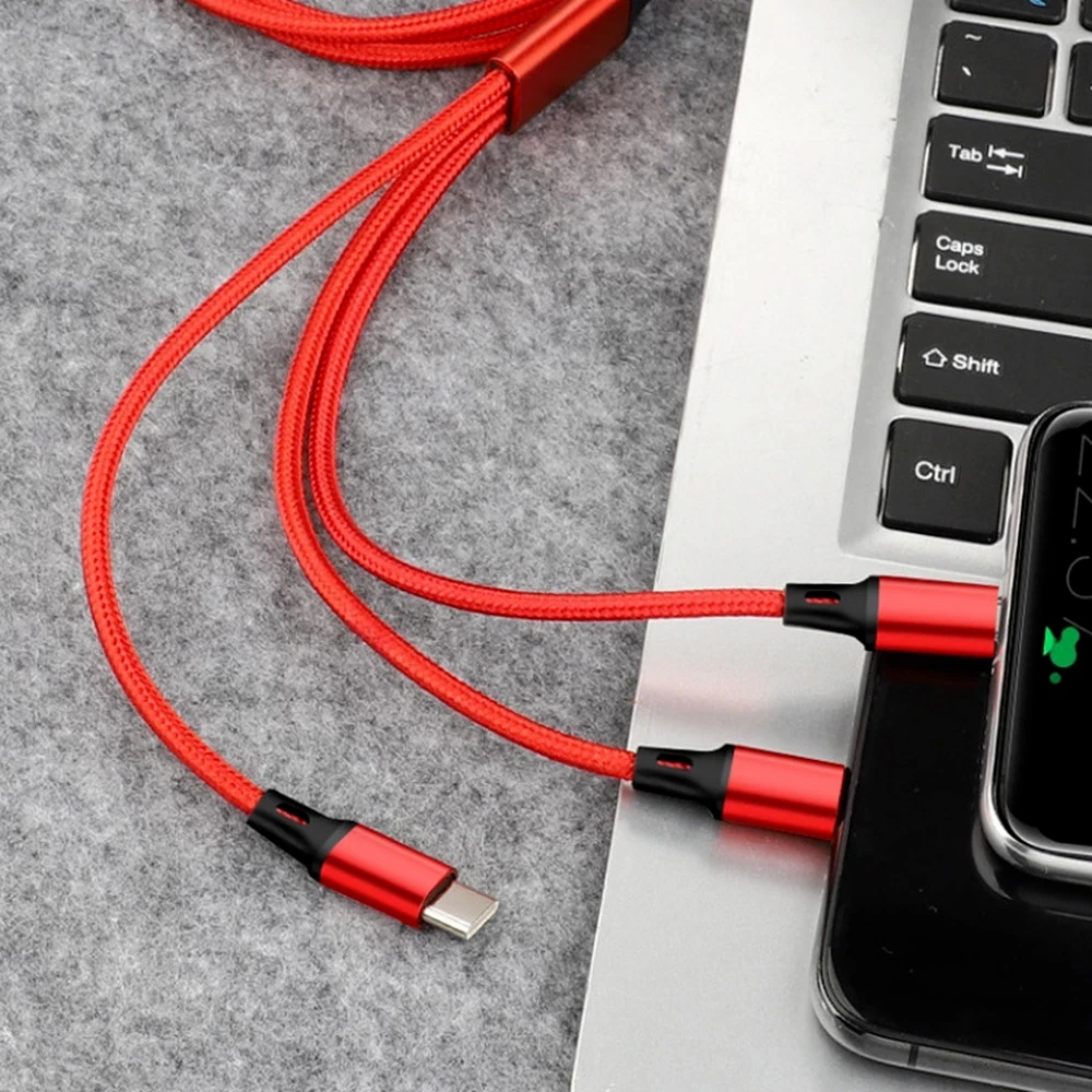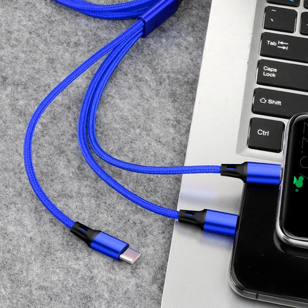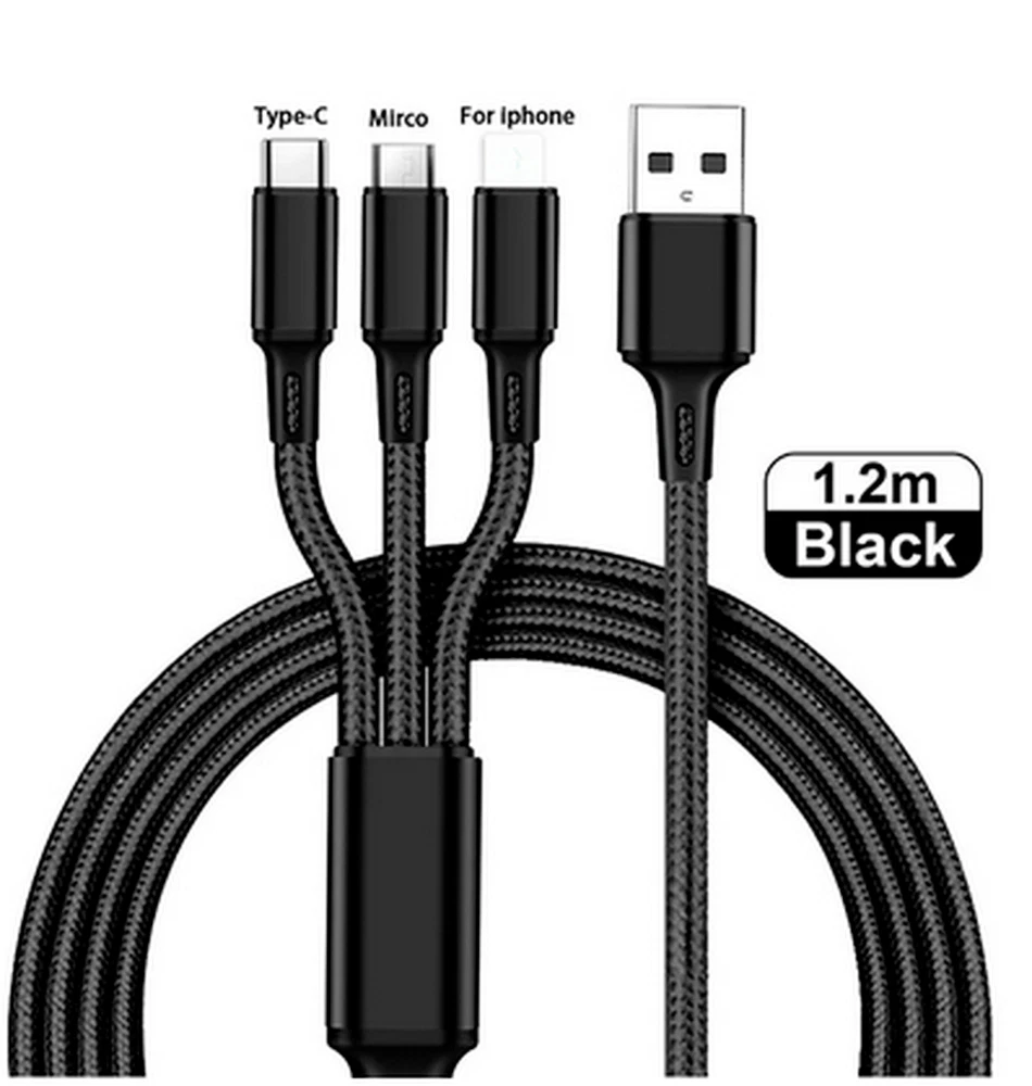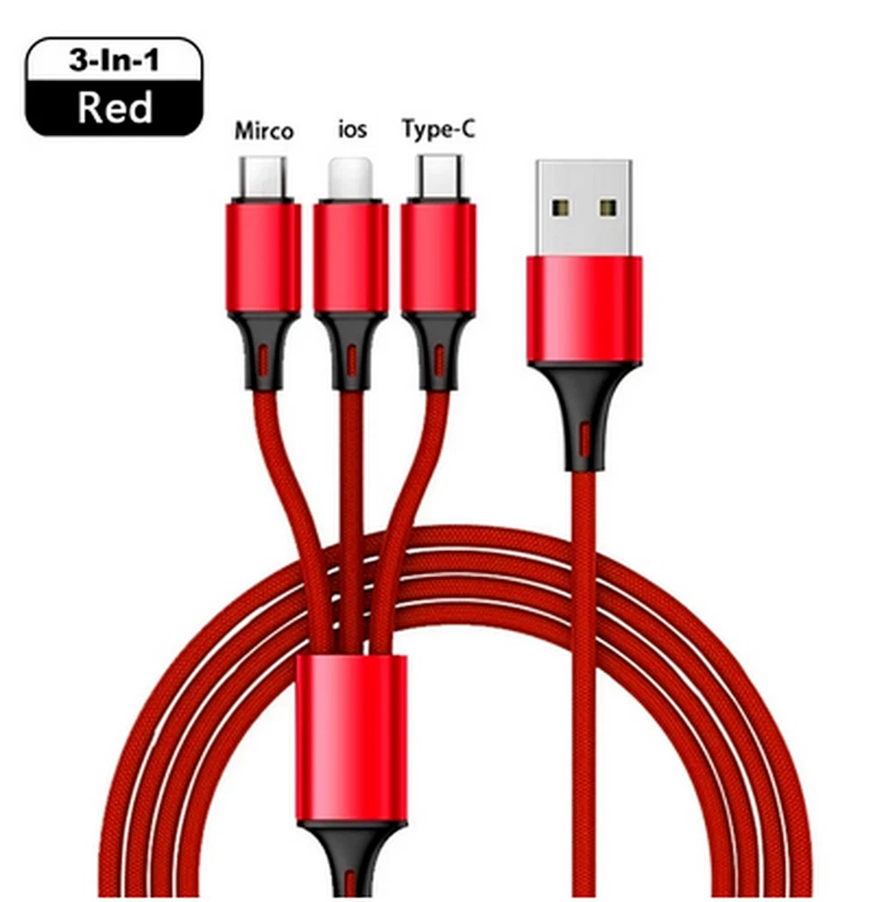 Features: 1. 3 in 1 Charger Cable: 3 charging tips in 1 cable make the phone charger simple and fast. 2. Portable and Convenient: You can carry this multi-charger cable anywhere, perfect for home, car, office, travel, dock, or sharing with friends. 3. Universal Compatibility: Compatible withiPhoneAndroid Type C 4. Perfect Length: 1.2m charging cable enables you to charge your phone at ease. It's perfect for you to charge your phone when laying on the sofa, bed, or sitting in the backseat of the car, and so on! 5. Braid Protection: The high-quality braid housing makes the cable more durable and resistant to heat and corrosion. Ensure a longer service life. Specification: Product Name: Multifunctional charging cable Length: about 1.2m/47.24in Applicable Models: general Number of Branch Connectors: one for three Product Interface: USB, Micro USB, TYPE-C, Color: Black, Red,Blue, Silver Package Included: 10x 3 in1 Cable