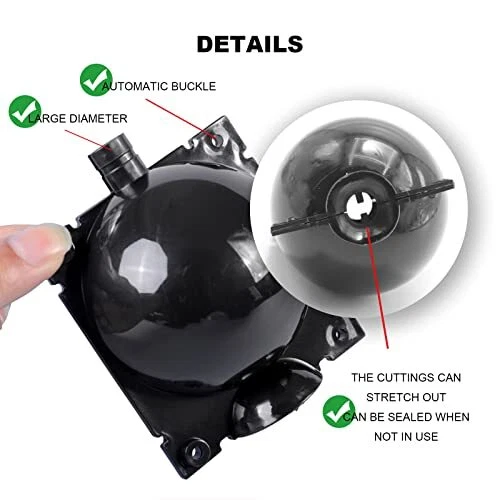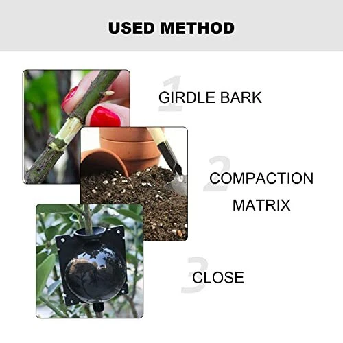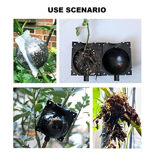 Package contains: 10 pcs Color: Black + Transparent Size: Medium: The ball diameter is 3.15in (8cm), applies to branches 7-12mm thick Product Weight: 240G Tree root growth box: specially designed with cutting globe, it can help your cuttings get stronger roots, and thus reproduce more mature trees faster than normal propagation methods. Special design: Our ball is translucent. You can identify the root formation, moisture and dryness of the soil without disassembling it to prevent premature interference with the air layer. Simple to use: select a healthy branch and cut off a circle of bark. Fill the plant rooting device with moist soil, and then fix the rooting box at the place where the bark peels off. Reusable: The plant breeding ball is made of solid plastic and can be reused. It is designed with an automatic lock, which can be installed by one person when used together with a tie. Air layering technology: applying air layering technology, this rooting box can promote faster initial rooting and create branches at twice the growth rate. It also helps to absorb more nutrients while maintaining the position of branches - greatly improving the survival rate of trees!