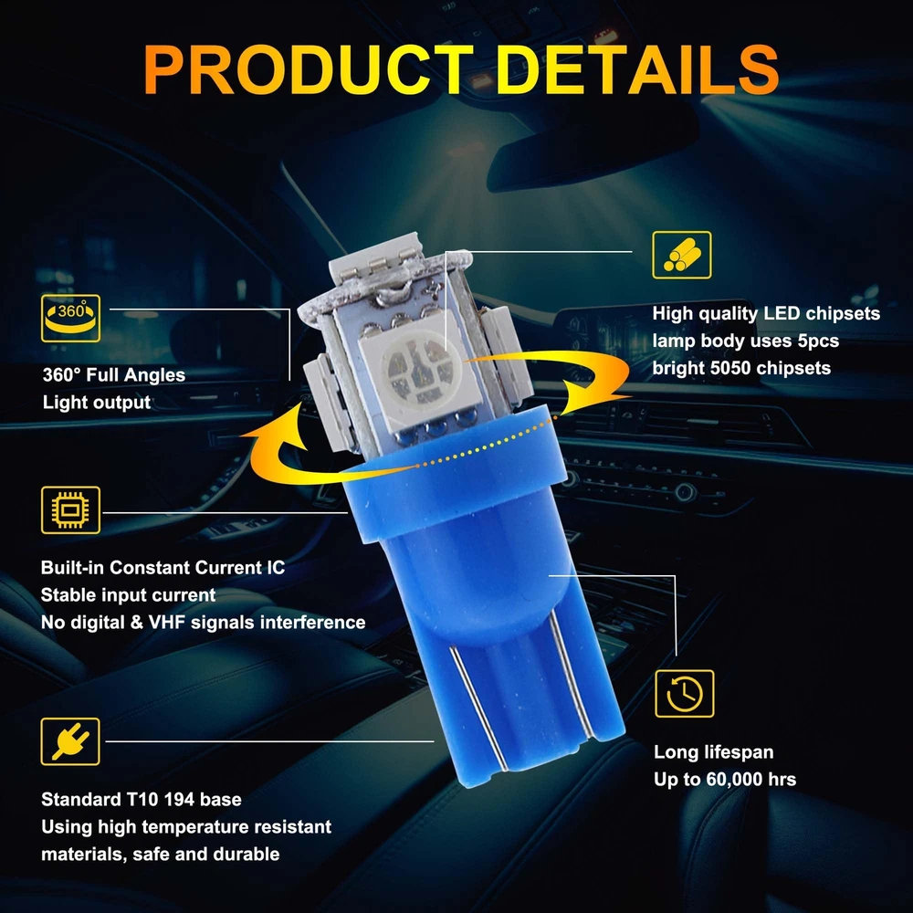 10 PCS T10 LED Light Bulb Kit, 5050 SMD Super Bright Car Interior Replacement