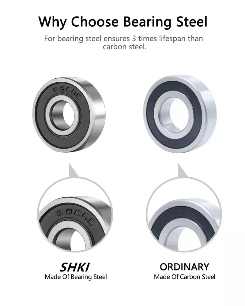 Store New Arrivals Add to Favorite View Feedback Contact [10 Pack] 608 2RS Ball Bearings – Bearing Steel and Double Rubber Sealed Miniature Deep Groove Ball Bearings for Skateboards, Inline Skates, Scooters (8Mm X 22Mm X 7Mm) Description Item model number 608-2RS Ball Bearing Style 608 Material Rubber,Steel Country of Origin China Bearing Type Ball Bearing Bearing Number 608 2RS Specification Met Energy Package Dimensions 2.56 x 2.52 x 0.75 inches; 4.66 ounces Size 608 608-2RS ball bearings are a type of deep groove ball bearing that has two rubber seals to protect the bearing. These bearings are commonly used in skateboard wheels, inline skates, and other small machinery. 1. Smooth operation: 608-2RS ball bearings are designed to provide a smooth and efficient operation, which is essential for high-speed applications. 2. Low friction: The low friction coefficient of these bearings allows them to spin with minimal resistance, reducing energy loss and extending their lifespan. 3. High durability: The rubber seals protect the bearing, increasing their durability and longevity. 4. Versatility: These bearings are widely used in a variety of small machinery applications, including skateboard wheels, inline skates, and electric motors. 5. Easy to install: 608-2RS bearings are relatively easy to install and replace, making them a convenient and cost-effective solution for many applications. Overall, the features and advantages of 608-2RS ball bearings make them an excellent choice for small machinery applications that require smooth, efficient operation and high durability. SHKIBY Ball Bearings : If these small ball bearings don’t live up to your expectations, please let us know. You take NO RISK when you purchase with us. But we’re betting you’ll fall in love with these 608 bearings , and a team of wild horses couldn’t get them out of your hands and make you send them back. You’ll probably order MORE! ABOUT US We offer the best prices around on high quality products. Our E-store includes media such as books, movies, music and games while offering electronics, toys, sporting apparel, clothing, tools, general home, garden items and more. SHIPPING We are always working hard to ensure your package arrives as soon as possible. Please understand that some factors like weather, high postal traffic, and the performance of shipping companies are outside of our control. We offer free shipping to the lower 48 states and ship within 2 business days of payment, usually sooner. We do not accept P.O. Boxes. Please provide a physical address. For shipping outside of the continental USA, we only use eBay's Global Shipping Program.The item is shipped to KY and then sent to the rest of the world. International customers are responsible for all duties and taxes. Continue to check out in order to calculate costs for shipping the item to your country. Messages regarding eBay's Global Shipping Program MUST be directed at eBay EXCLUSIVELY. RETURNS We offer a 30-Day Return Policy on items which you are not completely satisfied with. You have the option for a full-refund or an exchange of the item. No returns are available on items shipped outside of the USA. PAYMENT We accept PayPal. CONTACT US This page content is yet to come Please ad us to your favorite seller and visit again later Thank You CUSTOMER SATISFACTION We try our very best to make sure every customer is completely satisfied. If there's a problem, message us! We're happy to help. WE ACCEPT Copyright © 2021 AutoDS. | All Rights Reserved
