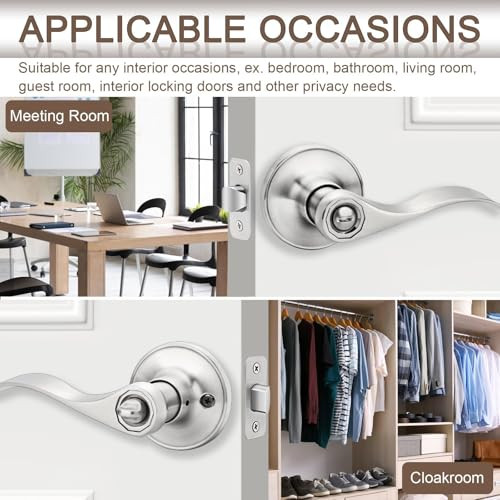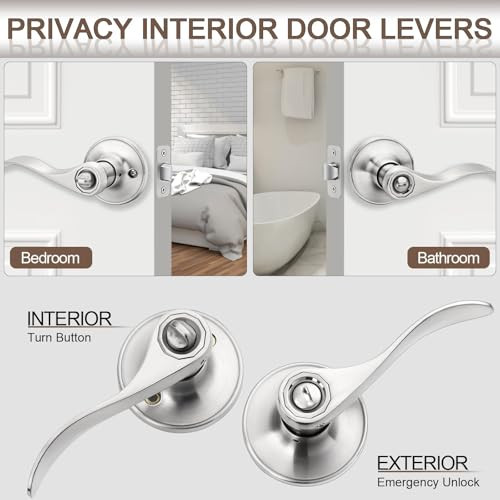 Menu 1. We require immediate payment. 2. We currently accept payment via eBay managed payments only. 3. Once payment is cleared, we will dispatch your shipment within 1-3 business days. Please refer to the "Shipping" tab for more information regarding shipping speed to your destination. 10 Pack Brushed Nickel Door Handles Privacy Door Levers, Heavy Duty Bed and Bath Door Locks Interior Door Knobs, Reversible Keyless Wave Lever Door Handles Product description MODERN DESIGN: Simplistic line design looks bright and tasteful, giving you the sense of maturity,Suitable for a variety of decoration styles. Satin Nickel finish is gentle and decent. It also gives you a smooth touch while enhancing the beauty of your room PREMIUM QUALITY: Heavy-duty door handle is made of premium quality zinc alloy and brass to rust-free in a high humidity environment. The door lever has a thick and smooth black color powder coating for long-lasting product life PRIVACY FUNCTION: The privacy door levers can be locked by twisting the button inside and opened outside in case of emergency with a flat-tipped tool such as a screwdriver or coin, ideal for use with bedrooms, bathrooms or offices, etc EASY INSTALLATION: All door handles are reversible and can be installed left-handed or right-handed. Privacy door handles come with all accessories and included installation instructions to help you complete the simple installation of the door handle lock in less time. Each of door handle is packaged separately to avoid scratches caused by collisions during transit ADJUSTABLE LATCH: Door knob have adjustable universal latch - 2-3/8"(60mm) or 2-3/4"(70mm). Fits door thicknesses of 1.38"(35mm) to 1.78"(45mm). Dimensions: Lever Length: 4-7/10"(120mm), Rosette Diameter: 2-3/5"(65mm) PLEASE MESSAGE US IF YOU HAVE ANY OTHER QUESTIONS, AND MANY THANKS FOR READING ALL OF THIS. Copyright ©#. All Rights Reserved.