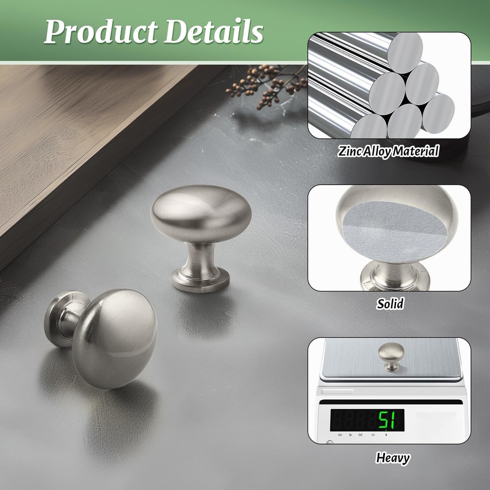 10 Pack Kitchen Cupboard Round Knob(individually polybagged with 1" mounting screws) Brushed Satin Nickel Kitchen Cabinet Round Pulls are 1-1/" Diameter with Projection 1-1/5". Compateble with all drawers&cabinets, make an attractive addition to your kitchen, bathroom&home Round Knob Style Drawer Pulls look clean and understated, will give your kitchen or bathroom a modern and simple feel! Customer's satisfaction is always our primary task. Any Problem we will try our best to help.