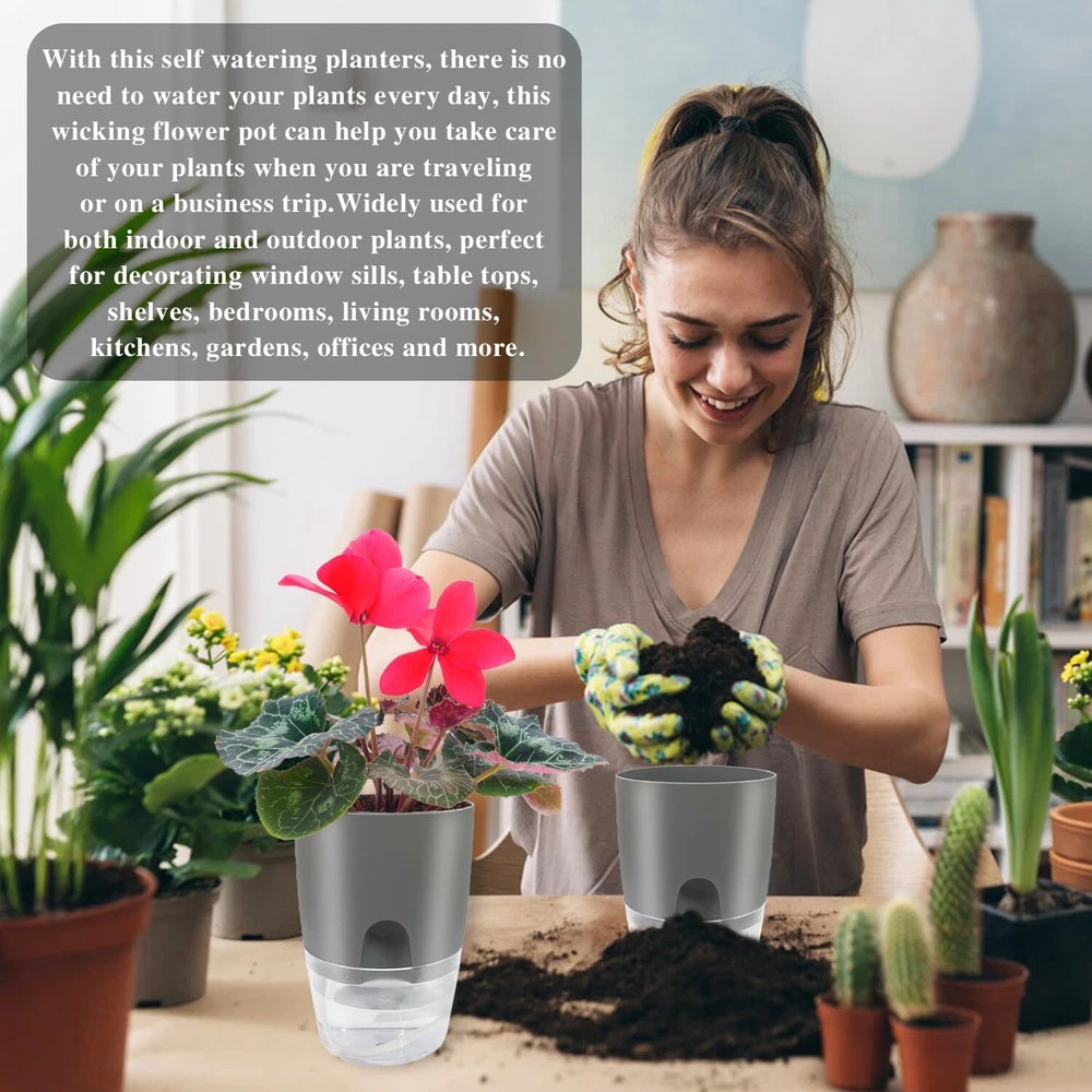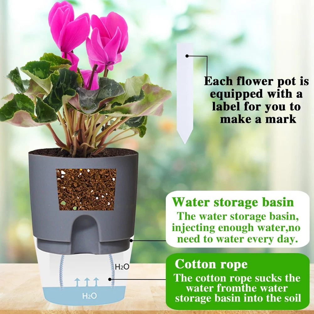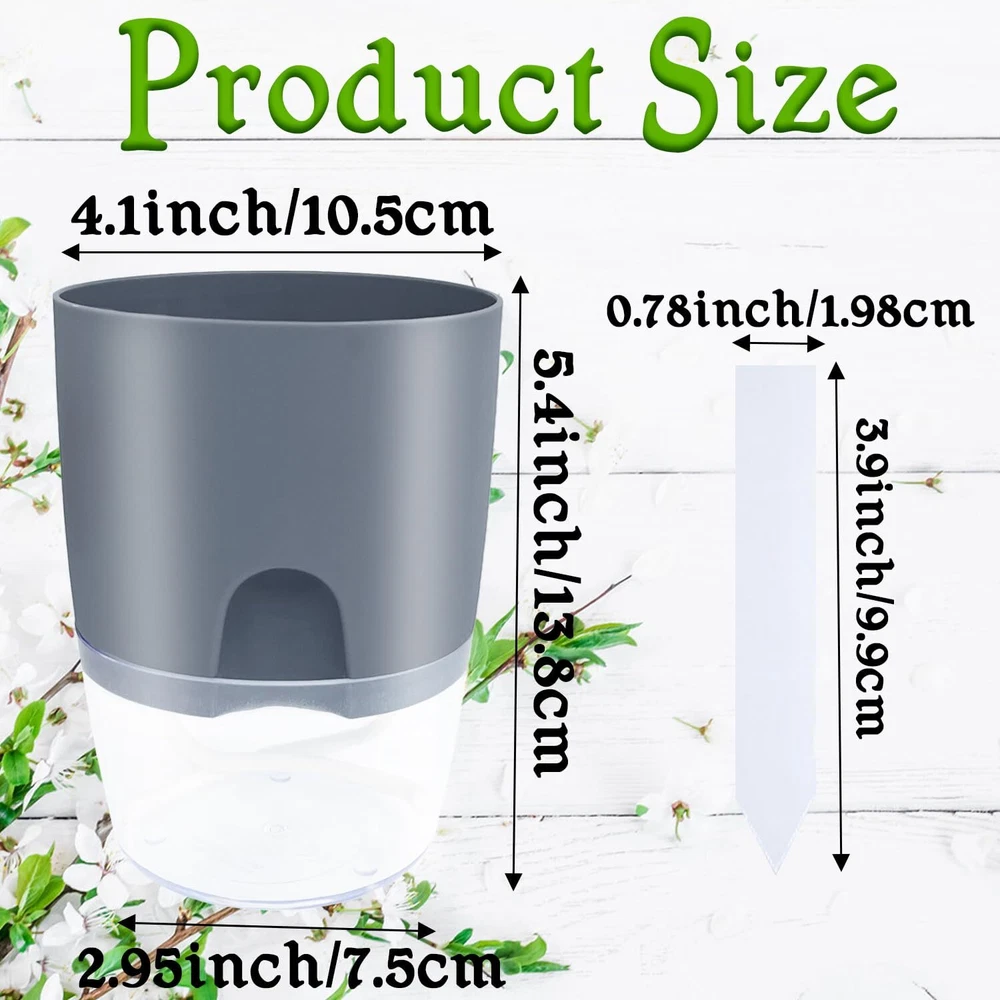 【Self-Watering Planter】Our package includes 10pcs clear self-watering planters and 10pcs white labels,meet your daily use needs,perfect for growing a variety of small plants,such as succulents and orchids. 【Size】The opening of the self watering planter is 4.1 inches/10.5 cm in diameter,the diameter of the bottom is 2.95 inches/7.5 cm,and the height is 5.4 inches/13.8 cm. 【Transparent Water Storage】Each wicking flower pot has a transparent water storage section at the bottom,which makes it easy for you to observe the amount of water,refill the water in time,and leave breathing space for the roots of your plants to ensure their healthy growth.And there is a special water filling port,which is easy to fill water and not easy to harbor flying insects. 【High Quality Material】Our plastic african violet pot is made of high quality plastic, lightweight,sturdy and durable,with high transparency,suitable for indoor and outdoor use. 【Stylish Appearance】The clear plastic automatic-watering plant pot has a delicate and elegant appearance,which can add highlights to your home or garden,and can also be placed in the office or other spaces as a decoration,and it is also a perfect gift choice for garden lovers.