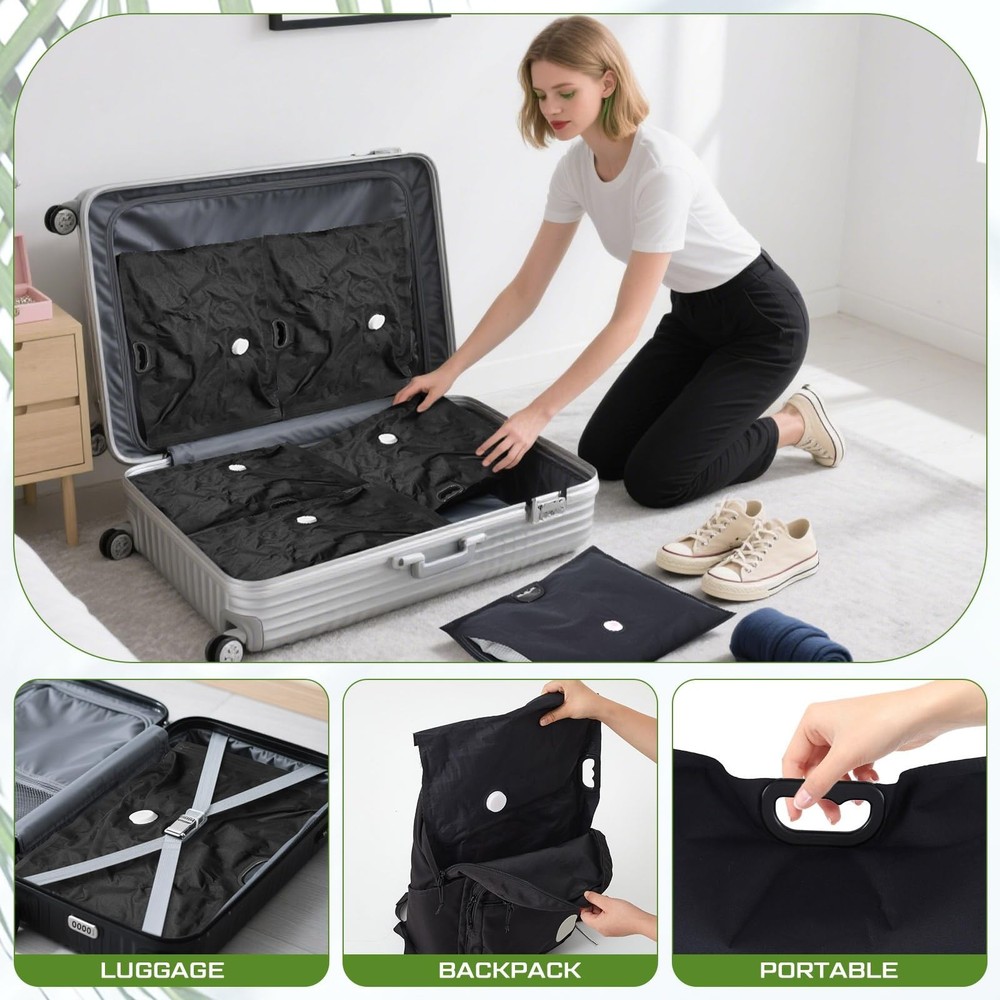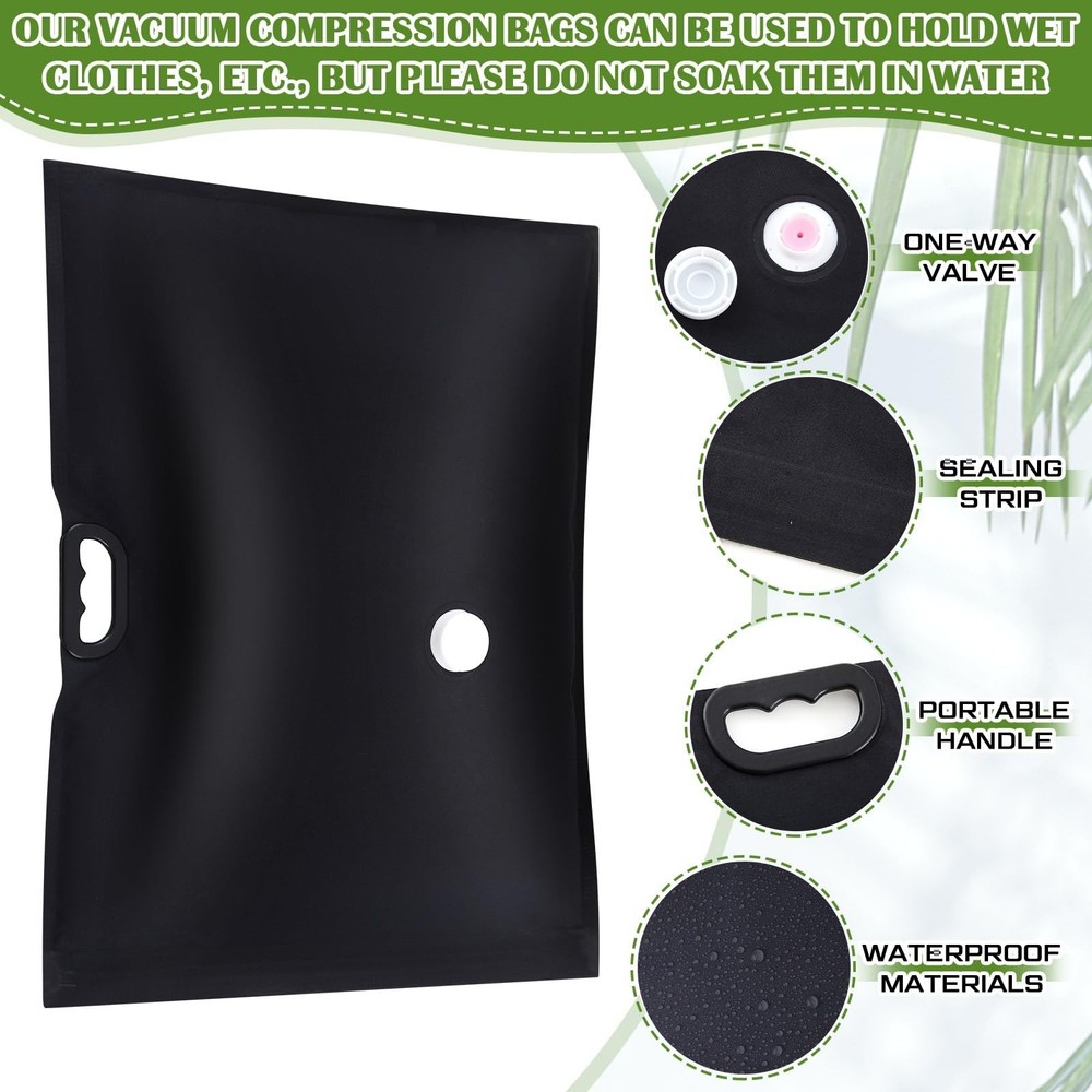 10 Pack Fabric Vacuum Bags for Travel with Wireless Pump Reusable Waterproof Vacuum Compression Bag with Handle for Carry on Luggage Suitcase Backpack Packing Cube Yoga Swim, Black Product Details Number of Items: 10 Brand: AceOrbit MPN: QMA-AceOrbit-1072 UPC: Does not apply EAN: Does not apply Brand: AceOrbit Material: Cotton Color: Black Product Dimensions: 19.69"L x 15.75"W x 10.63"H Special Feature: Waterproof, Vacuum Sealed Recommended Uses For Product: Camping, Clothing, Toys, Sports, Electronic Accessory, Travel Closure Type: Valve Number of Items: 10 Size: 3.5 liters Item Weight: 2.1 Pounds Brand: AceOrbit Material: Cotton Color: Black Product Dimensions: 19.69"L x 15.75"W x 10.63"H Special Feature: Waterproof, Vacuum Sealed Recommended Uses For Product: Camping, Clothing, Toys, Sports, Electronic Accessory, Travel Closure Type: Valve Number of Items: 10 Size: 3.5 liters Item Weight: 2.1 Pounds Manufacturer: AceOrbit Part Number: QMA-AceOrbit-1072 Item Weight: 2.09 pounds Item model number: QMA-AceOrbit-1072 Item Package Quantity: 11 Special Features: Waterproof, Vacuum Sealed Included Components: 10 x Vacuum Bags, 1 x Pump Batteries Required?: No Date First Available: July 2, 2025 Effortless Compression for Space Saving: experience unmatched space-saving with our vacuum bags for travel with pump; Thanks to the efficient valve design, these travel vacuum bags for luggage compress quickly, reducing the bulk of your soft items; Pack smarter and maximize luggage room on every trip Durable and Waterproof: our compression bags for travel are crafted from lightweight, durable oxford cloth materials; With a waterproof coating, these vacuum bags for travel against minor splashes, ensuring your clothes stay dry; Note: do not soak them in water for a long time Optimal Size for Packing: measuring up to 15.75 x 19.69 x 8 inches, these travel vacuum bags for luggage are good companions in any travel itinerary; Spacious yet lightweight, they comfortably fit in suitcases, accommodating all your travel attire with ease Convenient Vacuum Pump for Easy Use: the vacuum pump we provide requires you to equip it with AA batteries; It supports both vacuuming and inflating Multi-Scenario Suitability: adapt your packing with vacuum bags for travel with pump, versatile enough for various scenarios; Whether you're embarking on regular travel, business trips, travel, camping, water activities, backpacking and RV travel, these vacuum travel bags provide a solution for managing your space efficiently Features: Our package includes 10 quality vacuum bags for travel and 1 pump, ensuring your packing needs are completely addressed. Compact, efficient, and easy to use, our solution adds convenience and functionality to your travel routine. Whether you're embarking on regular travel, outdoor adventures, or water activities, these vacuum travel bags provide a solution for managing your space efficiently. Specifications: Material: oxford cloth Color: black Size: 15.75x19.69x8 inch Package includes: 10 x Vacuum Bags, 1 x Pump Notes: Manual measurement, please allow slight errors on size. The color may exist a slight difference due to different screen displays.