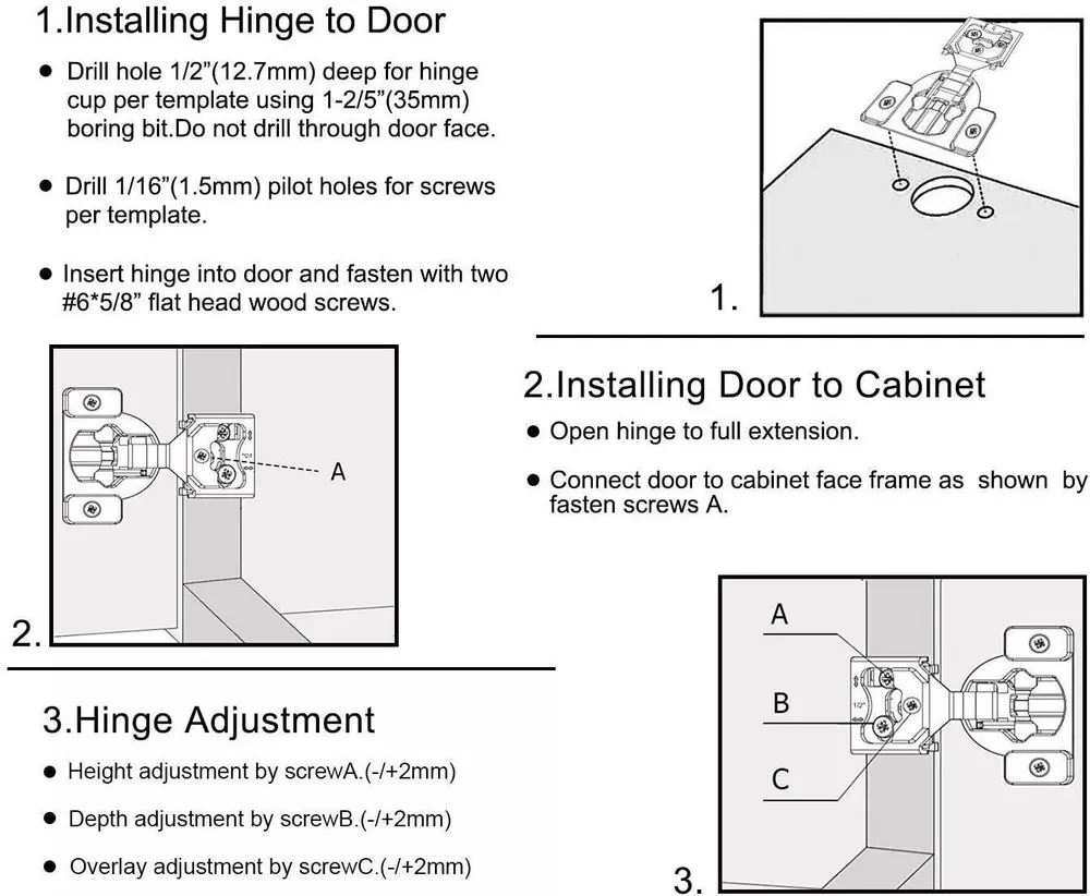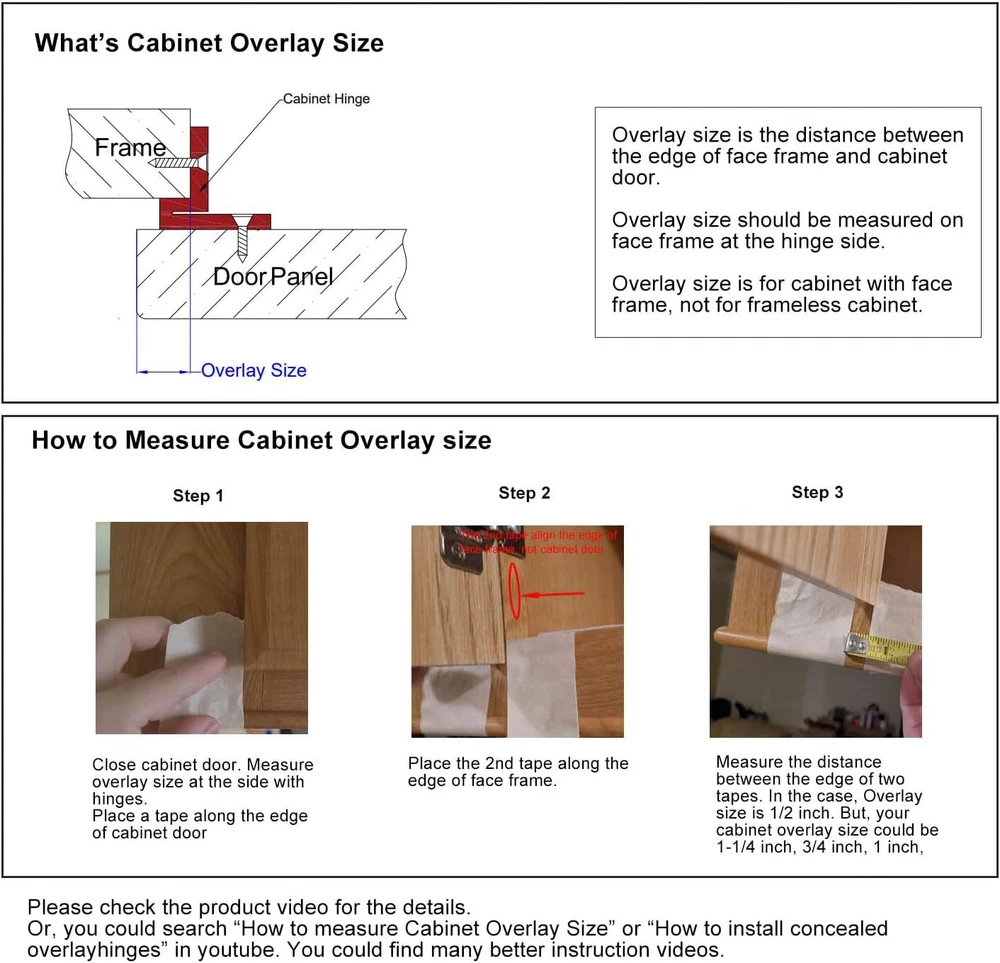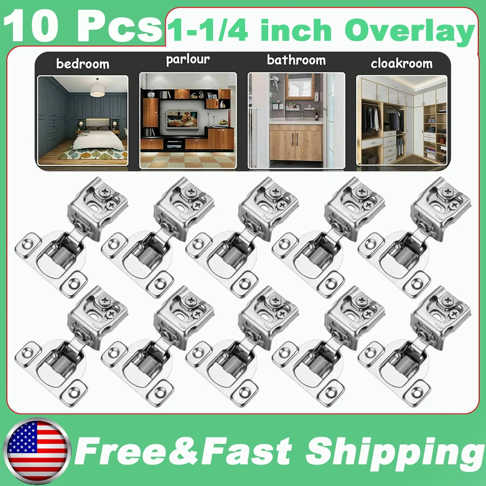 10 Pack Soft-Close Compact Concealed 1-1/4" Overlay 105° Cabinet Hinges Hardware Feature Face Frame Advantage: These soft close hinges for cabinets are specifically designed for face frame application to complement its robust construct and installation superiority. Quiet Soft Close for Kitchen Cabinet Door: Self and quiet close, no slamming anymore. 1-1/4" Overlay Size: Please check overlay size of your cabinet door before ordering. 3 Way Adjustment: Rotate three cam screws with a screwdriver, adjust cabinet door to the perfect position. Installation Specification: Opening angle is 105 degrees, suitable for most cabinet door styles. Each cabinet hinge comes with screws to ensure a perfect fit. Specification Material: Stainless Steel 1-1/4" Overlay Compact Cabinet Hinges Come with matching screws. Built-in damper, Self-Closing / Soft Closing Bore Diameter: 35mm 105°opening angle Finish: Satin Nickel Self Closing with Integrated Blumotion Soft Close Package 10 X Hinge Repair Plate(Others Not Included) Screws Payment Delivery details Terms of sales Feedback Contact us Payment We accept payment by PayPal only. Delivery details 1. BUSINESS DAY MONDAY- FRIDAY FAST SHIPPING FROM USA. 2. All orders and payments received before 4PM EST (1PM PST) will be shipped the same business day. 3. No shipping on Saturday,Sunday or USA Public Holidays 4. No responsibility for any custom duty Terms of sales 1. We offer a 60 day money back guarantee or exchange. 2. Buyer pays return shipping and we pay replacement shipping. 3. If you want to initiate a return,please contact us to get a returning address before sending the item back. Feedback 1. We strive to provide the best products and services. 2. Your positive feedback 5 stars DSR help us do better. 3. If anything about your transaction did not meet expectations, please CONTACT US and give us the opportunity to make things right. We are always here to help. Contact us Please do not hesitate to CONTACT US . You can message 24/7 on eBay for all questions and inquiries. We will get back to you within one business days at the latest from Monday- Friday.