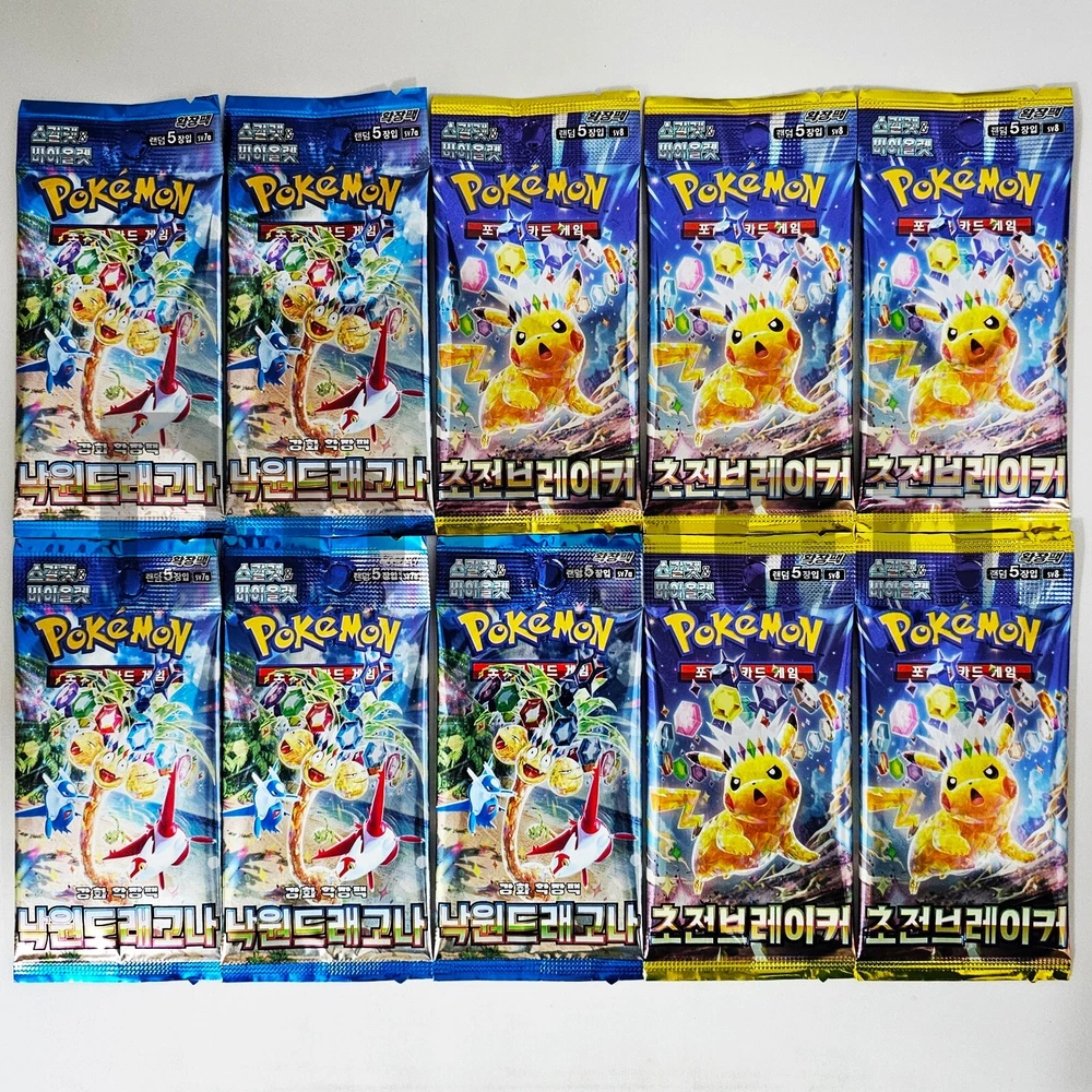 10 Packs Surging Sparks Booster Packs Pokemon Card TCG Factory Scarlet & Violet sv8 sv7a TCG Super Electric Breaker + Paradise Dragona Korean Ver (+2 Free Random Packs) Would you like to see Various Korean Pokémon Cards at once?, If So, Please Click This Text!!! If you want a Lucky Chance to Win Pokémon Cards through an Auction, Click this Text!!! Would you like to see more diverse Super Electric Breaker? If so, Please Click This Text!!! [ Doreen Store Opening 2st Anniversary] ( Limited Event ) + Random Giveaway of 2 Pokemon Card Packs (Service) < Sword & Shield > Eevee Heroes (Evolving Skies) s6a / Blue Sky Stream (Evolving Skies) s7R / Fusion Arts ( Fusion Strike) s8 / Star Birth (Brilliant Stars) s9 / Lost Abyss ( Lost Origin) s11 / Paradigm Trigger (Silver Tempest) s12 Vstar Universe ( Crown Zenith) s12a < Scarlet & Violet > Scarlet ex ( Scarlet & Violet) sv1S / Violet ex ( Scarlet & Violet) sv1V / Clay Burst (Paldea Evolved) sv2D / Snow Hazard (Paldea Evolved) sv2P / Pokemon 151 sv2a / Ruler of Black Flame (Obsidian Flames) sv3 / Raging Surf sv3a / Ancient Roar ( Paradox Rift) sv4K Future Flash ( Paradox Rift) sv4M / Shiny Treasure ex sv4a / Wild Force (Temporal Forces) sv5K / Cyber Judge (Temporal Forces) sv5M Crimson Haze ( Twilight Masquerade ) sv5a / Mask of Change ( Twilight Masquerade) sv6 Night Wanderer ( Shrouded Fable) sv6a / Stellar Miracle ( Stellar Crown) sv7 Etc... (Randomly provided type and quantity) EVENT Description Product Description 10 Packs Surging Sparks Booster Packs Pokemon Card Sealed Korean (+2 Free Packs) < Product Composition > Super Electric Breaker 5 Packs (25 Cards) + Paradise Dragona 5 Packs (25 Cards) + Free 2 Random Packs Please read the event-related picture well !!! All Pokemon cards are 100% Korean official Authentic Factory Sealed Model Name: Pokemon Card Game Manufacturer Name: Pokemon Korea Co., Ltd. Country of manufacture: Korea If you want to see different Pokemon cards at once, please click this text! Important Points Seller Comment Copyright © Doreen Track Page Views With Auctiva's Counter