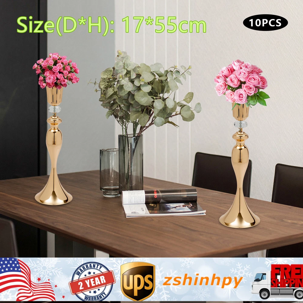 Specification Color: Gold Shape: Trumpet Material: Iron, Crystal Surface Treatment: Electroplating Assembly Required: Yes Mount Type: Free Standing Style: Modern Number of Items: 10 Net Weight: 11kg/24.25lbs Gross Weight: 12.5kg/27.56lbs Package Size: 46*46*36cm/18.11*18.11*14.17inch Overall Size(D*H): 17*55cm/6.7*21.7inch Top Holder Diameter: 14.5cm/5.7inch Package Included 10* Metal Vases All Accessories for Installation 10 Pcs 21.7'' Tall Metal Trumpet Vase Wedding Centerpiece Table Decorative Vase Welcome to our store^-^ Description Weddings, Graduation Ceremonies, Birthdays, Etc. Are All Memorable Events in Our Lives and Will Become Precious Treasures in Our Lives. with This Set, Your Wedding and Other Important Events Will Be Even More Wonderful. Our Metal Vases Are Made of Iron and Crystal, and Adopt Exquisite Electroplating Technology, so They Can Be Used for a Long Time and Accompany You Through Various Stages. Specification Color: Gold Shape: Trumpet Material: Iron, Crystal Surface Treatment: Electroplating Assembly Required: Yes Mount Type: Free Standing Style: Modern Number of Items: 10 Net Weight: 11kg/24.25lbs Gross Weight: 12.5kg/27.56lbs Package Size: 46*46*36cm/18.11*18.11*14.17inch Overall Size(D*H): 17*55cm/6.7*21.7inch Top Holder Diameter: 14.5cm/5.7inch Package Included 10* Metal Vases All Accessories for Installation Key Features Build to Last: High-quality Iron, Crystal, and Electroplating Process Make the Product Durable and Solid, so It Can Better Keep Beautiful and Practical for a Longer Time. Strong Stability: the Solid Material, Reasonable Structure, and Stable Base(6.7inch) Provide This Item a Strong Bearing Capacity, so You Can Use It Safely Without Worrying About the Fracture. Attractive Shape: the Trumpet Design Enriches Your Visual Experience, Creates a Personalized Background, Adds Glitter & Shine to Dull Activities, and Becomes a Good Home Decoration. Wherever It Is Placed, It Is Beautiful Scenery. Perfect Decoration: You Can Place This Product at the Top of the Booth As an Excellent Decoration for Special Days, Creating an Elegant Atmosphere, Especially for Weddings. You Can Also Put It on the Table to Relax Your Mood. Even If It Hasn’t Fake Flowers or Candles on It, It Is Still a Very Elegant Decoration! High Cost-effective: 10pcs Allow You to Use Different Items, Such As Flowers, Artificial Flowers, and Vines, on Different Occasions to Decorate Them Freely and Repeatedly, Promoting the Unity of Style and Fully Meeting Your Needs. Effortless Cleaning: the Smooth Surface and Simple Structure Make It Convenient for You to Clean with a Wet Towel and Water. Simple and Convenient: Complete Accessories, Simple Structure, and Detailed Installation Video Allow You to Complete the Installation and Start Using It in a Short Time. Its Hollow Horn Holder Goes Great Together with Seasonal Fresh Flowers or Artificial Flowers, Ostrich Feathers, Brushes, Buds, Garlands, and Bouquets. Easy to Carry and Store: the Overall Size of 6.7*21.7inch and Detachable Design Let You Easily Store and Carry It Anywhere. Ideal Gift: with an Attractive Appearance, This Product Is Used As a Gift for Family, Friends, and Lovers to Make Their Home More Atmospheric and Festivals More Meaningful. Protective Packaging: the Pearl Cotton Can Better Protect Your Product During Transportation, Allowing It to Be Delivered Completely to You. Details Round Corners: Compared with Traditional Square Corners, an Arc Design Can Better Care for Your Skin. Solid Top Holder: the Trumpet-shaped Top Holder with a Diameter of 5.7-Inch Provides More Convenience for You to Place Items and Also Helps to Enhance Stability When Placed on the Table. Application Match with Artificial Flowers and Other Items, This Product Can Be Used in Homes, Restaurants, Terraces, Coffee Shops, Hotels, Bars, Clubs, Aromatherapy, Spa, Reiki, Meditation, Gardens, Corridors, Luxury Dinners, Candlelight Dinners, Holiday Dinners, Old-fashioned Bride Showers, Weddings, Birthday Parties, Anniversaries, Thanksgiving, Christmas Parties, Valentine's Day, Banquets, School Opening Ceremonies, Graduation Party Decorations, Candy Buffets, Dessert Tables, Bachelor Parties, the Background Decoration of the Studio, As Well As Any Other Special Activities You Would like to Decorate. Notes Please Note That Flowers and Other Decorations Are Not Included. Please Use a Soft Cloth to Clean and Dry It. Please Do Not Put It in into a Dishwasher, and Do Not Use Harsh Chemicals or Abrasives. Please Allow the Slight Color Difference Caused by the Shooting Light and 1-3 Cm Error Due to Manual Measurement, and Make Sure You Do Not Mind Before Ordering. Payment Delivery details Terms of sales About us Contact us Payment We accept ebay payment 。 Fees such as import duties, taxes are not included in the item price or shipping costs. These charges are the buyer's responsibility. Delivery details Shipping: 2-9 working days to: USA Terms of sales We maintain high standards of excellence and strive for hundred percent customer satisfaction. Feedback is very important to us. We hope that you contact us immediately before you give neutral or negative feedback, so that we can address your concerns. It is impossible to address issues if we do not know about them! About us Your satis faction is our ultimate goal. We work hard to earn your trust and future business. Our certified technicians have tested each item before shipping. The unit comes with 1 year limited warranty on all manufacturing defects. a) If you receive a defective item, you may return it or ask for a discount. Please contact us within 14 days after you receive the package. b) What you returned must be intact and in its original packaging as re? u. Customer is responsible for shipping costs of the returned item. c) We will cover the cost of shipping back t with the shipping rate indicated in the registration page. We will send you a new unit or refund the full payment you paid. Thank you. Contact us 