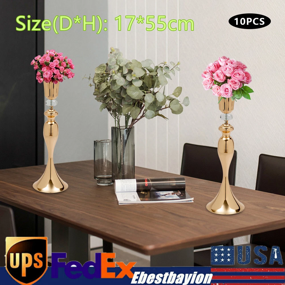Specification Color: Gold Shape: Trumpet Material: Iron, Crystal Surface Treatment: Electroplating Assembly Required: Yes Mount Type: Free Standing Style: Modern Number of Items: 10 Net Weight: 11kg/24.25lbs Gross Weight: 12.5kg/27.56lbs Package Size: 46*46*36cm/18.11*18.11*14.17inch Overall Size(D*H): 17*55cm/6.7*21.7inch Top Holder Diameter: 14.5cm/5.7inch Package Included 10* Metal Vases All Accessories for Installation 10 Pcs 21.7'' Tall Metal Trumpet Vase Wedding Centerpiece Table Decorative Vase 10 Pcs 21.7'' Tall Metal Trumpet Vase Wedding Centerpiece Table Decorative Vase Description Weddings, Graduation Ceremonies, Birthdays, Etc. Are All Memorable Events in Our Lives and Will Become Precious Treasures in Our Lives. with This Set, Your Wedding and Other Important Events Will Be Even More Wonderful. Our Metal Vases Are Made of Iron and Crystal, and Adopt Exquisite Electroplating Technology, so They Can Be Used for a Long Time and Accompany You Through Various Stages. Specification Color: Gold Shape: Trumpet Material: Iron, Crystal Surface Treatment: Electroplating Assembly Required: Yes Mount Type: Free Standing Style: Modern Number of Items: 10 Net Weight: 11kg/24.25lbs Gross Weight: 12.5kg/27.56lbs Package Size: 46*46*36cm/18.11*18.11*14.17inch Overall Size(D*H): 17*55cm/6.7*21.7inch Top Holder Diameter: 14.5cm/5.7inch Package Included 10* Metal Vases All Accessories for Installation Key Features Build to Last: High-quality Iron, Crystal, and Electroplating Process Make the Product Durable and Solid, so It Can Better Keep Beautiful and Practical for a Longer Time. Strong Stability: the Solid Material, Reasonable Structure, and Stable Base(6.7inch) Provide This Item a Strong Bearing Capacity, so You Can Use It Safely Without Worrying About the Fracture. Attractive Shape: the Trumpet Design Enriches Your Visual Experience, Creates a Personalized Background, Adds Glitter & Shine to Dull Activities, and Becomes a Good Home Decoration. Wherever It Is Placed, It Is Beautiful Scenery. Perfect Decoration: You Can Place This Product at the Top of the Booth As an Excellent Decoration for Special Days, Creating an Elegant Atmosphere, Especially for Weddings. You Can Also Put It on the Table to Relax Your Mood. Even If It Hasn’t Fake Flowers or Candles on It, It Is Still a Very Elegant Decoration! High Cost-effective: 10pcs Allow You to Use Different Items, Such As Flowers, Artificial Flowers, and Vines, on Different Occasions to Decorate Them Freely and Repeatedly, Promoting the Unity of Style and Fully Meeting Your Needs. Effortless Cleaning: the Smooth Surface and Simple Structure Make It Convenient for You to Clean with a Wet Towel and Water. Simple and Convenient: Complete Accessories, Simple Structure, and Detailed Installation Video Allow You to Complete the Installation and Start Using It in a Short Time. Its Hollow Horn Holder Goes Great Together with Seasonal Fresh Flowers or Artificial Flowers, Ostrich Feathers, Brushes, Buds, Garlands, and Bouquets. Easy to Carry and Store: the Overall Size of 6.7*21.7inch and Detachable Design Let You Easily Store and Carry It Anywhere. Ideal Gift: with an Attractive Appearance, This Product Is Used As a Gift for Family, Friends, and Lovers to Make Their Home More Atmospheric and Festivals More Meaningful. Protective Packaging: the Pearl Cotton Can Better Protect Your Product During Transportation, Allowing It to Be Delivered Completely to You. Details Round Corners: Compared with Traditional Square Corners, an Arc Design Can Better Care for Your Skin. Solid Top Holder: the Trumpet-shaped Top Holder with a Diameter of 5.7-Inch Provides More Convenience for You to Place Items and Also Helps to Enhance Stability When Placed on the Table. Application Match with Artificial Flowers and Other Items, This Product Can Be Used in Homes, Restaurants, Terraces, Coffee Shops, Hotels, Bars, Clubs, Aromatherapy, Spa, Reiki, Meditation, Gardens, Corridors, Luxury Dinners, Candlelight Dinners, Holiday Dinners, Old-fashioned Bride Showers, Weddings, Birthday Parties, Anniversaries, Thanksgiving, Christmas Parties, Valentine's Day, Banquets, School Opening Ceremonies, Graduation Party Decorations, Candy Buffets, Dessert Tables, Bachelor Parties, the Background Decoration of the Studio, As Well As Any Other Special Activities You Would like to Decorate. Notes Please Note That Flowers and Other Decorations Are Not Included. Please Use a Soft Cloth to Clean and Dry It. Please Do Not Put It in into a Dishwasher, and Do Not Use Harsh Chemicals or Abrasives. Please Allow the Slight Color Difference Caused by the Shooting Light and 1-3 Cm Error Due to Manual Measurement, and Make Sure You Do Not Mind Before Ordering. Payment Delivery details Terms of sales About us Contact us Payment We accept ebay payment 。 Fees such as import duties, taxes are not included in the item price or shipping costs. These charges are the buyer's responsibility. Delivery details Shipping: 2-9 working days to: USA Terms of sales We maintain high standards of excellence and strive for hundred percent customer satisfaction. Feedback is very important to us. We hope that you contact us immediately before you give neutral or negative feedback, so that we can address your concerns. It is impossible to address issues if we do not know about them! About us Your satis faction is our ultimate goal. We work hard to earn your trust and future business. Our certified technicians have tested each item before shipping. The unit comes with 1 year limited warranty on all manufacturing defects. a) If you receive a defective item, you may return it or ask for a discount. Please contact us within 14 days after you receive the package. b) What you returned must be intact and in its original packaging as re? u. Customer is responsible for shipping costs of the returned item. c) We will cover the cost of shipping back t with the shipping rate indicated in the registration page. We will send you a new unit or 