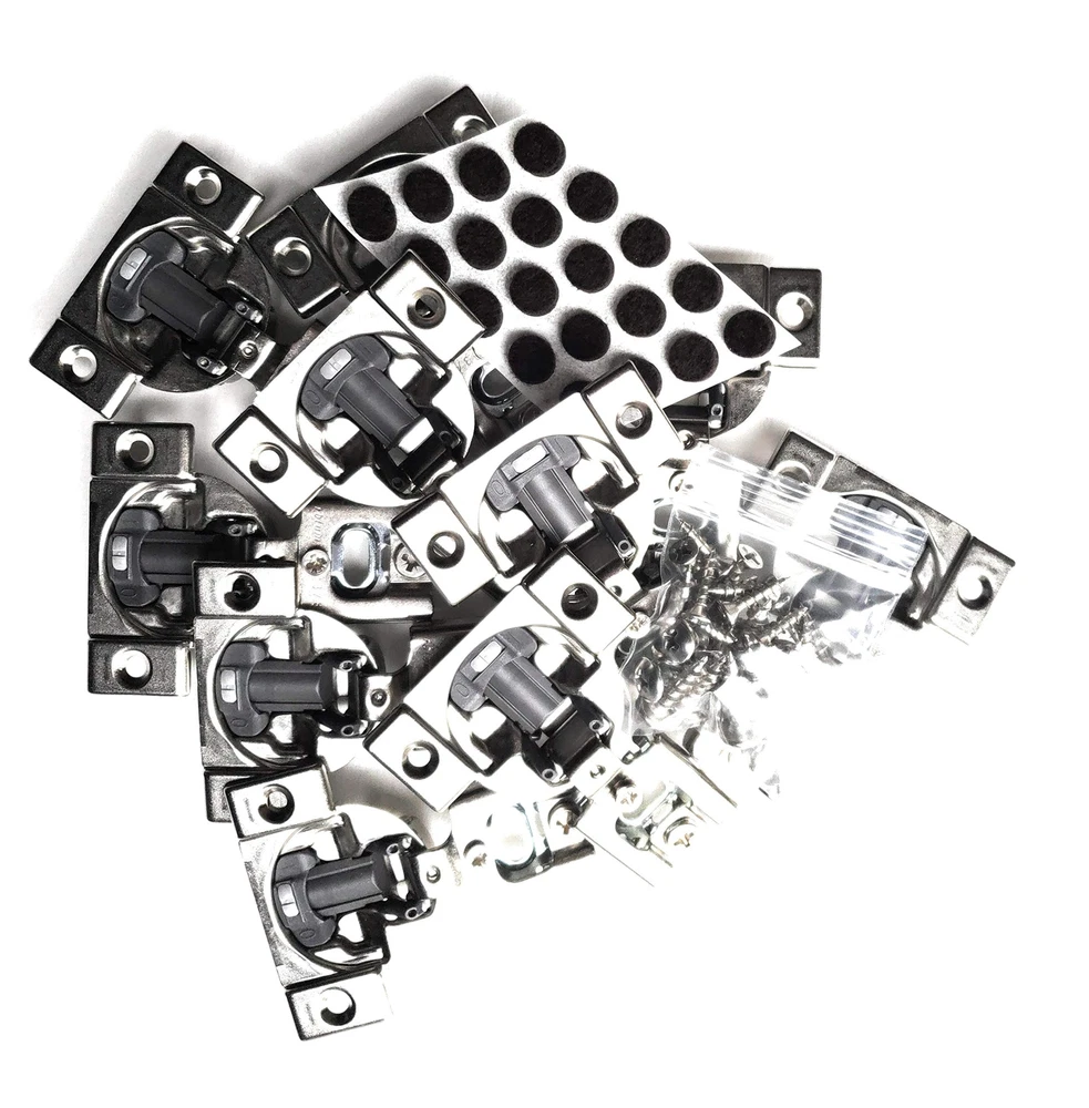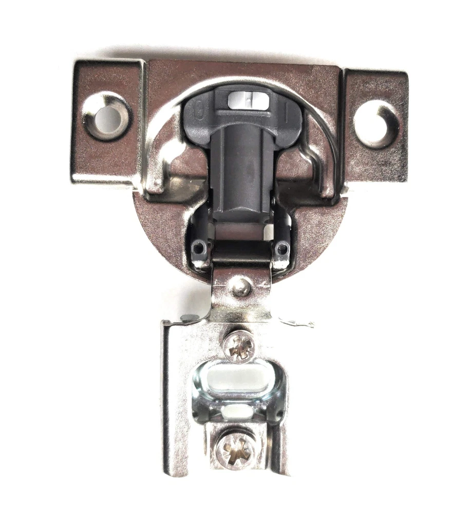Five pairs (10 hinges) Blumotion 38N series compact 3/8 inch overlay SCREW ON type hinge with all the necessary hardware including mounting screws and felt pads. The popular Compact series of concealed hinges for 3/8 IN overlay 3/4 inch face frame applications with the added feature of Blumotion soft-close. Keeps doors from slamming shut. The soft-close mechanism is integrated into the cup and there are no other parts to purchase. Hinges include pre-attached mounting dowels for insertion with a machine but dowels can easily be removed and the hinges installed with wood screws. Optional cover caps sold separately From Mfr: 's COMPACT concealed hinge has proven itself as the high quality solution for face frame cabinets. The new BLUMOTION soft closing mechanism is integrated in the hinge cup, and continues to provide the quality of motion you have come to expect from hardware. The hinge incorporates an overload feature that protects the hinge from damage if the door is slammed and maintains the BLUMOTION soft closing for the life of the hinge. The BLUMOTION function can be deactivated on one of the hinges, allowing small or light doors to close with the same high quality of motion. COMPACT BLUMOTION Hinges are interchangeable with current COMPACT Hinges. (Complete installation and care instructions are available at the mfr web site .Com). PLEASE NOTE THIS HINGE CAN BE CONVERTED TO PRESS IN TYPE WITH SPECIAL DOWELS AND SCREWS (NOT INCLUDED IN THE PACKAGE - REQUEST DOWEL VERSION IF REQUIRED) Integrated Blumotion Soft Close Compact 38N 105° Concealed Face Frame Hinge. For 3/4 inch frame. SOFT CLOSE SCREW ON TYPE ; Nickel Plated; Cup size: 35mm; Cup depth: 12mm Bore Distance: 2.5 - 3mm Depth Adjustment: - 1/32 + 3/32 Side Adjustment: +/- 1/8 Height Adjustment: +/- 9/32 On / Off Switch; 1 Piece Hinge , Mounting Plate Not Required Incl Per Hinge (1) #10 x 3/4 ; (2) #6 x 5/8 and 2 felt pads.