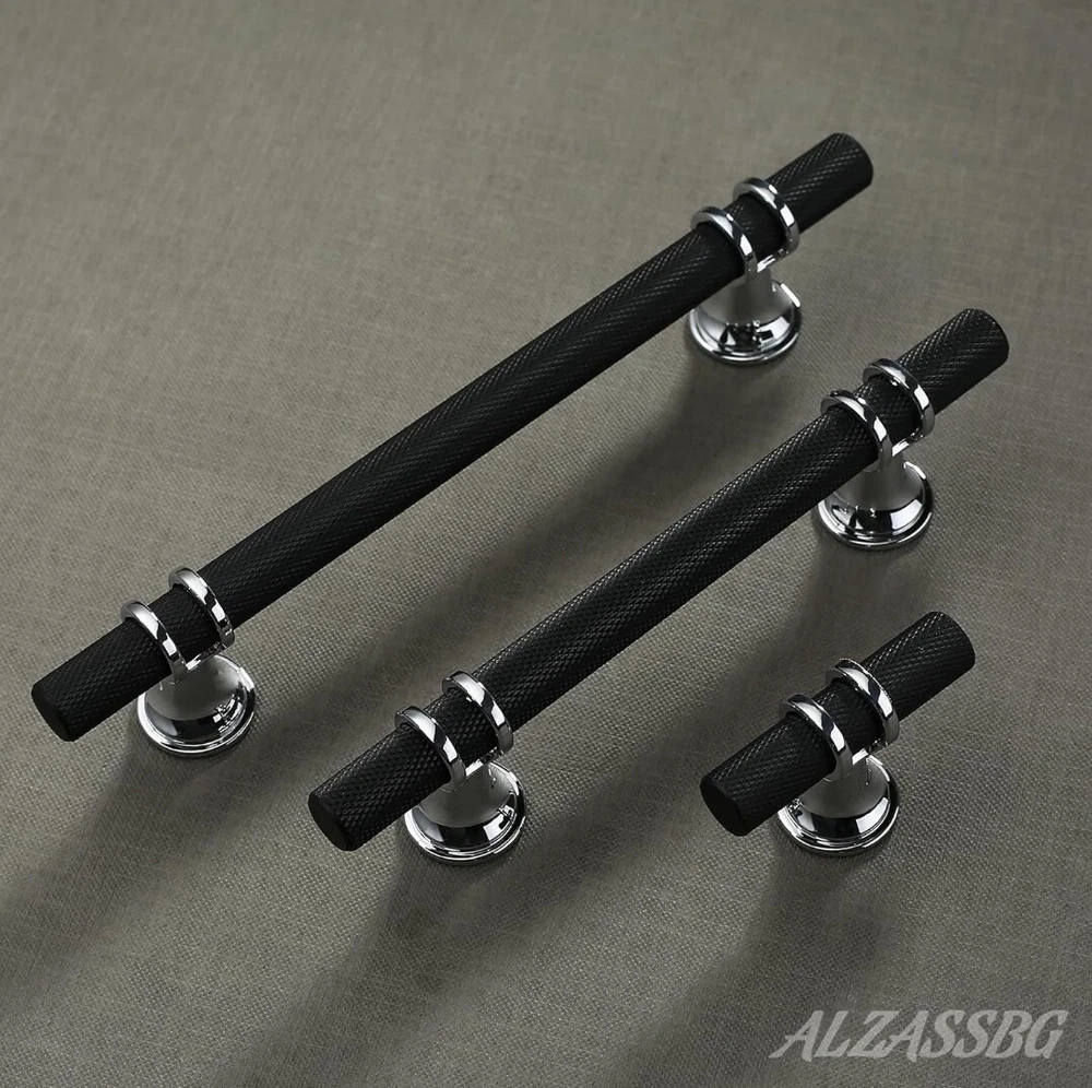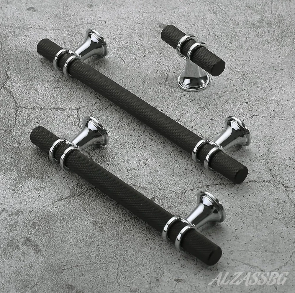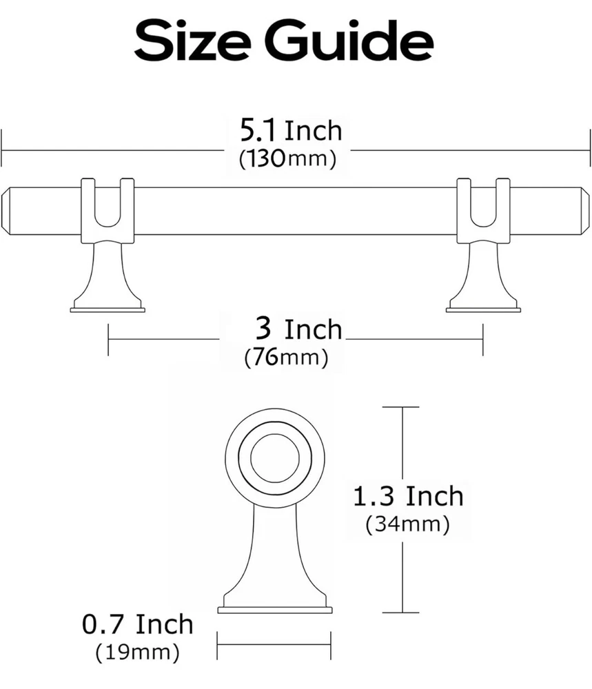 SOLID Cabinet Hardware Pulls with Elegant Matte Black and Polished Chrome Finish Enhance the look of your kitchen or furniture with our high-quality cabinet handles; Ideal for cabinets, closets, cupboards, drawers, wardrobes, and more, add a touch of sophistication and style to any space Overall Length: 5.11" (130mm), Hole Centers: 3" (76mm) Width: 0.75" (19mm), Projection: 1.34" (34mm) Two sets of mounting screws included: 1 inch screws and breakaway screws; If you need them shorter, simply use pliers to cut off the excess