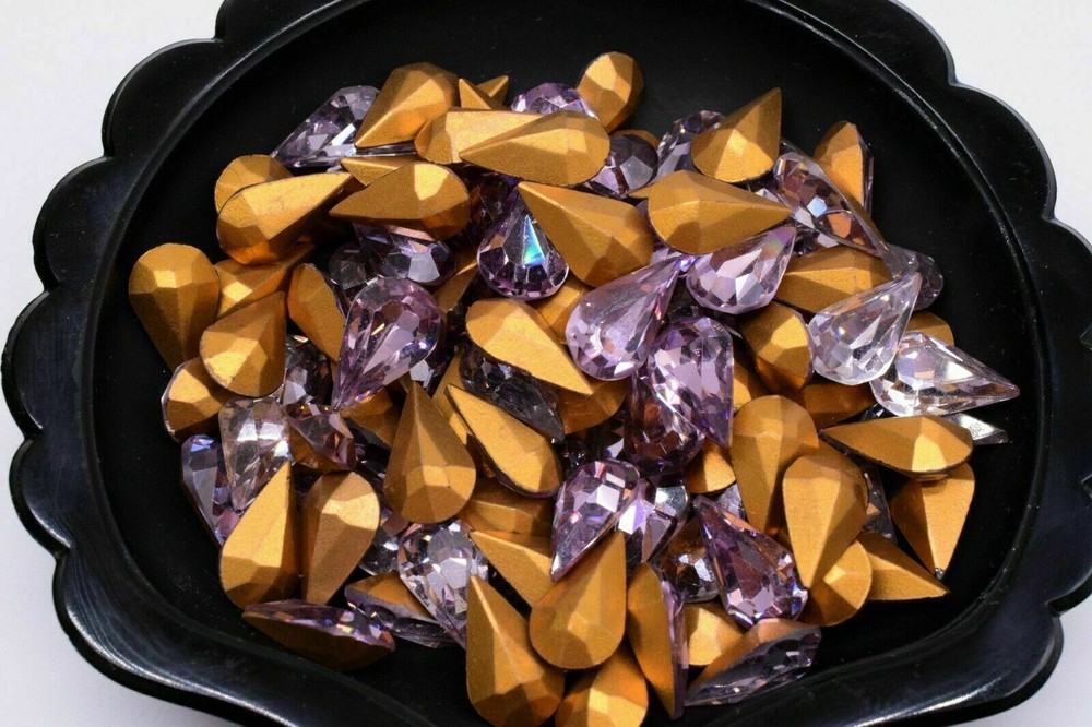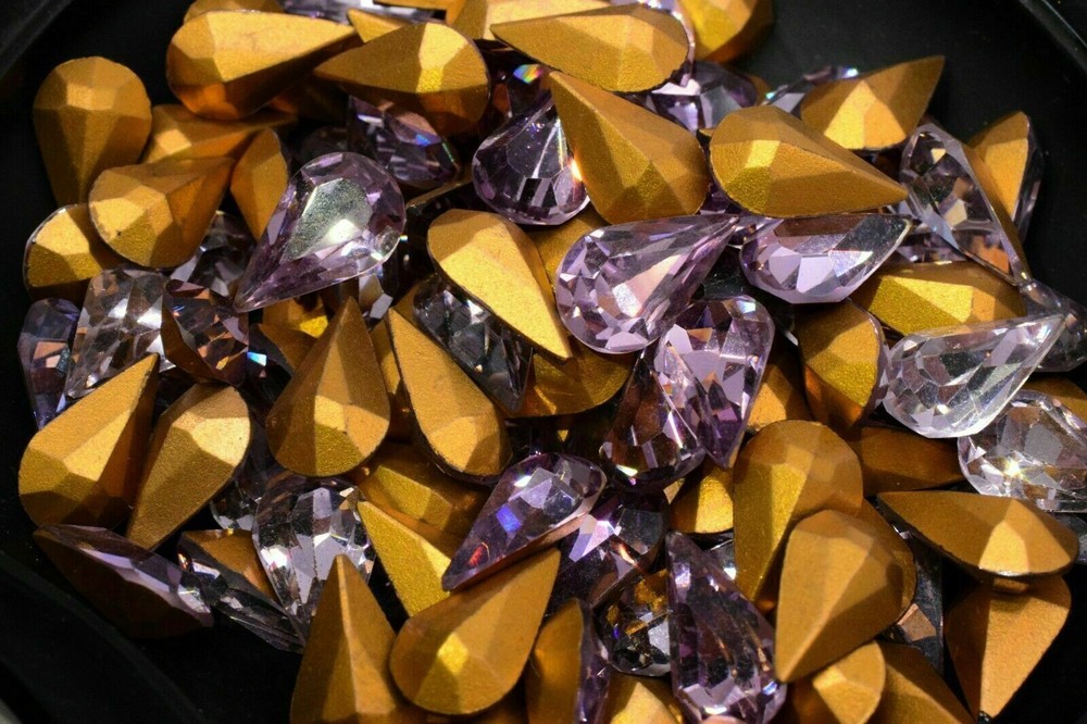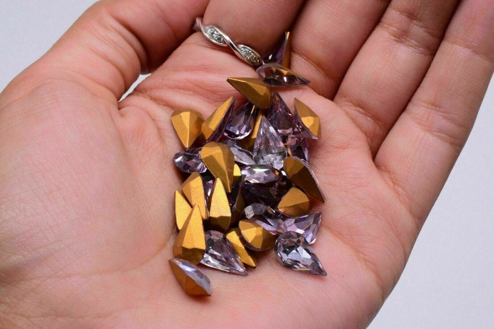 10 Swarovski Crystal Iridescent AB Pear Shape Cabochon Foiled 8 x 13 mm Vintage