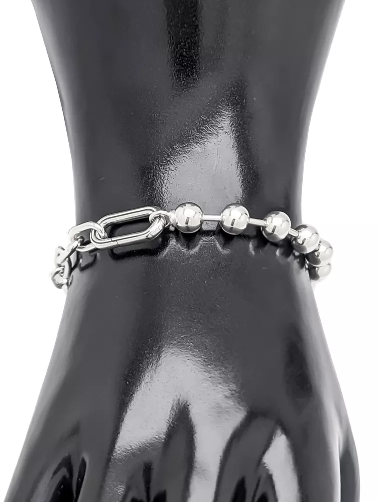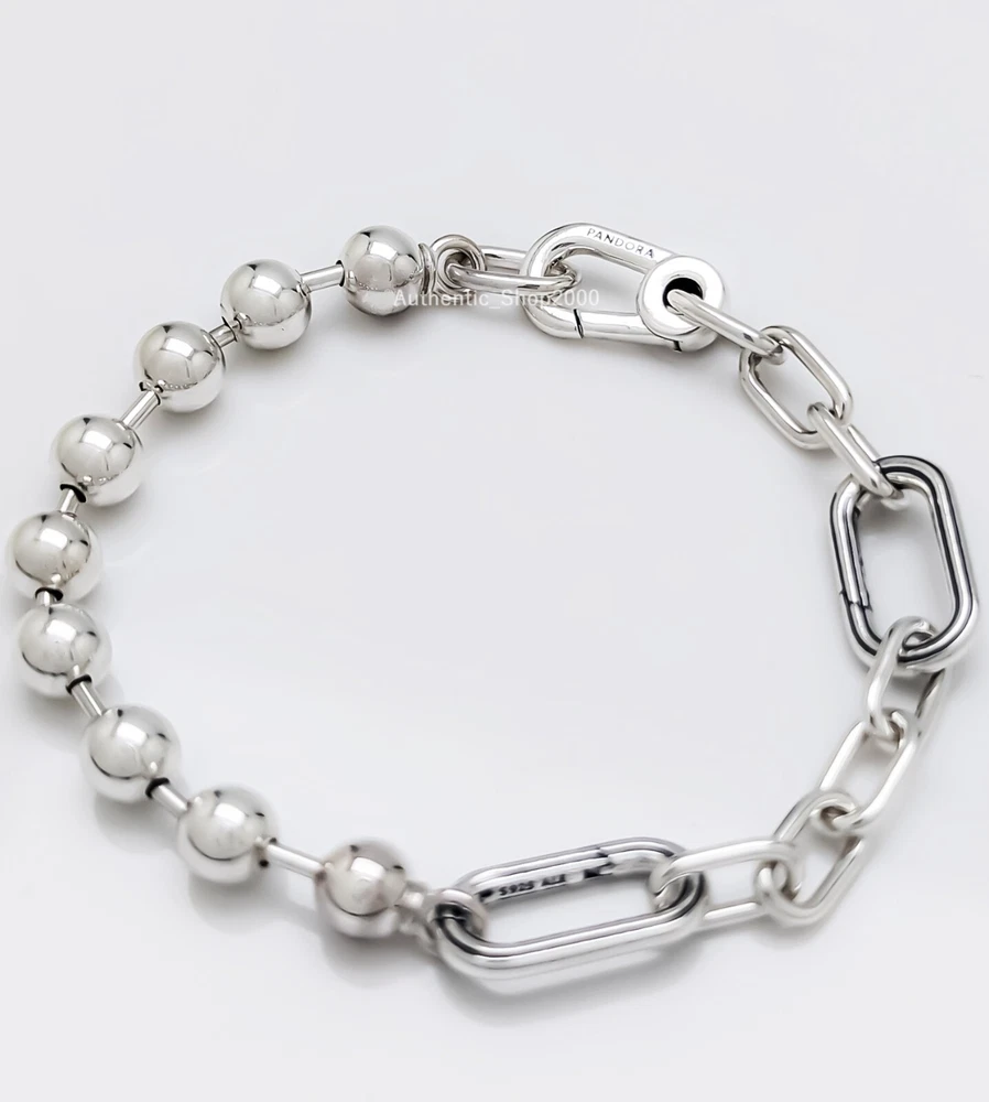Description: Style: Pandora ME Metal Bead Chain Bracelet Guaranteed Authentic Color: Silver Size: Multiple Sizes Condition: Brand New Retail Condition. Details: 925 Sterling Silver with Hand-finished Details. -The Pandora ME Metal Bead Chain Bracelet proves that opposites attract. This sterling silver bracelet combines two basic styles - metal beads and links - and can be customized by pairing the links with a mini charm or medallion charm. Balancing the influence of 90s punk rock with the timelessness of trendy silver jewelry, this statement bracelet can be worn alone or layered for daily wear to style in new ways.