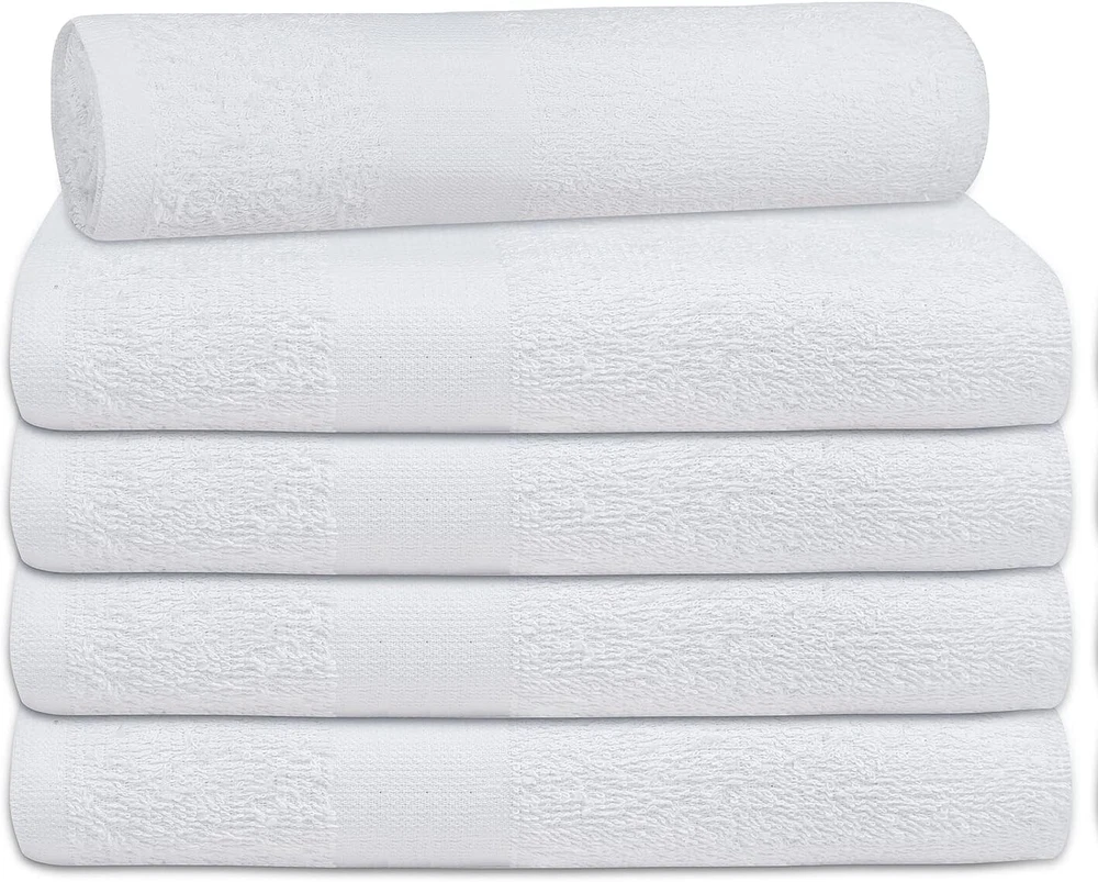 100% Cotton Bath Towel Set Pack of 60|500 GSM|Soft Large Bath Towel|Super Absorbent|Quick Dry|Ideal for Pool Home Gym Spa Hotel|Perfect for Daily Use|Bath Towel Set 24 x 44 Inches|White COTTON - Bath Towels are professionally crafted from pure cotton fabric to provide hotel-quality towels that feel super soft to the touch. COMMERCIAL-GRADE - These White Bath Towels are designed not only for personal and home use. They are also ideal for commercial utilization, such as for College Dorm Room Essentials, Gym, Salon, Spa, Resort, Hotel, and more; also perfect for cleaning and drying dishes. EXTRA ABSORBENT - Our Towels make the best all-around utility towels as they are extremely lightweight, low-maintenance, and quick drying. They are made for maximum absorbency that's why they make a great towel for drying hair and body after taking a bath or swimming. DURABLE CONSTRUCTION - Featuring double-stitched hems, our Cotton Towels create a neat, finished hemline that adds up as extra protection against fluff on raw edges that can result in towel damage. They are safe for machine wash and can be reused multiple times. VALUE PACK - For This lot you will get 60 pieces of Classic White Towels at an economical price. This is a great deal for business owners who are always in need of quality yet affordable towels: for hair care salons, massage parlors, and more!