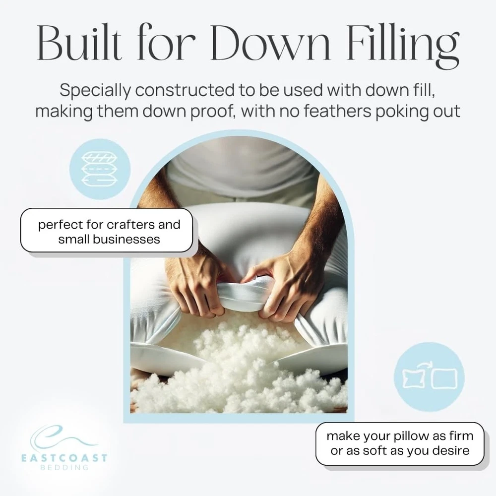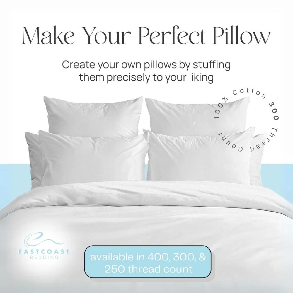 DIY Custom Pillow Casing: This is an empty pillow cover designed for custom filling. Perfect for those who want to custom make their pillow's firmness and comfort. No Zipper Design: Designed to be filled and sewn shut, offering a customizable solution for DIY enthusiasts. Please note, this casing does not include a zipper or any filling. It comes with a 6-8 inch opening and must be sewn closed. Variety of Sizes and Thread Counts: Available in 250TC, 300TC, and 400TC options, and in sizes Standard (20x26), Standard/Queen (20x28), Queen (20x30), King (20x36), Body Pillow (20x54, 20x60, 20x72), and Throw (16x16 to 26x26). High-Quality Cotton Material: Made with 100% natural premium cotton, featuring stitched piping around the edges to ensure durability and prevent filling from leaking once sealed. Cost-Effective and Creative: Avoid the expense of pre-filled pillows that don’t meet your specific needs by crafting your own with our high-quality casings.
