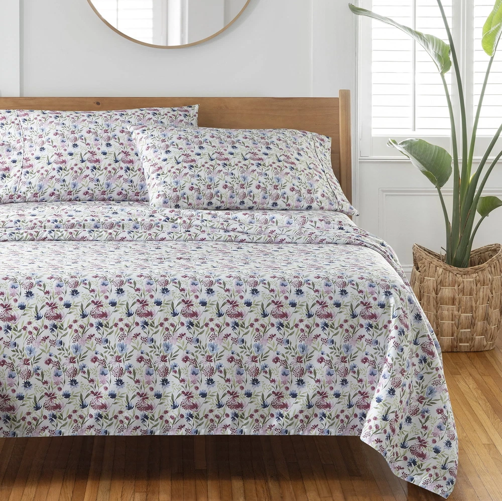 Ultra-soft, wrinkle-resistant bed sheet set provides comfortable sleep and style Queen-sized bedding set includes 1 flat sheet, 1 fitted sheet, and 2 standard/queen pillowcases Features timeless, solid-print pattern in an arctic-white color, plus wrinkle-resistant properties for tidy look Extravagantly soft for comfort and durable enough for everyday use Classic style complements any bedroom and fits all seasons and occasions Oeko-Tex Made in Green certified—meets high environmental safety standards and has been tested for harmful substances, meets Global Organic Textile Standard (GOTS) requirement and is non-GMO verified
