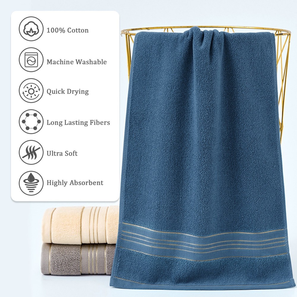 Features : ✿ Made of pure cotton, the texture is fluffy, breathable, delicate and smooth, with strong water absorption. ✿ The use of filigree technology design, giving a different sensory effect. ✿ Soft fibre, not easy to lose hair and fluff, the selection of high-quality raw material weaving so that the fibre is more resilient, more soft. ✿ Absorbent, soft, no colour loss. ✿ Widely used: bathroom, gym, beach, spa, camping trips and so on. Specification: ✿ Material: Cotton ✿ Color: Blue/Beige/Khaki ✿ Size: 12.59*28.34in Package Includes: ✿ 3 x Towel