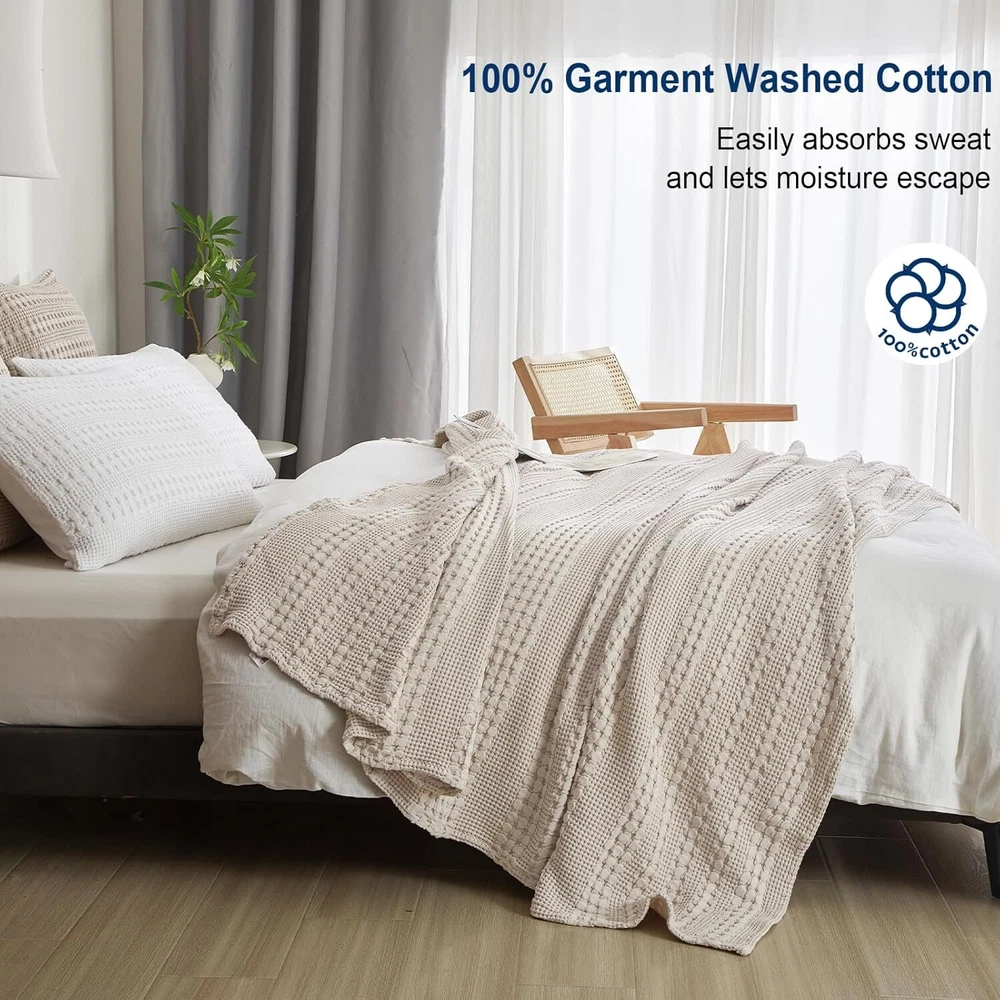 Special Feature Lightweight, Breathable Style Modern Blanket Form Single Layered Blanket About this item Exquisite Waffle Weave Design: Classic yet stylish waffle design features three-dimensional, puffy and elegant appearance, along with exquisite complex woven craftsmanship brings thus extra sophistication and create a soothing retreat for perfect home decor. Meanwhile the special waffle weave helps with air circulation and enhance the breathbility of the blanket. Natural Pre-Washed Cotton: These waffle blankets made of 100% cotton which are safe and skin-friendly for you and your family. The pre-washed craftsmanship makes the fabric feature excellent softness, can get softer after every wash and stay cozy for years. All Season Comfort: This waffle blanket can be used in all seasons,making itself a bedding essential in daily life. It is soft, breathable, moisture absorption and proper warm. It is perfect to be used in spring and summer to take off the chill but not cause you to sweat in hot days. It can also be usd in fall and winter as a nice added layer, on top of a down comforter in cold days. Versatile Blanket: Not only a bed and sofa blanket, this waffle blanket can be used as a bedspreads or bed layering. It is also suitable for outdoor use like going picnic,travelling, backpacking or just when you nap in your office or carry it in cars. Cats/dogs are NOT recommended to play on the blanket for snagging issues. Special Feature Lightweight, Breathable Style Modern Blanket Form Single Layered Blanket Age Range (Description) All Product Dimensions 90"L x 90"W Theme Waffle Pattern Geometric Recommended Uses For Product Travel Seasons Winter, Summer, Fall, Spring Fill Material Cotton
