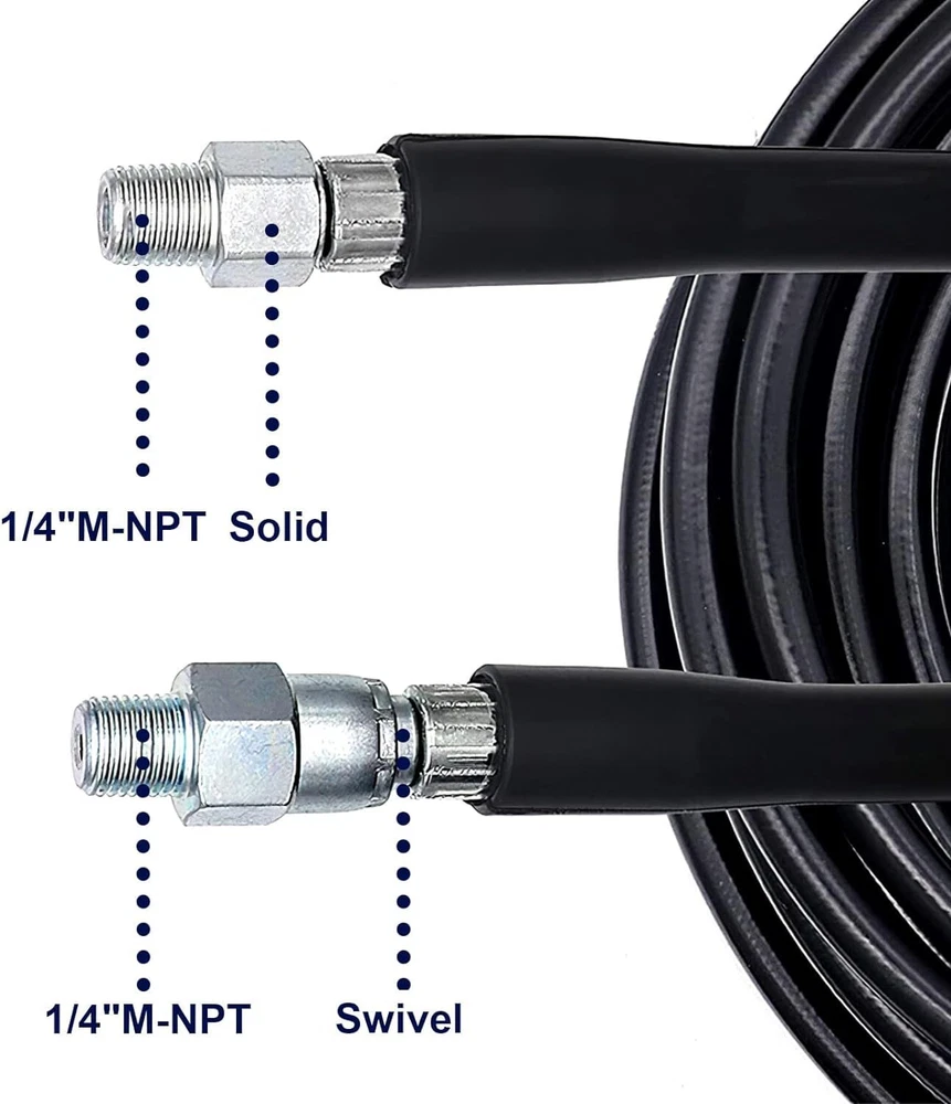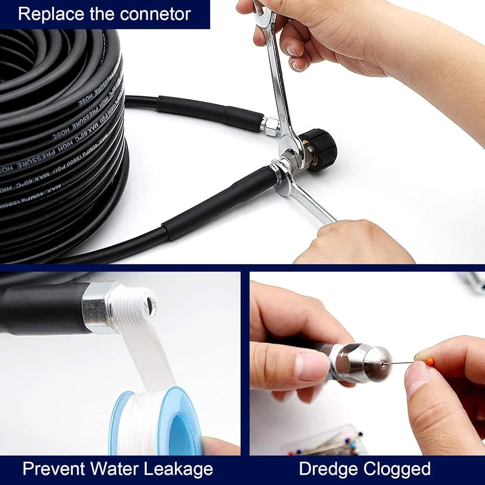 Product Description 100 FT Sewer Jetter Kit for Pressure Washer,Sewer Jetter Nozzles Kit,Drain Cleaning Hose for Pressure Washer,Corner,Button Nose and Rotating Sewer Jetting Nozzle,1/4 Inch NPT,5800 PSI (100FT) Professional:sewer jetter kit Package includes sewer jet hose 100 FT,button nose sewer jetter nozzle(front),button nose sewer jetter nozzle(corner),fixed nozzle,rotating sewer jet nozzle,1/4" quick coupler plug,coupler (female M22 to female 1/4" NPT) and waterproof tape.Sewer Jetter parts for Pressure Washer can help you unblock More types of indoor and outdoor drainage devices,combined with any brand of pressure washer,can easily flush obstructions.Working pressure is rated to 5800 PSI. Application:Button Nose Sewer Jetter Nozzle clears blockage and flush out debris by 1 front spray jet and 3 rear spray jets and 1 corner jet and 3 rear jets.Rotating Sewer Jet Nozzle offers an even cleaning and flushes out debris by 3 backward rotating spray sewer jets. Fixed nozzle will pro toilets,bathrooms,kitchens and outdoor plumbing.vide another way of cleaning,wrap the tape on the threaded joint of the pipe to prevent water leakage.It can be applied to the removal of any blockage,such as Durable:Sewer jetting hose has inner tube, cover and reinforcement to protect the presure washer hose from bursting.Inner tube is made of thermoplastic polyester, which provides strong toughness.Reinforcement layer is 1/4" high tenacity polyester textile braid to protect water pipes from explosion.Cover layer is made of thermoplastic polyurethane,which can resist oil,weather,ozone and abrasion. If you have any sewer jetter kit for pressure washer questions, please feel free to contact us Corsage Pin Waterproof Tape with 2 Spanner About Us We are a reputable seller with many years of experience selling on eBay. Our goal is to provide high-quality products and excellent customer service. Shipping Items will be shipped within 1-3 business days when we received payment. (Orders are not processed on weekends & holidays) Tracking information will be sent once item is shipped. Delivery time depends on destination and other factors Item is shipped to ebay address. Leaving correct address can minimize delay. For international shipping and shipping to Guam, Hawaii and Alaska, Please contact us before placing the order. International buyers please note: Import duties, taxes and charges are not included in the item price or shipping charges. These charges are buyer’s responsibility. We will try our best to reduce the risk of the custom duties. Local pick-up is unavailable at the moment. Contact Us We reply any email messages within 1 business / working days(off-duty at weekend). If you do not get a response from us, then please check your junk or spam mailbox. Our Business hours: Mon-Fri 9:00-18:00, UTC/GMT +8 hours. Please contact us either by clicking "contact seller" in the "purchase history" section or simply click "ask a question" at the bottom of this page. If you are unsatisfied with our item or service, please contact us before leaving any feedback. We are committed to resolve all issues in a friendly and satisfactory manner.