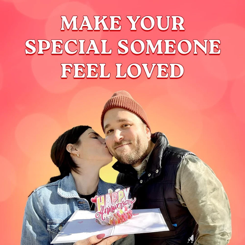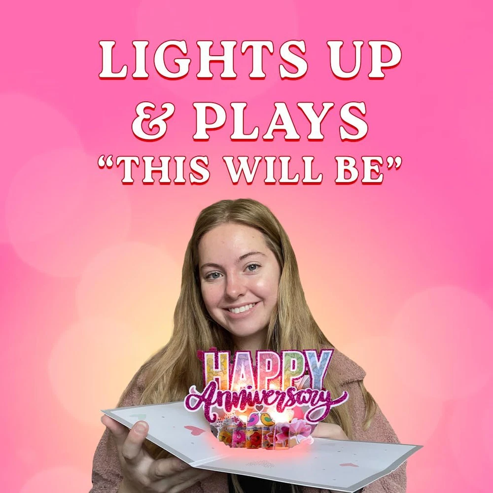 π πππ ππππ πππππππππππ π§π₯π¨ππ¬ π¦π£πππππ π/ πππππ§π¦ & π π¨π¦ππ β Our happy wedding anniversary card for husband & wife lets you send your loved one a truly romantic anniversary greeting with lights & music! Imagine the warm smile on their face when your pop up anniversary card for him & her opens up with a beautiful greeting, then lights up and plays the hit song 'This Will Be'. (Includes ONE card only) π₯π’π ππ‘π§ππ π π¨ππ§πππ’ππ’π₯ππ πππππ§π¦ πππ‘ππ ππ‘ π¦π¬π‘π πͺππ§π π§ππ π π¨π¦ππ β Forget boring old greetings cards that donβt do anything! Our happy anniversary popup cards for him , her or couples are made with advanced audio and lighting technology that adds a touch of luxury and magic to your greeting. When your loved one opens their card, the 25 second long song will serenade them as the multicolored lights dance in sync with the music. π πππ π¬π’π¨π₯ π¦π£πππππ π¦π’π ππ’π‘π ππππ ππ’π©ππ β Give your spouse or partner a moment of happiness with a Happy Anniversary message and a hit love song that is guaranteed to bring a smile to their face. Includes glitter on the front of the card to really make it sparkle! Perfect if you're looking for 3D flowers pop up cards, or an anniversary card for parents or son and daughter in law. π£πππ‘π§π¬ π’π π¦π£πππ ππ’π₯ π¬π’?π₯ π’πͺπ‘ ππππ₯π§ππππ§ π ππ¦π¦πππ β Every 100 Greetings card is made with thick, premium paper stock and colorful, high-quality print. There is also plenty of space for you write your own special words of love. Includes a peel off adhesive to seal the envelope! A luxury option if you're looking for a 1st, 20th, 25th, 50th or 60th wedding anniversary card, or a 1 to 10 year anniversary card.