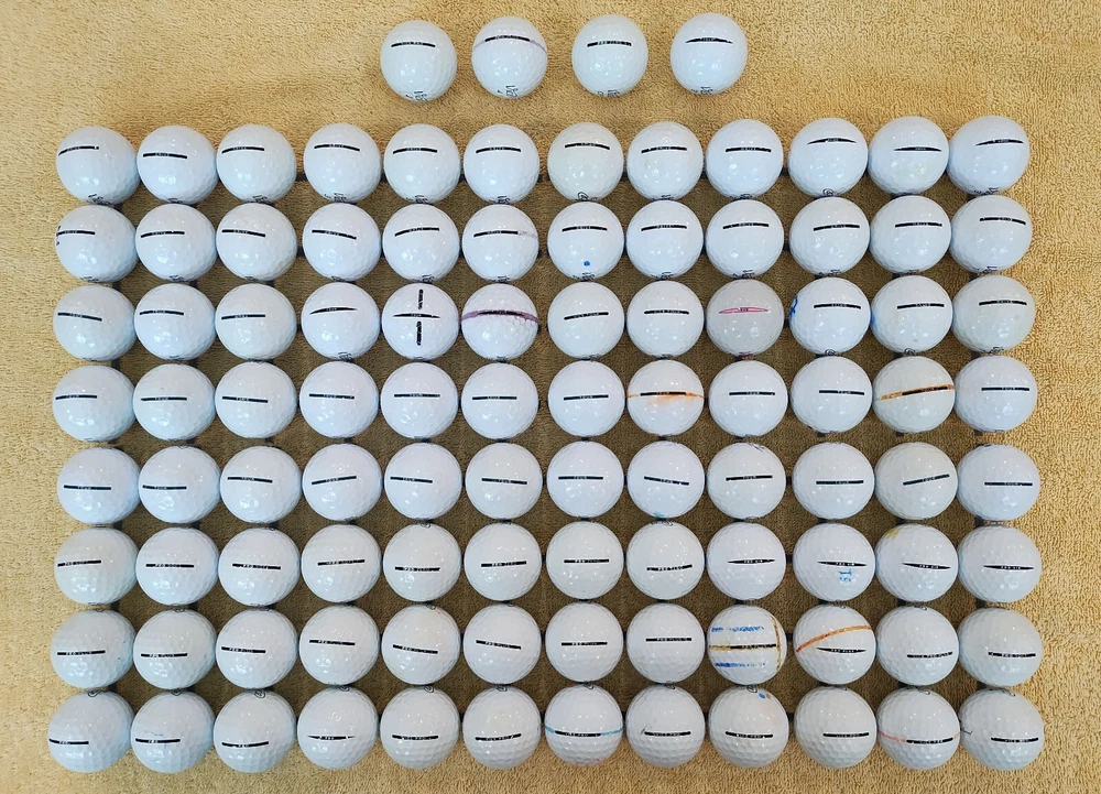 100 Near Mint (4A) Vice Pro/Plus/Air/Soft/Zero, Tour, Drive Mix - FREE Shipping The balls in this set may have logos and/or player markings. The picture shows the exact balls being sold. There will be No imprints of “practice,” No “x-out,” & NO Refurbished balls! ------------------------------------------------------------------------------------------------------------------------------- My Ball Rating Criteria Mint Quality (AAAAA) 5A Pre-played golf balls in Excellent Condition Appears and Feels like new They show NO scuffs, club marking or wear May have professionally printed logos &/or player markings Near Mint Quality (AAAA) 4A Pre-played golf balls in Great Condition May have minor cosmetic blemishes and imperfections like gloss-loss, minor abrasion and minor stains. But no cuts or damage that could alter play of the ball May have professionally printed logos &/or player markings GOOD (AAA) 3A Pre-played golf balls in Payable Condition Playable balls for the golfer that doesn't mind some slight scuffs and abrasions There are no cuts or damage that could alter play of the ball Can have varied discoloration/tint. May have professionally printed logos &/or player markings