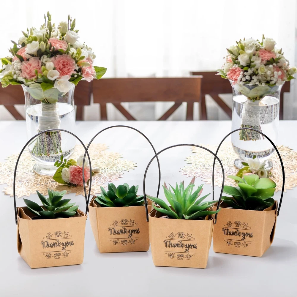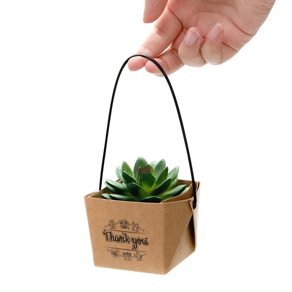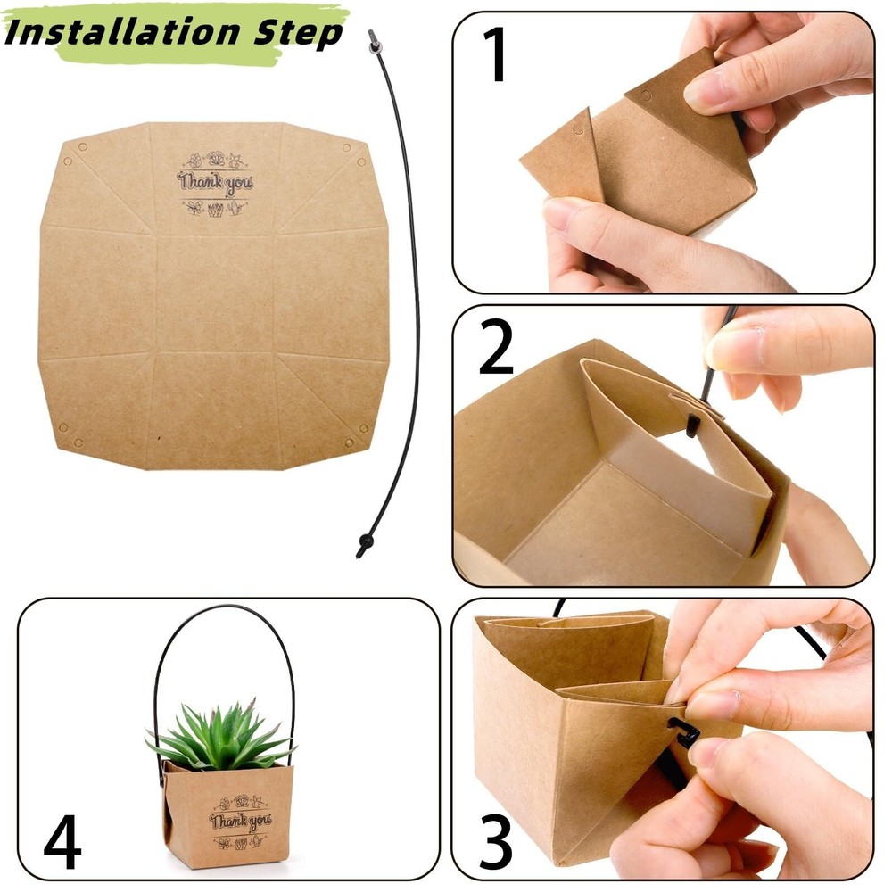 100 Pack Succulent Wraps, Thank You Gift Bags With Handles, Waterproof Kraft Paper Box for Plants Decoration, Party Wedding Product Details Brand: Covzoe Color: Kraft Paper Color Material: Cardboard, Plastic Occasion: Wedding, Christmas, New Year, Anniversary, Birthday Included Components: 100 Pcs Succulent Wraps Theme: Succulent Number of Items: 100 Unit Count: 100.0 Count Product Dimensions: 2.4"L x 2.4"W x 6.5"H Pattern: Floral Product Dimensions : 2.4 x 2.4 x 2.4 inches; 2.67 Pounds Item model number : Succulent Wraps Date First Available : July 12, 2024 Manufacturer : Covzoe Country of Origin : China Value Package: You will receive 100 pieces thank you succulents wraps, sufficient quantity for your daily use, measuring 2.4"L x 2.4"W x 6.5"H, suitable for holding small succulent, cactus and herbs. Premium Material: Composed of kraft paper box and plastic handle, it is sturdy, durable and not easily deformed. With waterproof effect on the inside, you don't have to worry about the water wetting the bag. Lovely Design: The exquisite and compact appearance is attractive. You can write or DIY draw on paper bags, which will be a unique gift for yourself, friends and family. Easy to Install: The installation is very simple. Just fold according to the trace crease on the kraft surface, and then install the handle, no need for other tools, it can be completed in a few seconds. Multiple Application: Covzoe succulent gift pots are great for birthday parties, wedding parties, Christmas parties, New Year's party, plant classroom decorations and so on.