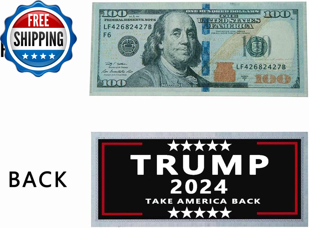 100 Pack Trump 2024 100 Dollar Bills,Trump 100 Dollar Bills Prank Money Bills 2024 Joke Prank Funny Money Bills, Small Size: 2.6×6.1 inches,almost to the real size. Great prank gift. Limecute 100 Pack Trump 2024 100 Dollar Bills,Trump 100 Dollar Bills Prank Money Bills 2024 Joke Prank Funny Money Bills Item Weight 4.6 ounces Package Dimensions 8.11 x 3.66 x 0.67 inches Shipping Fast shipping is very important for us. Our standard US shipping service is FREE. Your order will be shipped within 2-3 business days upon full payment received. Your order will be delivered within 2-3 business days after the handling time. We only ship to the confirmed PayPal address. We reserve the right to cancel any order for any reason at any time. We are not responsible for undeliverable addresses. Returns and payment We offer a 30 days return policy from checkout winning date. We allow only PayPal as payment method FeedBack Your feedback very important to us, after you get your package and you are satisfied with our service please leave us positive feedback If you have any problem with your order / any questions please before leave any type of feedback Please visit our eBay store to check out other items for sale! Thank you for shopping at our store.