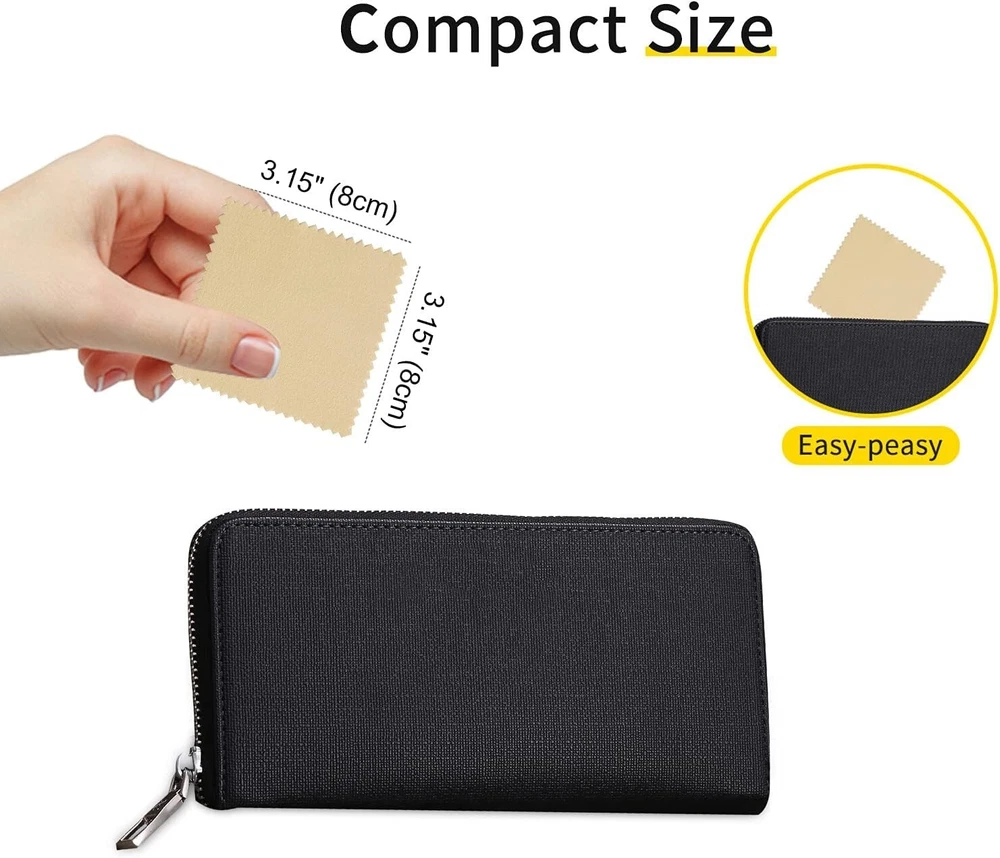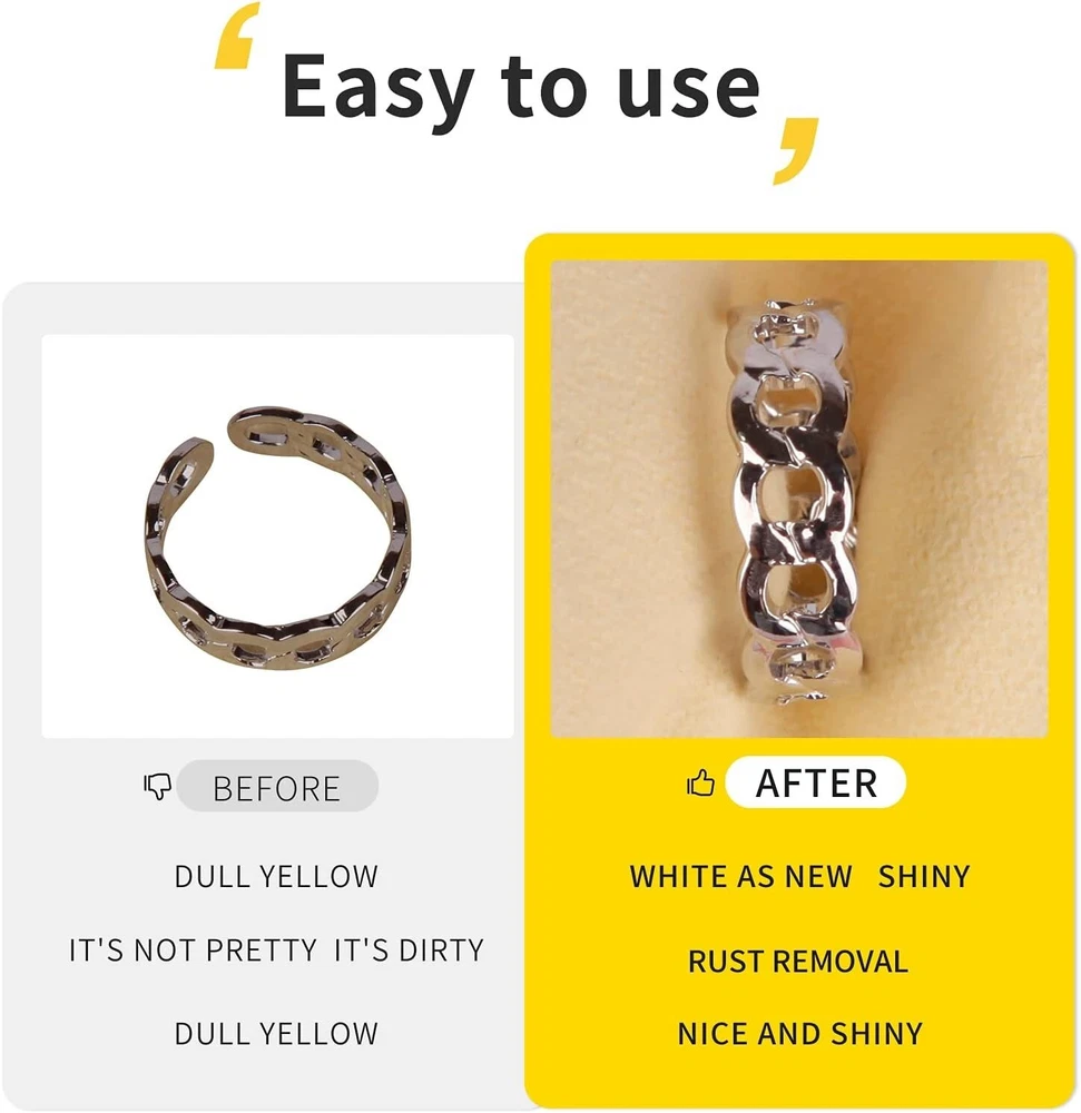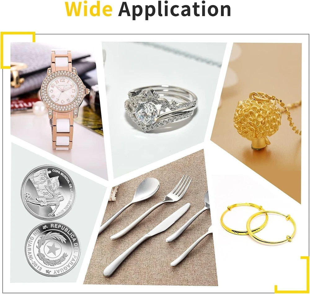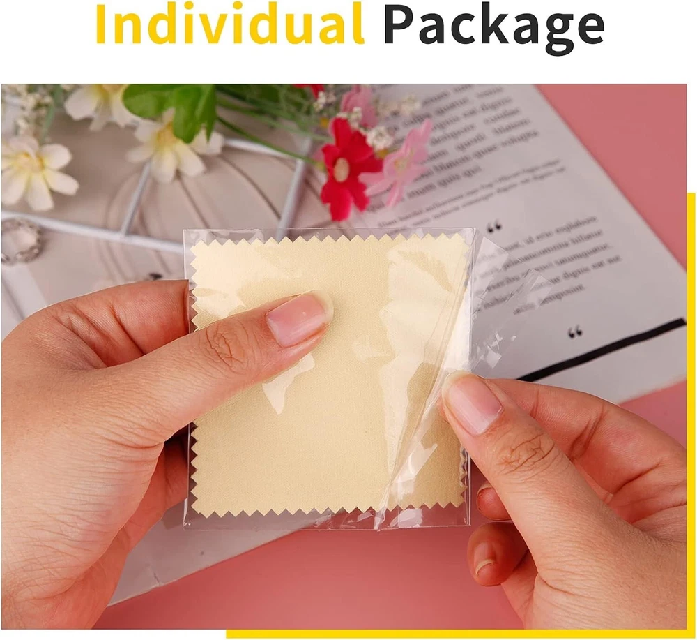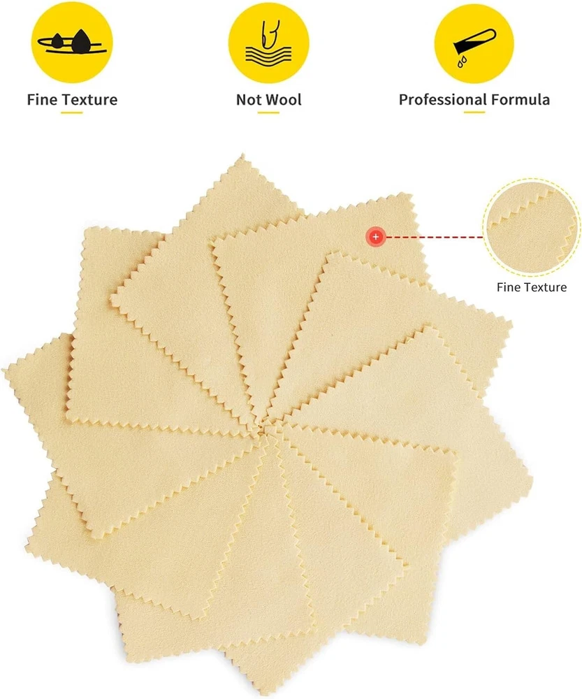 About this item đ ăBETTER EFFECT THAN COTTONăThe Jewelry Cleaning Cloth is made of high quality microfiber fabric, which does not lose hair, fine texture, harmless and tasteless.The professional formula makes it more effective than cotton cloth in decontamination and rust removal. đ ăPERFECT SIZE AND QUANTITYăThe silver polish cloth is 3.15 "X3.15" (8cmX8cm) in single sheet, individually packed. Small silver cleaning cloth is not only convenient to travel, but also very suitable for jewelers as gifts to customers. đ ăEASY TO USEăPolishing cloth for silver gold brass and most other metals. Double-sided polishing design, easily remove the scratches and rust on the jewelry to make your jewelry shine again. đ ăMULTI-PURPOSE POLISHING CLOTHăOur silver jewelry cleaner cloth is suitable for all kinds of items, such as silver earring, necklace, tableware, musical Instruments, glass, watch and mobile phone, etc., can meet your various needs. đ ăWhat You Getă100 Pcs silver polishing cloth bulk (Yellow). Jewelry cleaning solution.