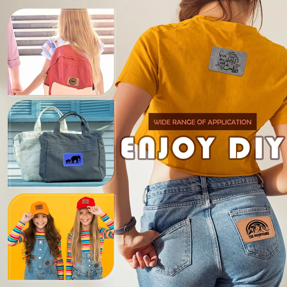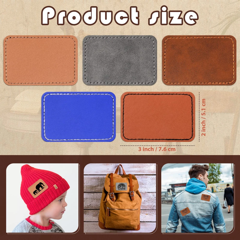 Features: As useful gifts: You can give the adhesive patches as the birthday gift or New Year's gift to your family, friends, colleagues or neighbors to express your care and blessings to them and bring you closer to each other. Compact and lightweight: Leather patch is lightweight and easy to carry, so you can put it in your backpack or handbag for your daily use. When it's not in use, it won't take up much of your storage space. Specifications: Material: artificial leather Color: rawhide, dark brown, blue, gray, light brown Size: about 2.99 x 2.01 inches/ 7.6 x 5.1 cm Package includes: 100 x Hat patch Notes: Manual measurement, please allow slight errors on size. The color may exist a slight difference due to different screen displays. Package Content: you will receive 100 iron on adhesive patches, the size is about 2.99 x 2.01 inches/ 7.6 x 5.1 cm, including 5 different colors, sufficient quantity to meet your daily use needs and DIY requirements, you can also share them with family and friend to use together Long Service Life: blank patches for hats are made of quality artificial leather, reliable and not easy to fade; The surface of stitching patch is smooth, comfortable, not easy to wear or deform, can accompany you to use a long time; The back has hot glue design, neat and firm side stitching, not easy to fall apart Easy to Use: the back of the blank fabric patches is with adhesive design, you can laser print your desired pattern on the smooth surface of the blank cap patch after, before and after the high temperature heating cap patch about 20 seconds, you can easily iron it to your hats and clothes; You can also sew it directly on your clothes and hats; Please keep the temperature around 150 degrees when heating, so that the fit will be better and will not fall off easily Where to Apply: these fabric patches can be applied to clothes, hats, pants, bags, uniforms in classic vintage colors to match most styles of clothing and bags; You can also use these blank leather patches to repair worn out clothes or hats to bring convenience to your life Decorative but Practical: leather adhesive patch is blank style, you can DIY your favorite pattern and text on the leather patch of the hat according to your preference, add different style to your daily wear, let you stand out from the crowd