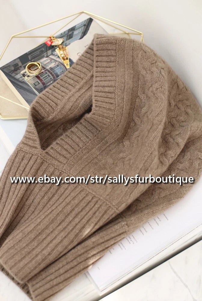 About Cashmere: Cashmere is a luxuriant wool that many a fashion-conscious woman has dreamed of wearing against her skin. Its silken feel, feather-light weight, and appreciable status make it highly desirable. It is the wool or fur of the Kashmir goat. 70% Kashmir goats in the world are raised in Inner Mongolia, China. Be wary of imitation cashmere. Often listings are stated as 100% cashmere, however are imitation cashmere, which does not have the special features of pure cashmere. Item description: Material: Pure cashmere, made in inner Mongolia. Size: 47cm High x 32cm Wide Lay flat Process: Double worsted twisted woven. Weight: 156 gram.