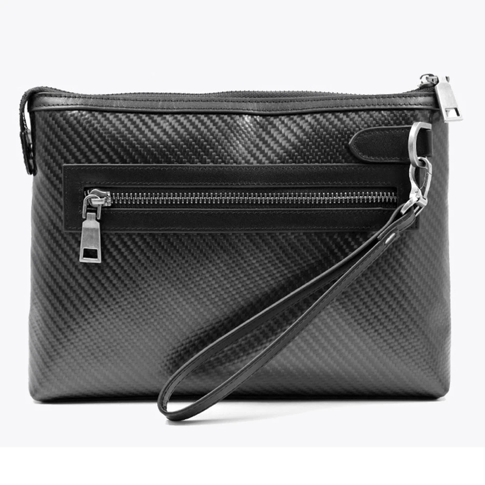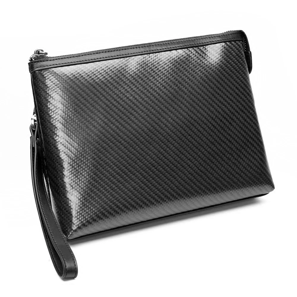 Feature 100% BRAND NEW Carbon Fibar Bag Made of carbon fiber and genuine leather materials. Style: Clutch Color: Black Size: 26.5cm (Length) x 18cm (Width) x 4cm (Thickness) Inner cowhide, soft and delicate texture After getting it,you will find that it is so worthy 100% high quality guarantee. Would be a very useful stuff in your pocket. Brand-new item as picture and in good condition. It is a good gift for your lover, family, friend and coworkers. PU Leather Bag Unique design: layered and reasonably placed multiple items, easy to carry all everyday items, smartphones, ID cards, credit cards, cash, keys, headsets, driver's licenses, mini power supplies, etc. Convenient wrist strap: There is a wrist strap on the back of the handbag, so you can slide your hand at any time to better grasp the handbag. Makes you feel safer and more comfortable. Material: The men's clutch is made of high quality PU leather. The quality of the leather is very good and it is gorgeous. Fashion and business: The clutch is ideal for all occasions, business and leisure. No matter how the fashion style changes, our quality and craftsmanship will always pursue fashion. The perfect gift: The men's handbag is the perfect gift for friends, fathers and brothers. It also applies to birthdays, Christmas, anniversaries, Father's Day, Valentine's Day and other special occas Size: 21*11*4 cm Package included: 1 Bag