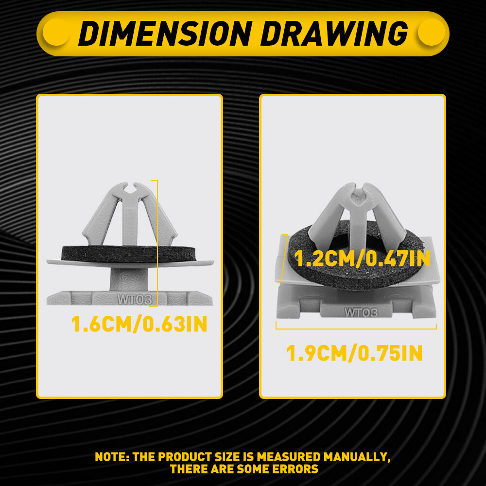 100Pcs Rocker Panel Moulding Clip&Sealer Fastener Car Body Retainer Fit 9mm Hole Fit for: Fits Into 9mm Hole Specifications: OE Number: 68172491AA, 11571175, 15127746, 11562250, 19352782 Color: Gray Stem Length: 11MM Top Head Size: 12MM x 20MM Bottom Head Size: 12MM x 20MM Hole Size: 9MM Features: *Wear and Corrosion Resistance The retainer clip with wear and corrosion resistance is not easy to break or crack in use. *Perfect Material Made of superior metal to ensure its long service life and durability. 100 Rocker Panel Moulding Clip Retainer With Sealer For Chrysler GM 11571175 M 100Pcs Rocker Panel Moulding Clip&Sealer Fastener Car Body Retainer Fit 9mm Hole Fit for: Fits Into 9mm Hole Specifications: OE Number: 68172491AA, 11571175, 15127746, 11562250, 19352782 Color: Gray Stem Length: 11MM Top Head Size: 12MM x 20MM Bottom Head Size: 12MM x 20MM Hole Size: 9MM Features: *Wear and Corrosion Resistance The retainer clip with wear and corrosion resistance is not easy to break or crack in use. *Perfect Material Made of superior metal to ensure its long service life and durability. *Simple Installation Simple installation with direct replacement, other modifications are not required. *Stable Performance The retainer clip with stable performance provides a better shopping experience for you. *Satisfying Service Communication is the best way to solve the problem. If you have any problems before or after purchasing, please contact us via eBay Message. Packaging Include: Clips*100 About Us: If you have any questions about our products or services, please feel free to contact us. We value your feedback,so we will strive to answer all messages within 24 hours. (excluding weekends and public holidays). ABOUT US 100 Rocker Panel Moulding Clip Retainer With Sealer For Chrysler GM 11571175 M 100Pcs Rocker Panel Moulding Clip&Sealer Fastener Car Body Retainer Fit 9mm Hole Fit for: Fits Into 9mm Hole Specifications: OE Number: 68172491AA, 11571175, 15127746, 11562250, 19352782 Color: Gray Stem Length: 11MM Top Head Size: 12MM x 20MM Bottom Head Size: 12MM x 20MM Hole Size: 9MM Features: *Wear and Corrosion Resistance The retainer clip with wear and corrosion resistance is not easy to break or crack in use. *Perfect Material Made of superior metal to ensure its long service life and durability. *Simple Installation Simple installation with direct replacement, other modifications are not required. *Stable Performance The retainer clip with stable performance provides a better shopping experience for you. *Satisfying Service Communication is the best way to solve the problem. If you have any problems before or after purchasing, please contact us via eBay Message. Packaging Include: Clips*100 About Us: If you have any questions about our products or services, please feel free to contact us. We value your feedback,so we will strive to answer all messages within 24 hours. (excluding weekends and public holidays). FAQ Shipping Returns Contact Us Payment Why swith to LED? LEDs not only give your vehicle a clean, modern look but, with proper use, will outlast any halogen bulb and HID bulb! Low energy draw, high lumen output, and instant on/off LED technology out shines stock bulbs in every way. Which bulbs are used in my vehicle? Check Sylvania automotive lamp replacemnt guide , you can select the year, make, and model of your vehicle, then select the application you want to replace or upgrade from stock. What does CAN Bus mean? CAN Bus means Controller Area Network Bus. This system monitors your vehicle and reports operating conditions. CAN Bus systems are commonly found in European vehicles such as BMW, Audi, Mercedes, Volkswagen, Porsche, and in many American vehicles. While most late model American vehicles have CAN Bus systems, it is always good to check with your vehicle dealer to see which system your vehicle has before purchasing electrical products. When do you need Warning Canceller? Some vehicles with cmplex internal computers(such as Audi,BMW,Jaguar,Mercedes,etc.) might report on-dash errors or flickering on the headlights. The warning canceller fixes the dashboard warning and flickering effect. Bulb Out Dashboard Error: On some vehicles, the dashboard will report as if you have a headlight bulb missing or burnt. It does not affect the headlights functioning, but the light on-dash will be on. The warning canceller fixes the issue. Flickering Issue: This happens when your vehicle does not recognize the new headlights installed. When turning the headlights on, the vehicle's computer does not understand the signal back from the headlights hence thinking they are still off. This triggers the headlight flickering effect. The warning canceller solves this issue. LED Advantages: Very low and efficient energy consumption than halogen bulbs & HID Bulbs Compared with HID bulbs, LED bulbs Light up instantly, no warm up period Low voltage protection, high precision constant current driver chip Longer lifespan than HID and halogen bulbs Light can be controlled easily in color and intensity Easy to install a LED headlight conversion kit (1) We will ship your item(s) within 24 hours. (2) We ship this item to US only via USPS first class mail. It usually takes 3-6 working days to deliver. How Long Will It Take to Receive My Refund? If you have emailed us for a refund ,once we have approved it ,after 60 days your money will be refunded. The estimated time for the refund to appear in your account is based on the payment method you use. Paypal is the only supported in NIGHTEYE Store. Please notify us within 30 days after you've received your purchased item. All return requests must be submitted through your eBay account. NOTE: Buyers pay for the return shipping fee. Items to be returned must be in resalable condition, for example: You do not satisfy the item quality Item do not fit your vehicle perfect Item can not reach your expectation The item arrived be broken You do not receive the item Parcel Lost Receive the