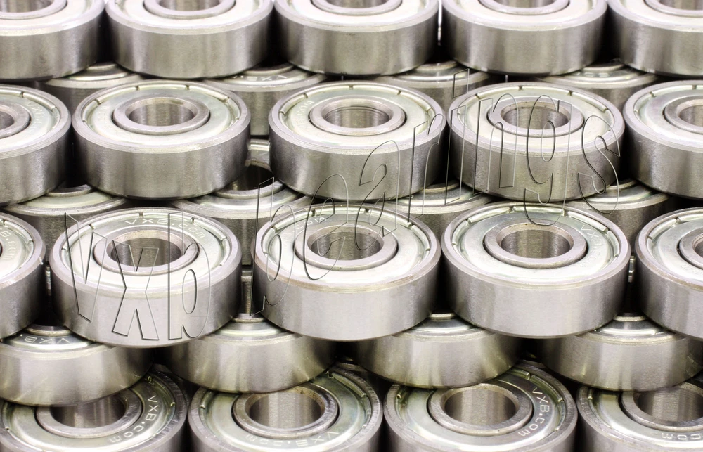 100 Skateboard/inline skate Ball Bearings Click on Picture to view Ball Bearings 608 ZZ Skateboard/in-line Bearings Dimensions: ID=8mm OD=22mm B=7mm Quantity 100 pieces Never used Never Opened 100 Ball Bearings Brand NEW You are buying a lot of 100 Skate ball bearings, item number is 608 ZZ. This is a popular size that is used for Skateboards, in-line skate, roller blade and even scooters. These 100 Bearings retails for $200, bearings can rotate up to 34,000 rpm, each bearing has 2 metal shields to protect the bearing from dust or any possible contamination, these are self lubricated bearings (bearings are already greased). Item: 608 ZZ Type: Deep groove ball bearings Closures: Metal Shielded Quantity: 100 Bearings. Bearing Size: 8mm x 22mm x 7mm Pack#868