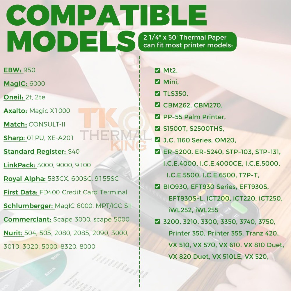 2 1/4" x 50' Thermal Cash Register Receipt Paper, 50 rolls /Case x 2 Top quality paper deliver crisp, clear images Each Paper Rolls has an end of warning signal 11/16' Inner diameter core and 48 gsm paper