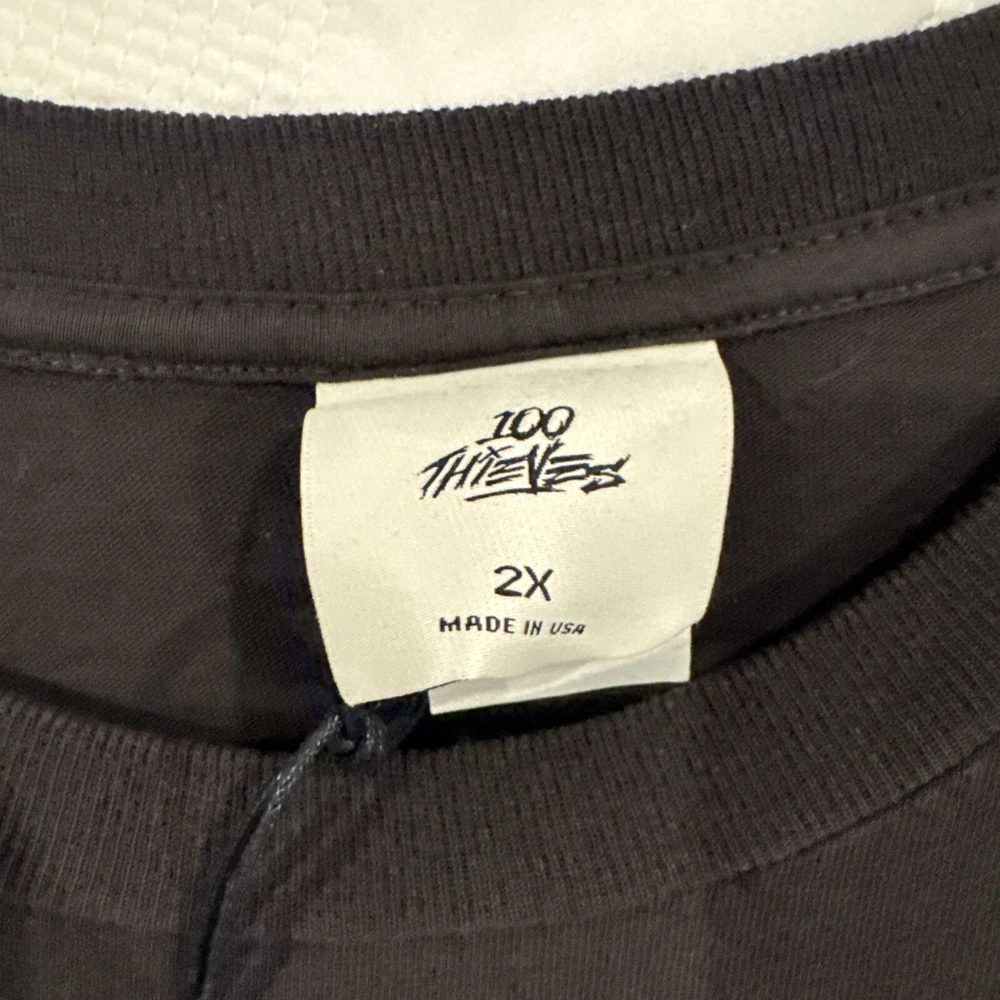 Show off your love for both 100 Thieves and Pokémon with this black Pikachu Core Tee. This size 2XL tee is perfect for any Pokémon fan looking to add a touch of style to their wardrobe. Made by 100 Thieves, this tee features their signature logo and is made with high-quality materials. Whether you're a fan of the Pokémon franchise or just looking for a stylish addition to your wardrobe, this tee is perfect for you. With its black color and regular size type, it's sure to fit comfortably and look great. Don't miss out on the chance to show off your love for both 100 Thieves and Pokémon with this must-have tee.