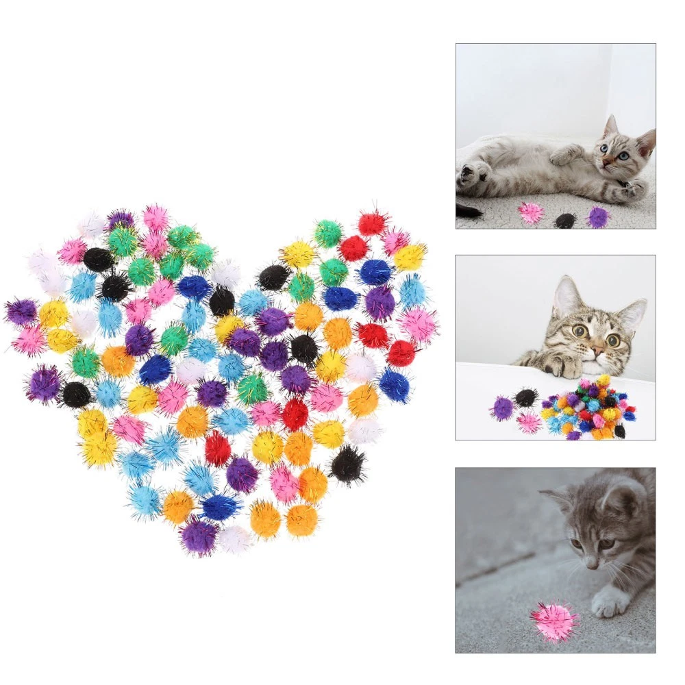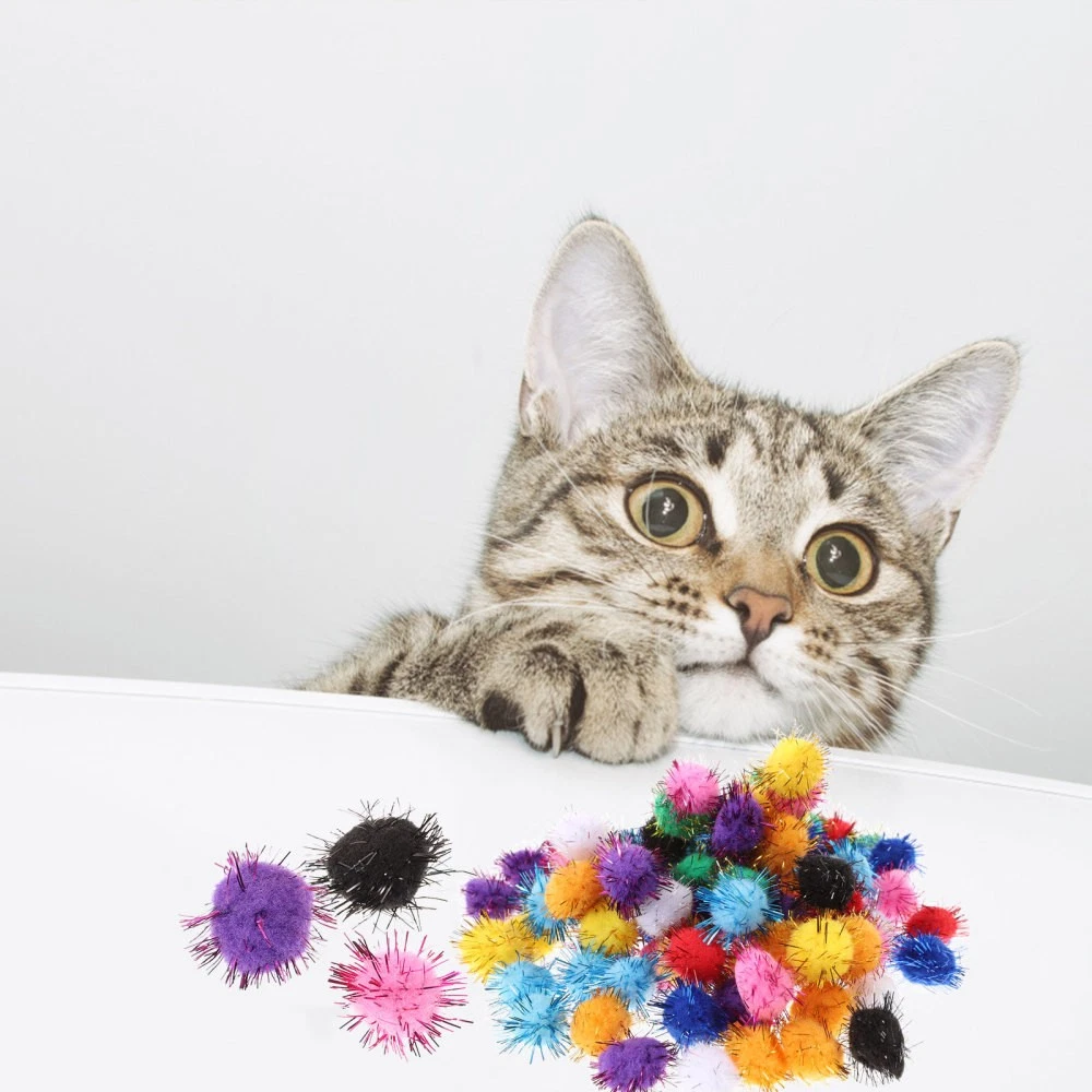 $ 4.020 Pack 2 Inches Sparkle Balls for Cats, Large Size, Glitter Pom Poms Fuzzy Ball