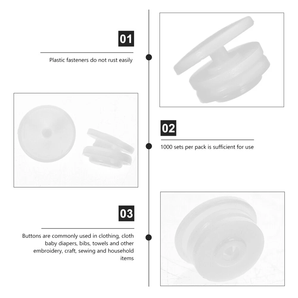 Related Hot Sale 12pcs Suction Cups Double Sided Clear Spacer Glass Table Heavy Duty Suction Cups US $9.45 4pcsnew years eve Novel New Year Glasses Happy New Year Eyewear US $11.29 Festival Banners Decor Birthday String Banner Hanging String Flags US $13.35 narrow flat pliers craft jewelry Jewelry Pliers Jewelry Jaw Plier US $10.59 1pc turtle filter Fish Separator for Aquarium Aquarium Fish Tank US $19.38 outdoor clock Silent Bathroom Wall Clock Outdoor US $11.95 | Baby | | Books & Magazines | | Business & Industrial | | Cameras & Photo | | Clothing, Shoes & Accessories | | Collectibles | | Computers/Tablets & Networking | | Crafts | | Home & Garden | | Jewelry & Watches | | Cell Phones & Accessories | | Consumer Electronics | | Sporting Goods | | Toys & Hobbies | | Video Games & Consoles | | Health & Beauty | Product Description Collecting listings has surprises Description Adopted of premium material, it is practical and for long time use. If you are looking for a professional and affordable snap fastener , then your search is over here. That ’s because our product can meet your need. Features -Color: White -Material: Plastic -Size: 1.20X1.20X0.68cm/ 0.47X0.47X0.27inch -There are holes on each button, which can be fixed stably and firmly. -Owning the and break resistance ability, very . -Use a simple lighten up your clothes, make it more fashion and different. -Practical decoration for suits, coats, T-shirts, sweaters, clothes and so on. -It’s also an excellent replacement way for the missing button. snap kit Package includes 2000 x Caps 1000 x Studs 1000 x Bases Contact US 1.If you have some inquires or problems, Please feel free to contact us. 2.We will reply your email within 1 business day (except weekend). 3.When delivery is delayed or items are damaged during delivery, please email us first before you leave feedback. Thank you. People Who Viewed This Item Also Viewed 6 Pcs Jeans Repair Button Pant Waistband Expander Nail-free Buttons US $7.54 50 Pcs Bamboo Baby 2 Hole Wood Button Buttons for Crafts Cartovot US $6.9 12 Pcs tack buttons jean jacket buttons Jean Pant Button Detachable Buttons US $8.99 20 Pairs backpack buckles webbing belt buckle Metal Side Release Buckle US $10.99 24 Pcs luggage zipper pulls Crafts Suitcase Coat Replacement Zipper US $10.79 3 Pcs Crystals Decor Rhinestone Buttons Metal with Diamonds Vintage US $6.55 1 Pair Toggle Buttons Sweater Toggles Closure Buttons US $5.58 10Pcs Fixing Outdoor Tent Fixing Hooks for Fixing Outdoor Tent Camping US $5.78 Agility Pole Football Drills Football Agility Training Equipment US $19.39 Waterproof Headlamp Camping Headlamp Headlight US $11.19 16 Pcs Bedsheet Holders Mattress Suspenders for Sheets Bed Sheet US $11.99 decorative outdoor fixture Round Patio Column Light Globe Post Lantern Round US $23.99 300 Pcs Bird Identification Rings Poultry Leg Bands Chicken Ankle Bands US $15.88 2 Pcs Lock Hardware for Furniture Cabinet Door Locker Vintage Locks US $12.28 pet dematting brush Pet Use Reusable Pet Hair Grooming Brush Non- Puppy Brush US $16.69 1Pc Japanese Style Lantern Spring Festival Hanging Lantern Izakaya Lantern US $10.72 indoor plant container Round Flower Pots Large Orchid Container Decorative US $24.75 suit coat shoulder pad adult shoulder pads Shoulder Pad for Outfits US $10.18 2 pcs light bulb base light socket extender lamp holder adapter US $11.99 3Pcs gravel for fish tank Ceramic Orbs Decorative Porcelain Balls US $19.29 Melting Furnace Mold Graphite Ingot Furnace Casting Metal Melting Tool US $12.15 2 Rolls sole patch Self Adhesive Shoe Pads Non Skid Shoe Grips US $11.88 50 Pcs Silicone Shoulder Grips Hanger Strips for Clothes Clear Grip Hanger US $14.69 10 pcs Cord Keeper leather cord organizer Cable Storage Organizer US $10.25 On Mar 7, 2025 at 14:47:54 PST, seller added the following information: