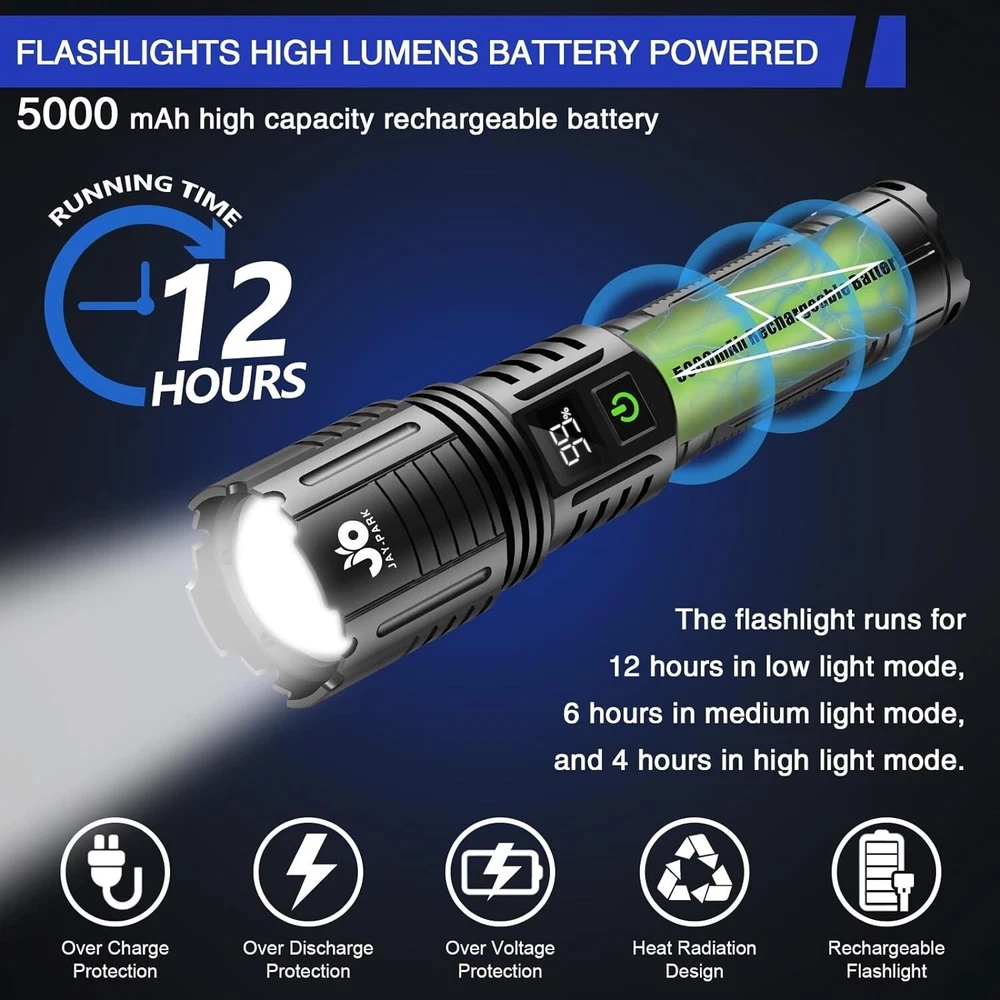 1000000 Lumen Zoomable Rechargeable Flashlight with Digital Power Display ‹ › ‹ › ‹ › ‹ › ‹ › ‹ › ‹ › ‹ › ‹ › ‹ › ‹ › 1000000 Lumen Zoomable Rechargeable Flashlight Illuminate your surroundings with unmatched brilliance and versatility. This extraordinary flashlight offers a staggering 1,000,000 lumens, providing both a penetrating spotlight that can beam over 1,800 meters on the darkest of nights, and a wide floodlight designed to effortlessly light up a campsite of up to 280 square meters. Key Features: High Brightness: Super bright LED technology for ultimate visibility. Rechargeable & Smart Display: An integrated LCD power display keeps you informed about the battery life in real time, ensuring you’re never caught off guard. Robust Waterproof Design: Engineered from thickened aviation-grade aluminum alloy with an IP67 waterproof rating, this flashlight is built to withstand drops from 10 feet and harsh weather conditions. Extended Battery Life: The upgraded high-capacity battery provides up to 4 hours of powerful illumination on high mode and all night on low mode. 5 Versatile Lighting Modes: Choose from strong, medium, low, strobe, and SOS modes to suit any situation. Quick Shut-Off Feature: Effortlessly turn off the flashlight with a single click after 10 seconds of use, skipping through modes for convenience. USB-C Charging with Power Bank Function: Charge your flashlight easily and use it as a power bank to recharge your mobile device on-the-go. Your Ideal Adventure Companion: Perfect for camping, hiking, and night-time emergencies, this flashlight is both an indispensable tool and a reliable companion for all your outdoor adventures. Customer Assurance: With every purchase, enjoy a 24-month warranty that guarantees quality and satisfaction. Should any questions arise, our dedicated support team is always at your service. Choose the ultimate power and versatility with the 1000000 Lumen Zoomable Rechargeable Flashlight. Illuminate your path, enhance your outdoor experience, and embrace the dark with confidence. Shipping Free & Fast Shipping - We offer free shipping to most of the USA with a normal delivery time of 3-7 days. However, due to the current situation, additional delivery time (up to 3 weeks) may be required for some items. Alternative Carriers - We may use alternative carriers (e.g. USPS, FedEx, UPS, etc.) to ensure your package arrives safely and on time. Due to the use of multiple carriers, we are unable to provide a tracking number automatically. Handling Time - Orders are processed and shipped within 1-2 business days of receiving cleared payment. Shipping Restrictions - Shipping to Alaska, Hawaii, Puerto Rico, Guam, and other US territories may incur shipping charges or delivery restrictions. Please contact us before ordering, or your order can be refunded/cancelled. State Restrictions - There may be restrictions based on your state of purchase. For example, certain items may not be shipped to California due to state regulations. Contact for Tracking Updates - If you require tracking updates or have any concerns about the delivery of your order, please feel free to contact us, and we will be happy to assist you. Return 30-Day Hassle-Free Returns - We want you to be completely satisfied with your purchase. If you are not, you can return the item within 30 days of receiving it for a full refund or exchange. Easy Return Process - To start a return, simply contact us and we will provide you with a prepaid return shipping label and detailed instructions. Restocking Fee - There are no restocking fees for returns. However, the buyer is responsible for return shipping costs if the return is not due to a seller's error. Refund Processing Time - Refunds will be processed within 5 business days of receiving the returned item in its original condition. Payment We accept all major credit cards, PayPal, and Apple Pay for your convenience. Your payment information is secure and encrypted to ensure a safe and seamless transaction. Please complete your payment within 3 days of purchase to avoid any delays in shipping. Feedback Your feedback is extremely important to us. We strive to provide the best products and customer service possible. If you are satisfied with your purchase, please take a moment to leave us a positive review. If you have any concerns or issues with your order, please contact us before leaving negative feedback. We are committed to resolving any problems and ensuring your satisfaction. Contact Us If you have any questions or concerns, please feel free to reach out to our customer support team. You can contact us through the eBay messaging system. We are available Monday to Friday, 9:00 am to 5:00 pm EST, and we will do our best to respond to your inquiry within 24 hours. Thank you for supporting our small family business! UPC: Not Set Voltage: 4.2 volts Item Height: Rechargeable LED Flashlights Item Length: Rechargeable LED Flashlights Item Weight: 0.9 pounds Item Width: Not Set Model: Not Set Lumens: 1000000 lumen Number of LEDs: Not Set Unit Quantity: 1 Features: Rechargeable,Waterproof,Digital Power Display,Zoomable,Multiple Lighting Modes,High Lumen Output Material: Aluminum Brand: Unbranded Type: Flashlight Lighting Technology: LED Power Source: Battery Operating Range: 1800 m MPN: Not Set Battery Technology: Lithium-Ion Number of Batteries: 1 Color: Black Country/Region of Manufacture: Not Set IP Rating: IP67 Operating Time: 4 Hours Number of Lights: 1 Unit Type: lb Personalize: Not Set