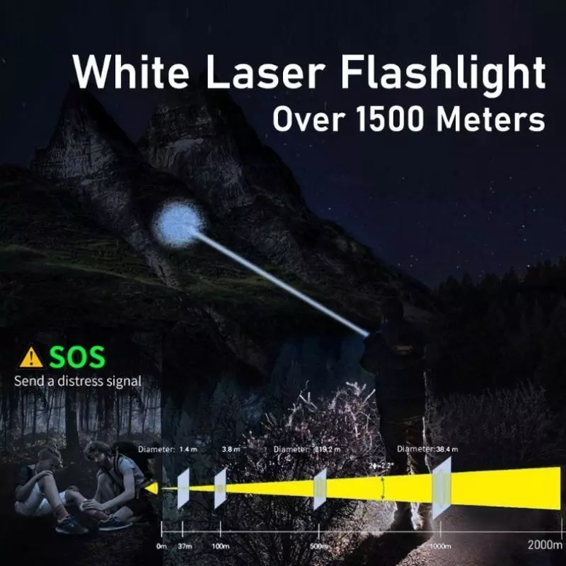 Product Parameters: Lamp bead model: 30W white laser Lens material: optical convex lens Working gear: Five gears (strong, medium, weak, burst, SOS), long press to shut down Using batteries: 26650/18650 * 1 (the product is equipped with 26650 batteries) Waterproof grade: IPX6 (domestic waterproof, rainwater proof) Lumen: 2000LM Product power: 30W Product material: aluminum alloy Charging method: USB direct charging Zoom: Telescopic zoom Battery display: Green indicates sufficient battery, while red indicates the need for charging Features: HIGH BRIGHTNESS, LONG DISTANCE LIGHTING: This white LED spotlight for long distance lighting is very different from a regular flashlight because it's brighter than a regular flashlight, with up to 2000 lumens of light! REECHARGEABLE BATTERY: Provides up to 12 hours of medium brightness. Beam distance up to 2500 feet. 5 modes flashlight: 5 working modes for you to switch freely, to meet your different requirements for lighting. IPX6 WATERPROOF: Waterproof rating up to IPX6, the flashlight body is made of high quality splash-proof aluminum alloy, which ensures that it can be used even in rainy days, suitable for outdoor use. APPLICATIONS: one-handed operation, portable, suitable for dog walking, hunting, boating, power outage, patrolling, camping, hiking, emergencies and other occasions. Packaging includes: A set Flashlight
