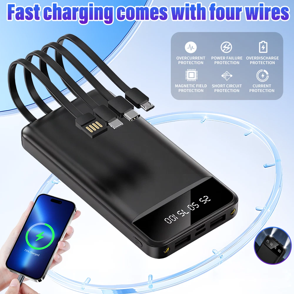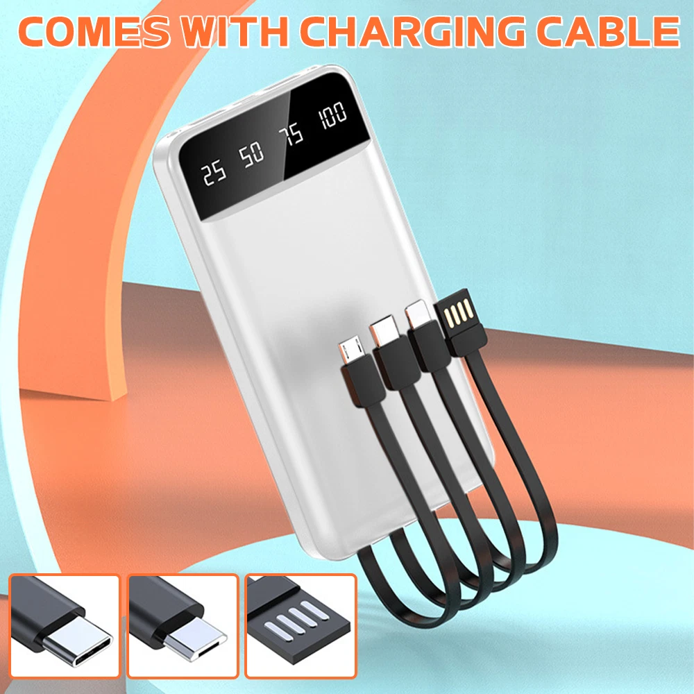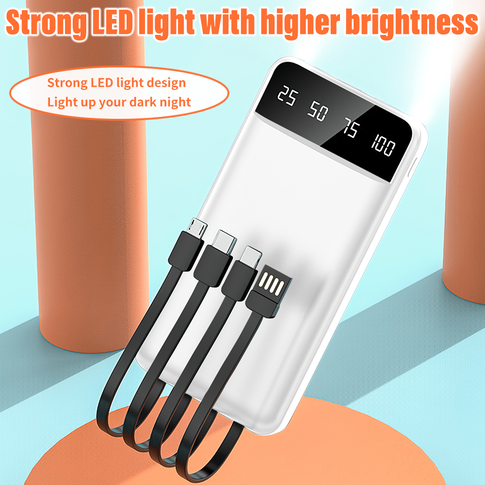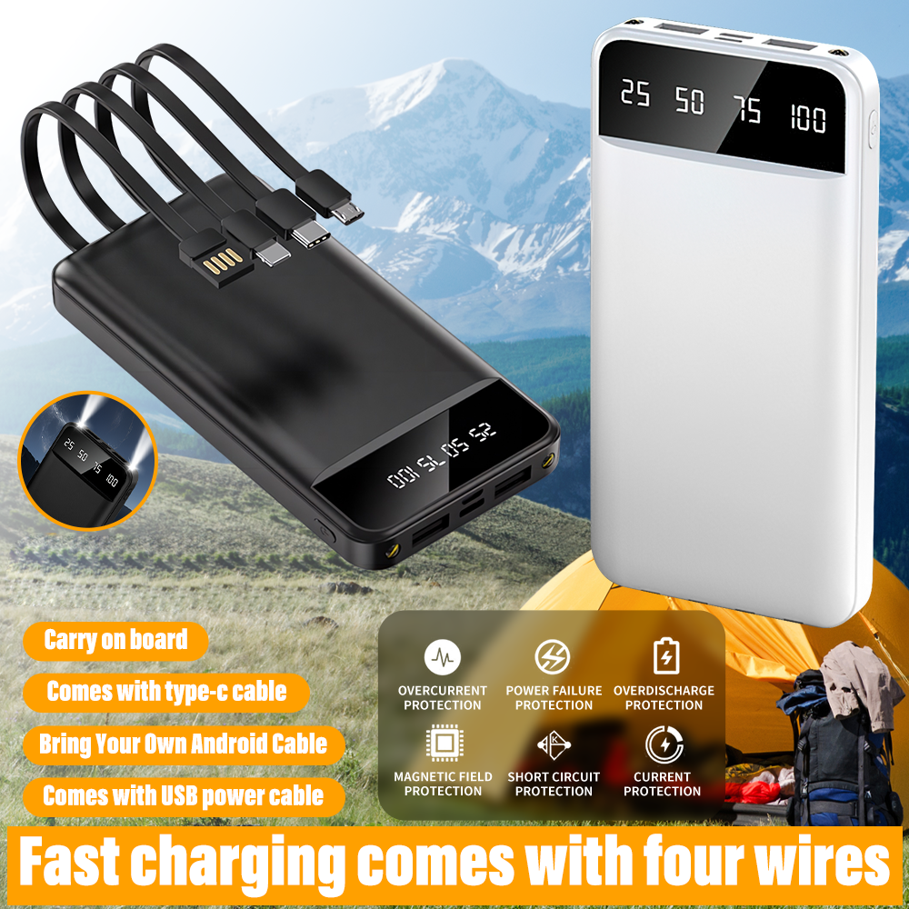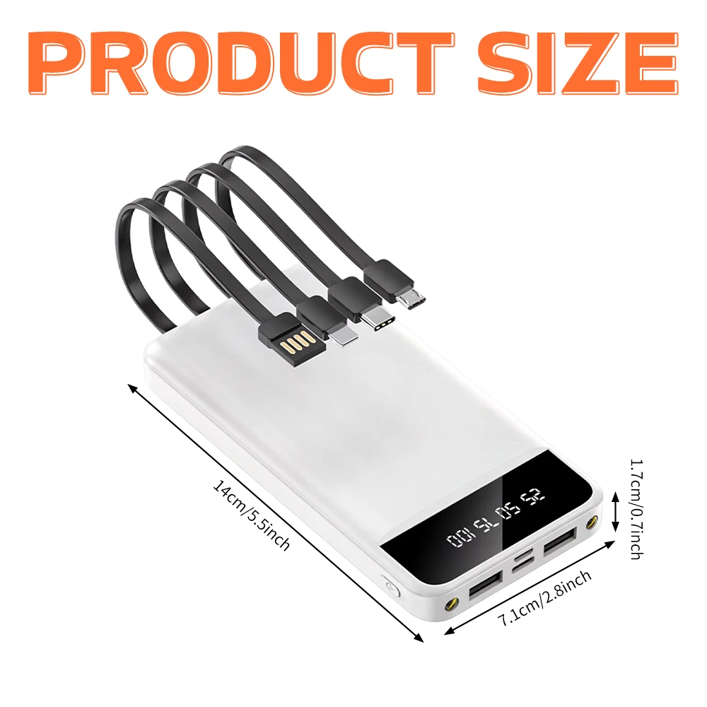 Feature : Wide Compatibility Mobile Power with Built-in Cables: N6 USB C Portable Charger has 4 built-in cables (iOS, Type C, USB A, Micro) and 3 charging ports (USB A 1/2, Type C), which are compatible with almost all types of smart devices on the market, such as iPhone 16 15 14 13 12 11 series, XR, XS Max, Samsung S22, S21, S20, A52, A32, Z fold series, Z flip series and Google Pixel series as well as other Android phones, iPads, tablets and more... All-in-One Portable Charger: Portable mobile power with 6 outputs and 2 inputs, you can charge up to 6 devices at the same time and easily charge battery packs with 2 options (USB A cable, USB C port), perfect for multi-electronic device users. Upgrade the USB C port to use as input and output, perfect for your new iPhone, iPad and all upcoming USB C devices. No more carrying cables on the road, and say goodbye to the hassle of messy charging cables! 10000mAh capacity and ultra-compact design: Does a high-capacity charger have to be big and heavy? No, the N6 is a big deal! With the new high-density polymer battery, you get more capacity in the same size. Our 10000mAh portable battery measures 151*73*20mm (5.95*2.87*0.79 inches) and weighs 335g (11.8 ounces), which is close to the size of an iPhone 15. The ultra-compact and portable design allows you to easily slip it into a backpack, handbag or pocket. Perfect for those who need a fast, reliable charge on the go. 3X FASTER 22.5W PD QUICK CHARGE OUTPUT: The N6 Portable Battery supports 22.5W PD Quick Charge, whic h allows your iPhone 15 to be fully charged to 50% in 30 minutes, which is nearly 3X faster than other traditional chargers, dramatically reducing your charging time. The simple and elegant LED digital screen displays the battery level even down to 1%. Provide you with stable and reliable charging service anytime, anywhere, never worry about your phone running out of power again! SAFE AND RELIABLE BATTERY PACK: portable battery has 10 layers of multi-system protection, built-in low-temperature IC ice core, intelligently monitors the voltage and current, and actively avoids a series of potential dangers such as overcharging, over-discharging, short-circuiting, high temperature and other potential dangers, creating a safe charging environment for you. Speci fication : Cell Type:Polymer Li-ion cell Material:Plastic Color: white, black Capacity:10000 mAh Size:140*71*17mm Charging power:10W Product Type:Self-wired Function:Support fast charging Conversion rate:75% Pack age list: 1 x Power Bank 1 x User Manual
