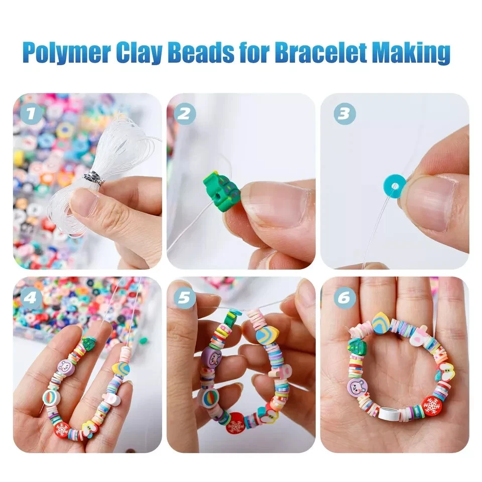 Diverse Bracelet Beads Kit Assortment:approximate 1000 pcs beads,Includes 10mm clay beads,hole is 2mm, 6mm flat clay beads,hole is 2mm,4x7mm letter beads, hole is 1mm,with 1pcs 0.8mm bracelet string catering to various DIY jewelry making needs. High-Quality Craftsmanship:Each bead is carefully crafted with precision, ensuring a consistent and high-quality product that meets the standards of discerning crafters. Vibrant Colors, Fade-Resistant:The clay beads kit feature bright and vibrant colors that are specially treated to resist fading over time, maintaining the aesthetic appeal and longevity of your creations. Versatile Applications:Ideal for creating a variety of fashion accessories such as bracelets, necklaces, earrings, and pendants,It also makes a perfect gift, especially for young girls. Unleash Creativity and Enjoy Crafting:These clay beads kit are designed to inspire creativity and provide a fun and engaging crafting experience, allowing you to create unique and personalized jewelry pieces.