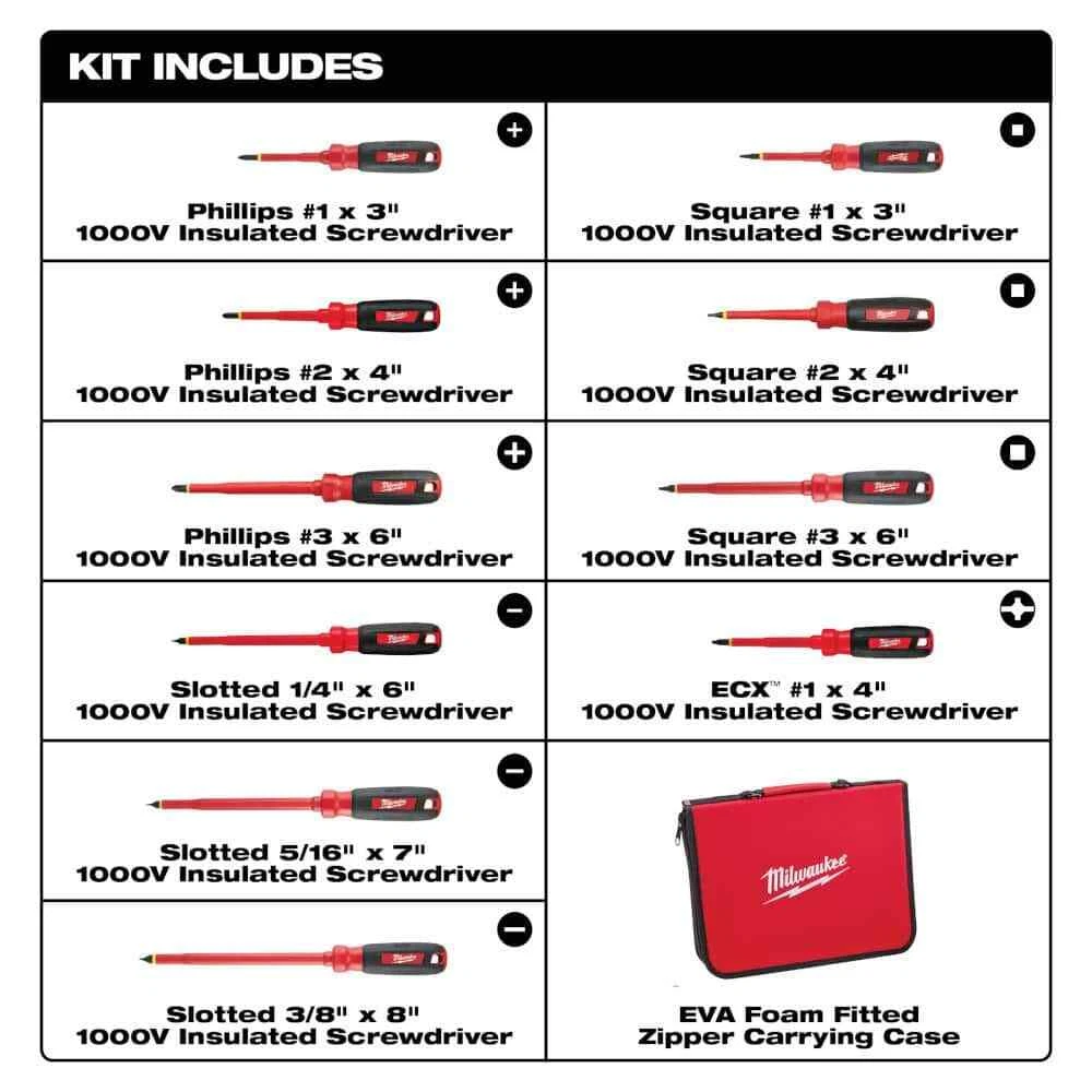 10-PC insulated screwdriver set Dual-layer insulation UL tested to 1000V Get the job done with these Milwaukee 10-piece 1000V insulated screwdrivers. Dual layer insulation allows visual wear indication for tool replacement. It comes with an EVA foam-fitted zipper carrying case and lanyard holes to stop tool drops. For lasting use, this set is flame retardant and impact resistant. UL classified - tested and certified to insulated tool standards: IEC 60900:2012, ASTM F1505-10, NFPA 70E Meets OSHA insulated tool standard and is VDE and GS certified 1000V insulated protection Dual-layer insulation for visual wear indication Flame retardant and impact-resistant handle and shank Visible ID markings for quick tool identification Lanyard holes prevent tool drops... 1000V Insulated Screwdriver Set with Case (10-Piece) 10-PC insulated screwdriver set Dual-layer insulation UL tested to 1000V Get the job done with these Milwaukee 10-piece 1000V insulated screwdrivers. Dual layer insulation allows visual wear indication for tool replacement. It comes with an EVA foam-fitted zipper carrying case and lanyard holes to stop tool drops. For lasting use, this set is flame retardant and impact resistant. UL classified - tested and certified to insulated tool standards: IEC 60900:2012, ASTM F1505-10, NFPA 70E Meets OSHA insulated tool standard and is VDE and GS certified 1000V insulated protection Dual-layer insulation for visual wear indication Flame retardant and impact-resistant handle and shank Visible ID markings for quick tool identification Lanyard holes prevent tool drops and protect insulation Includes EVA foam-fitted zipper carrying case Shop All Milwaukee Tools Color Family:Red|Color Family:Red|Drive Style:Combination|Drive Style:Combination|Electrical Tools Features:Insulated,Magnetic Tip|Electrical Tools Features:Insulated,Magnetic Tip|Hand Tool Type:Screwdriver Set|Hand Tool Type:Screwdriver Set|Individual/Set:Set|Individual/Set:Set|Number of Pieces:10|Number of Pieces:10|Returnable:90-Day|Returnable:90-Day|Tool Set Type:Screwdriver Sets|Tool Set Type:Screwdriver Sets|Tools Product Type:Hand Tool|Tools Product Type:Hand Tool|Manufacturer Warranty:Limited Lifetime Warranty|Manufacturer Warranty:Limited Lifetime Warranty Item Specifics Brand Milwaukee UPC 045242293742 MPN 48-22-2210 Type Screwdriver Sets About us Dear buyer, Thank you for visiting my store! Our warehouses are located in many regions around the United States. According to the customer's delivery address. Use USPS/UPS/DHL logistics transportation service. Prioritize the best quality logistics solutions to transport packages. Ensure package delivery time, At the same time. Have any after-sales problems, Feel free to contact us. At your service Payment PayPal is our preferred method of payments it's the quickest, easiest and most secure way to pay for your goods or services online. PayPal offers buyer and seller protection should there be a problem. If you do not have a PayPal account, to get started and buy your first item with us is very easy. Simply click on the 'Buy It Now' button and follow the eBay checkout steps. Select PayPal as the payment method you then will be given the chance to enter your card details in to PayPal's secure checkout in order to pay for your order. Shipping 1. Your purchase is shipped directly to you as soon as we have received your cleared payment. 2. Normally all of parcels would be shipped within 3days(From Monday to Saturday). 3. We will send information on eBay or email if the parcel was delayed due to our holiday. 4. We provide three kinds of shipping for choice. Shipping way depend on delivery address. Returns If an unit is received defective, of course we take it back or replace it. If the unit is received as expected, we must charge for our expenses if you want to send it back. We have to charge for the work of handling, retesting and restocking. DESCRIPTION PAYMENT SHIPPING RETURN POLICY CONTACT US Shop Category Store Home Other Hot Item US 59.05"Modern Sintered stone dining table 31.5" round turntable 6pcs Chairs. USD 2187.83 US Grease Gun Grease Gun Battery Powered 40” Long Hose 12 000 PSI Cordless Greas USD 137.70 B-WD-AP431-3 Under sink Water Filter Replacement Aqua-Pure AP431 Hot Water Scale USD 70.31 US Kobalt 24-Volt Max-Volt 3/8-in Drive Cordless Impact Wrench (Model #672828) USD 113.88 SoundGuards Over Ear Jobsite Hearing Protection Headphones USD 64.70 Delivery New List Item Shower Head Water Filtration System 5-Settings Handheld Shower Filter in Chrome USD 129.88 4/5 in. x 23.6 in. x 23.6 in. 3-Dimensional Acoustic MDF Decorative Wall (4-Piec USD 92.99 HydroPerfection Filter Change Set USD 151.86 APEC RO Replacement Filters Complete Set ROTL-600-PH Tankless RO System USD 182.09 SGF-CS11S Compatible Commercial Water Filter 55895-01, BGC-2200S, CELF-1M-P, (2 USD 95.80 Help & Info Payment Policy Shipping Policy Return Policy FAQ About Us 1000V Insulated Screwdriver Set with Case (10-Piece) 10-PC insulated screwdriver set Dual-layer insulation UL tested to 1000V Get the job done with these Milwaukee 10-piece 1000V insulated screwdrivers. Dual layer insulation allows visual wear indication for tool replacement. It comes with an EVA foam-fitted zipper carrying case and lanyard holes to stop tool drops. For lasting use, this set is flame retardant and impact resistant. UL classified - tested and certified to insulated tool standards: IEC 60900:2012, ASTM F1505-10, NFPA 70E Meets OSHA insulated tool standard and is VDE and GS certified 1000V insulated protection Dual-layer insulation for visual wear indication Flame retardant and impact-resistant handle and shank Visible ID markings for quick tool identification Lanyard holes prevent tool drops and protect insulation Includes EVA foam-fitted zipper carrying case Shop All Milwaukee Tools Color Family:Red|Color Family:Red|Drive Style:Combination|Drive Style:Combination|Electrical Tools Features:Insulated,Magnetic Tip|Electrical Tools Features