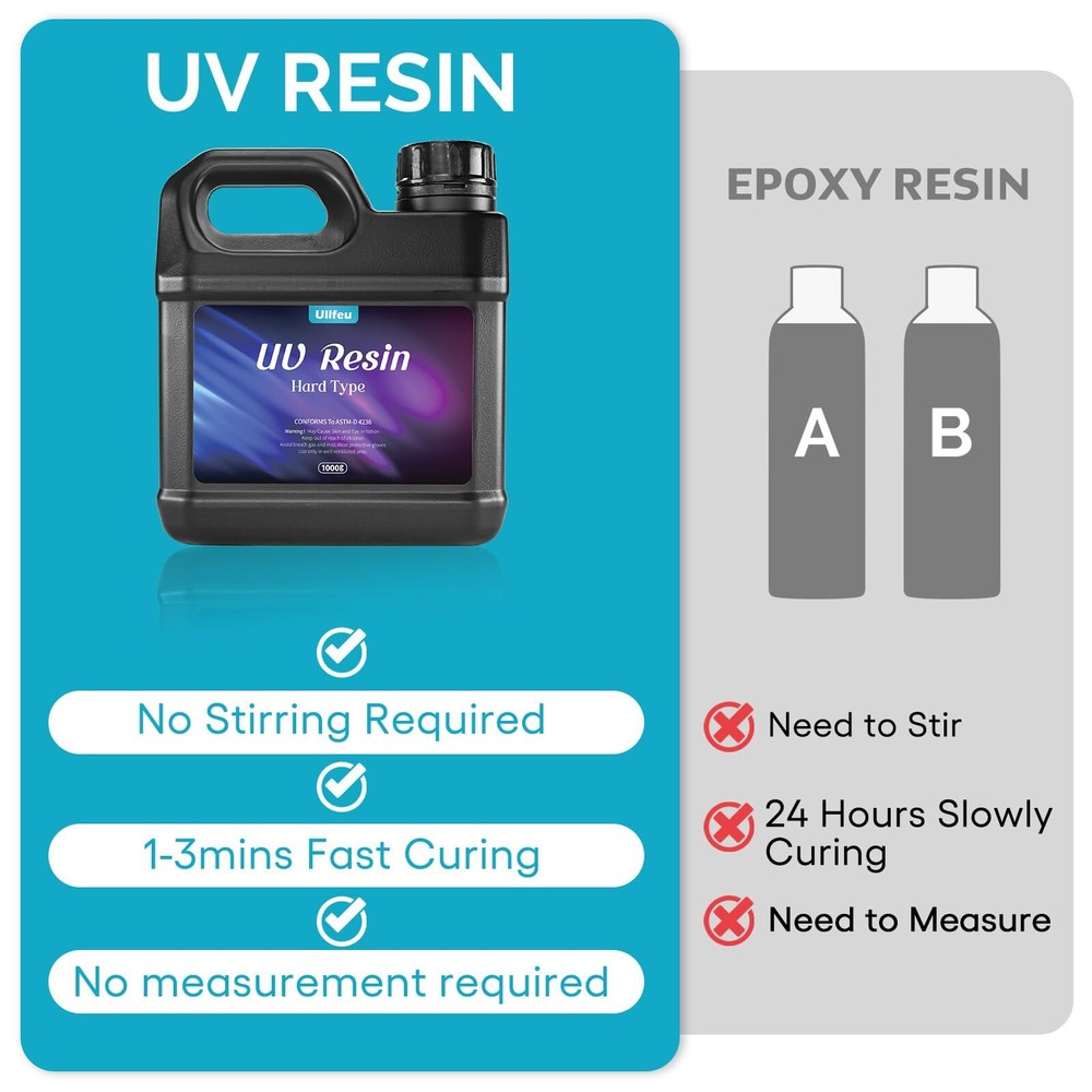 UV Resin 1000g Bulk No Odor Upgrade Clear UV Epoxy Resin Hard Fast Cure Resin Kit Jewelry Making Handmade DIY Craft Decoration Coating High Gloss and Yellowing Resistance: The UV clear resin uses advanced materials and added antioxidants, that refractive index is more than 1.5 times higher than the material, making the finished product more clear, harder, and more yellowing resistant than other UV epoxy resins No Odor and Safe: The UV resin clear has added active diluents to reduce VOC volatile and minimize odor.This makes your use process more safe and enjoyable Fast Cured and Easy to Use: UV cure resin that both beginners and professionals can quickly get started with is not as complicated as A B epoxy resin. Our clear UV resin only needs to use a UV lamp to be irradiated on the front and back of the mold for 1-3 mins each(recommended to use a UV lamp above 36w). Note: Before use, please make sure your model is clean and free of oil and other foreign matter, and use a clear resin mold Widey Used: 1000 g bulk UV resin satisfies all your creations.UV jewelry resin be used for DIY jewelry production, such as earrings, bracelets, rings, pins, magnets, keychains, pendants, repair, decorations, etc. It can also be mixed with mica powder, resin ink, or other decorations to produce colorful finishes. 1. The darker the color you add, the longer the UV light cure time will be. 2. Don't add too much color that no cure Great Choice: If you don’t know what to give during the holidays, you might as well use UV resin to make meaningful artwork for others, or enjoy this DIY time with each other to bring people closer FAST CURING & NO TACKY- hard type uv resin can be fast cured with UV lamp in few mins to become hard and not tacky! No more waiting hours or days to get your creative project! Curing time is influenced by the size of the jewelry . The darker the color of the product, the longer the irradiation time required Shipping We offer FREE shipping on all orders! We ship within Three business days of payment, usually sooner. We use a selection of shipping services such as UPS, FedEx, USPS etc. We only ship to the lower 48 states, no APO/FPO addresses or PO Boxes allowed. Local pickups and combined shipping options are not provided at this time. Return You can return a product for up to 30 days from the date you purchased it. Any product you return must be in the same condition you received it and in the original packaging. Please keep the receipt. Payment We accept payment by any of the following methods: PayPal Please pay as soon as possible after winning an auction, as that will allow us to post your item to you sooner! Feedback Customer satisfaction is very important to us. If you have any problem with your order, please contact us and we will do our best to make you satisfied. Contact Us If you have any queries, please contact us via ebay. We usually respond within 24 hours on weekdays. Please visit our eBay store to check out other items for sale! Thank you for shopping at our store.