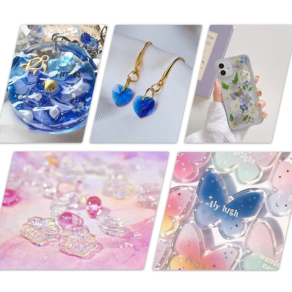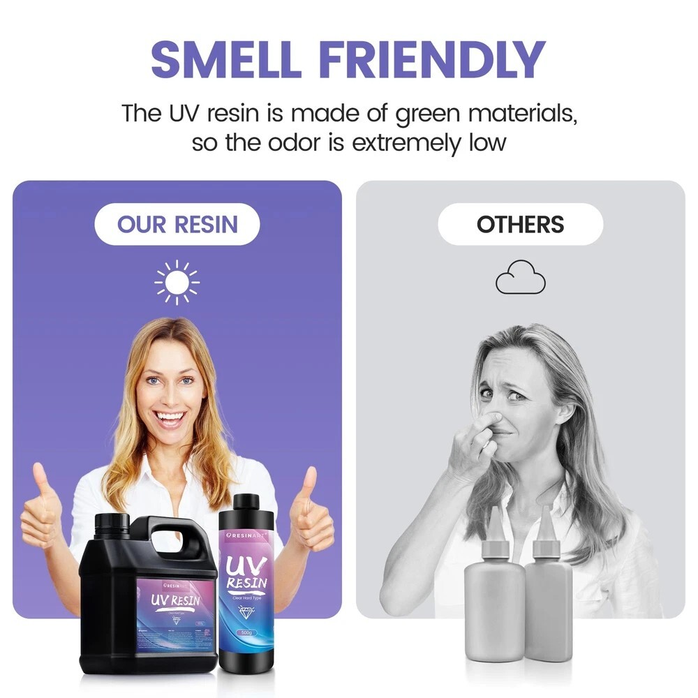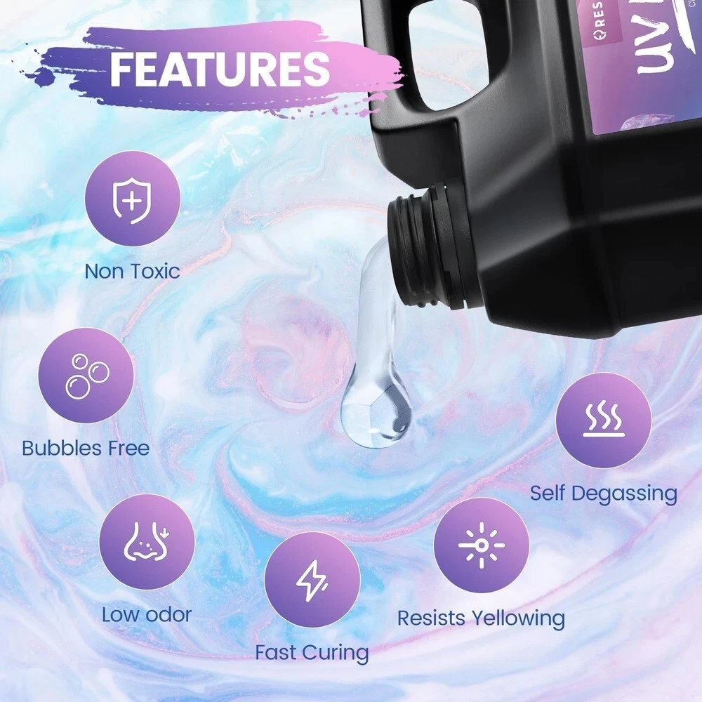 UV Resin 1000g, Upgrade Crystal Clear Hard Ultraviolet Epoxy Resin Glue, Low Odor Transparent Solar Cure Sunlight Activated Resin for Jewelry Making, DIY Craft Decoration, Mold, Casting and Coating Description Features: Superior QualityClear UV resin is self-leveling and self-degassing, resulting in a crystal clear, smooth, glass-like surface after curing. Scratch, stain and yellowing resistant properties protect your artwork and DIY projects for longer. This UV resin is ideal for a variety of creative and decorative projects. Efficient & ConvenientTransparent UV epoxy resin is easy to handle, no measuring required, just turn it on and use it. Short curing time, curing in 1-3 minutes under 36W UV lamp. Let you enjoy the results of your work in the shortest possible time. The matching nozzle can well help to squeeze and inject the resin. Safe & Non-ToxicWe are a professional resin manufacturer and the UV resin are all made from safe and non-toxic quality materials. It contains no harsh chemicals and is completely odorless after curing. Make your creative process a pleasure. Wide ApplicationClear UV glue is not only suitable for making jewelry, but can also be used for craft decorations, castings, coatings, sculptures and more. It can also be mixed with mica powder, colorants, glitter, sequins, etc. to create a more colorful surface for your crafts. Product Details: Brand: EPRESINART Material: Resin Compatible Material: Glass Item Form: Liquid Color: crystal clear Product Dimensions : 6.4 x 2.9 x 5.6 inches; 2.54 Pounds Item model number : UV Resin-3 Date First Available : July 20, 2023 Manufacturer : SHENZHEN JINHUA ELECTRONIC MATERIALS CO.,LTD. Country of Origin : China Best Sellers Rank: #5,285 in Arts, Crafts & Sewing (See Top 100 in Arts, Crafts & Sewing) #55 in Sculpture Molding & Casting Products #55 in Sculpture Molding & Casting Products Customer Reviews: 4.4 4.4 out of 5 stars 160 ratings Handling We will ship all orders within 1 business days of payment. Delivery We do not ship outside of the Continental US. Feedback We take our reputation seriously, we buy and sell online, so we understand the value of trust. If you are unsatisfied with your order, please contact us and we will work with you to resolve it to your satisfaction.